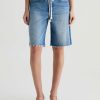 The Halle Short hints at a vintage nautical influence in comfort-stretch denim with an indigo yarn-dye stripe pattern. These high-rise cutoffs are cut for a relaxed silhouette with ease through the hips and raw, cut hems.