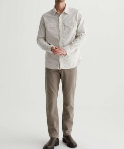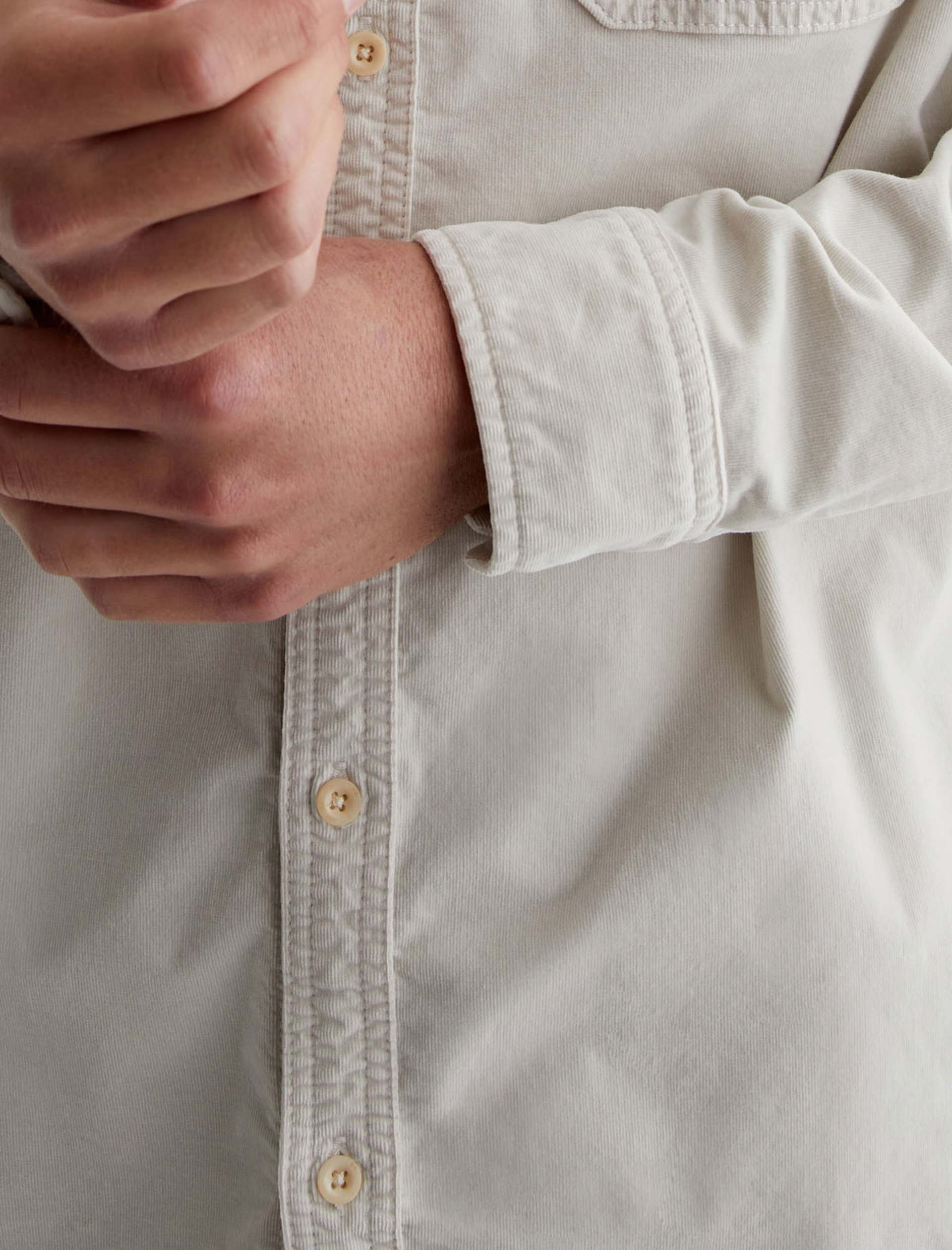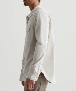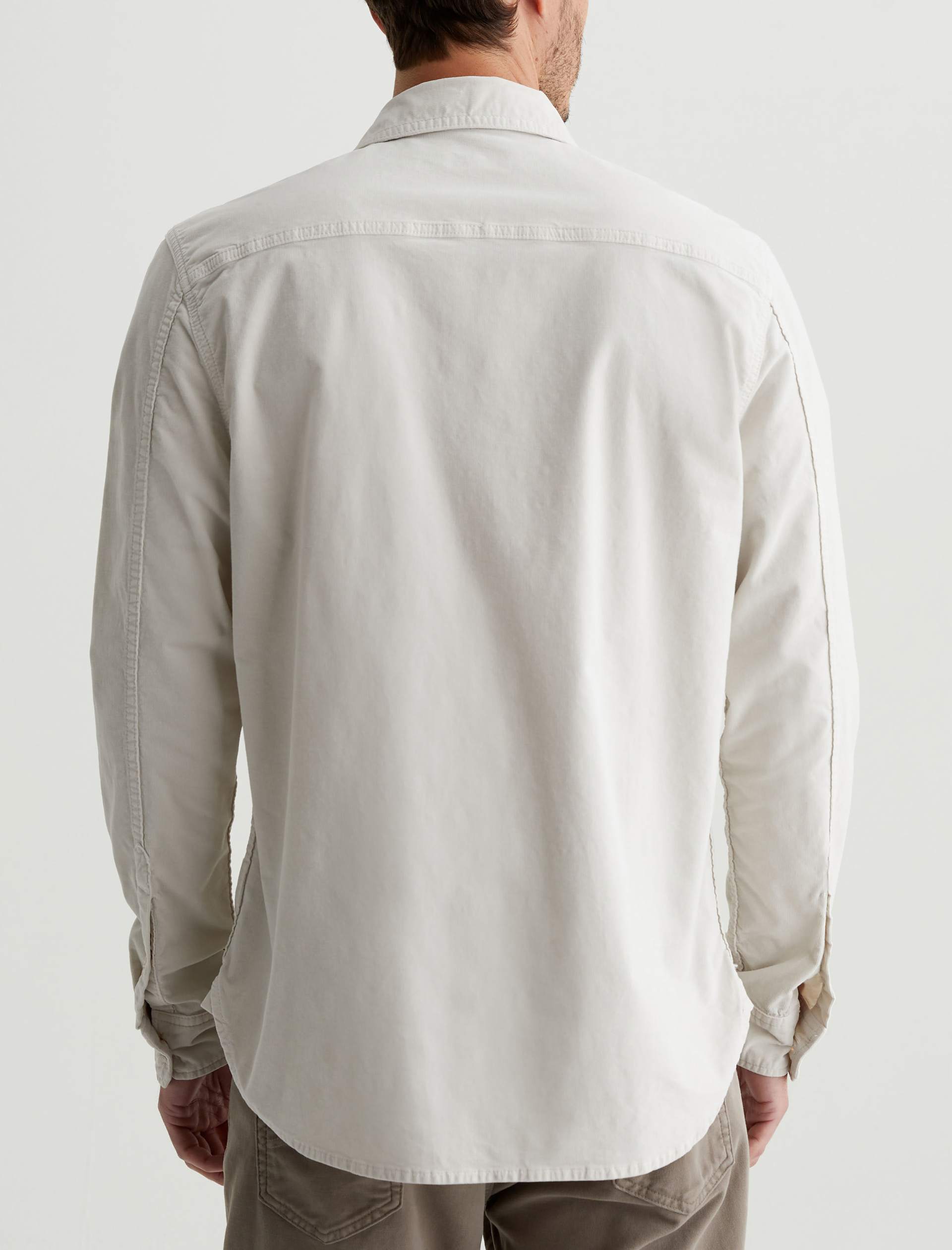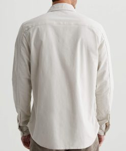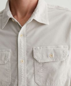 The Aiden Utility Shirt brings a workwear-inspired update to a timeless button-up style. Featuring flap pockets at the front, the long-sleeve style is for a classic fit in 6.4 oz. Velvet Corduroy from Italy. Done here in a pale grey shade, this men’s corduroy shirt has a pointed collar, button closures throughout, and