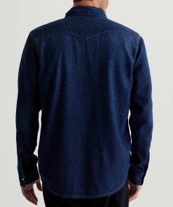 The Aiden Western Shirt for men features a clean, bright medium indigo wash in a timeless long-sleeve silhouette. True to its name, this classic denim shirt has vintage western-style details—angled shoulder panels, flap pockets at the front, and snap buttons throughout. It’s crafted from lightweight Heritage 2×1 Denim