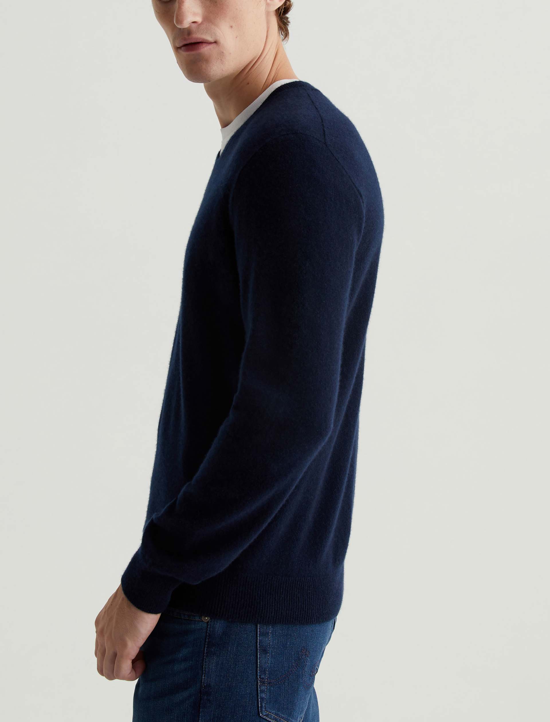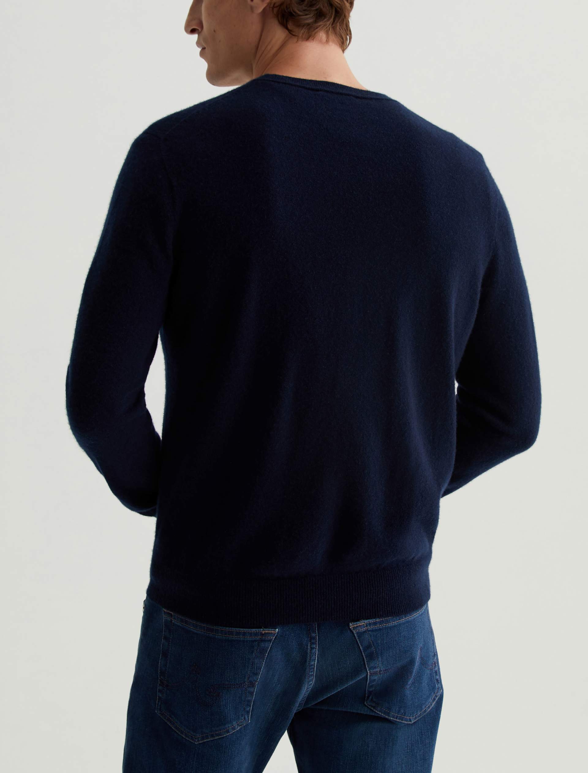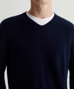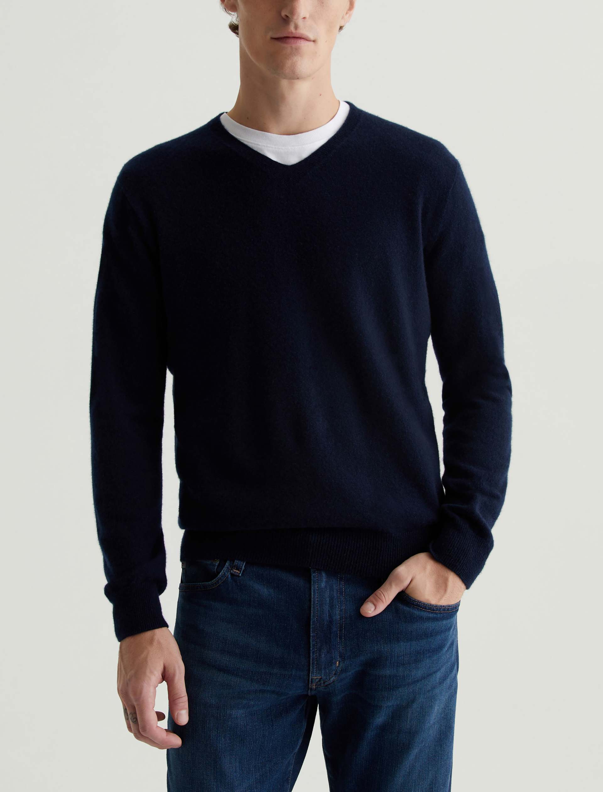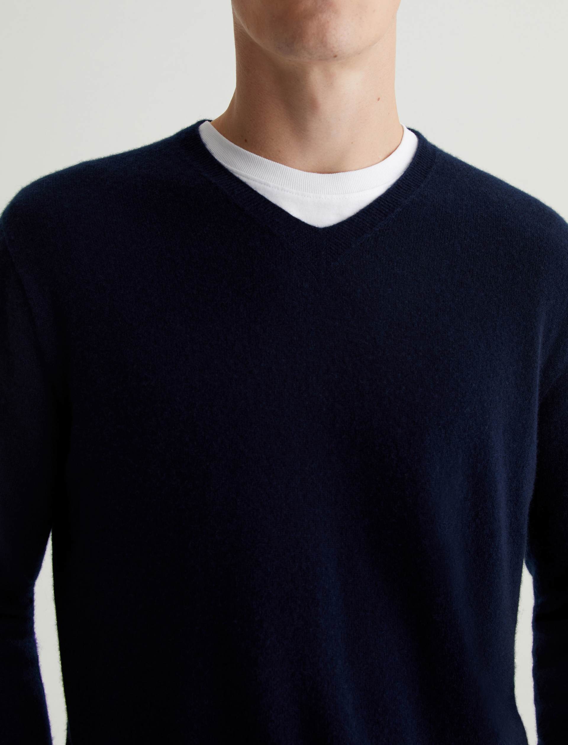 An elevated essential, the Beck Vee is a classic-fit V-neck sweater with long sleeves, ribbed detailing, and a timeless navy shade. It’s knitted from soft cashmere for a luxurious feel and lightweight warmth that’s easy to layer.