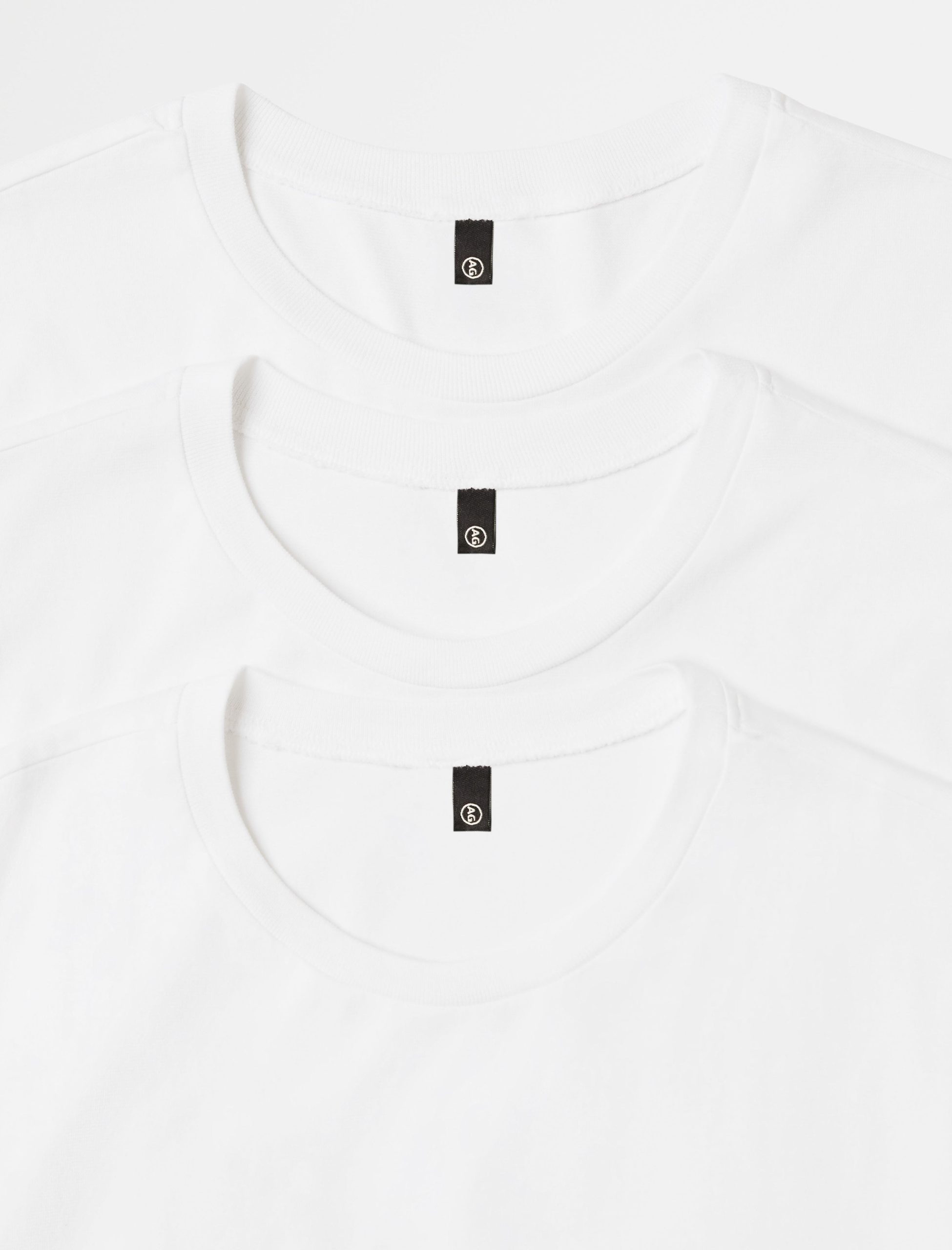 The Bryce Crew in white is a classic fit crewneck, short sleeve tee in a 3 pack. The tee offers a 1X1 baby rib at the neck to create a great crew shape and serves as the perfect base when layering all year long. Our Jersey Knit offers a luxurious comfort that is unrivaled—knitted with both S-twist and Z-twist yarn to s