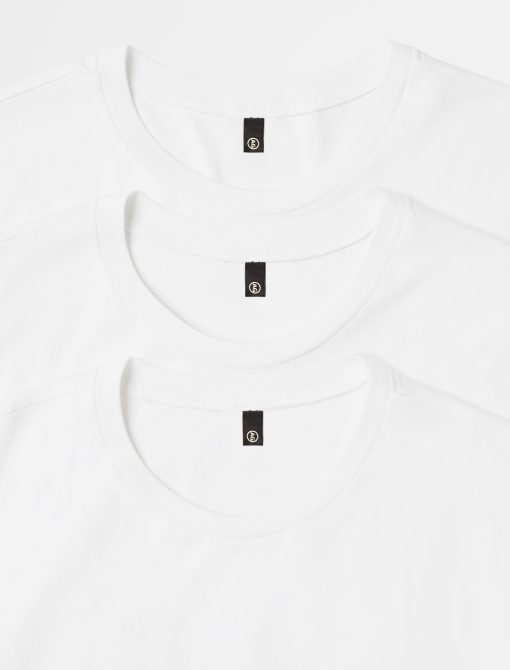 The Bryce Crew in white is a classic fit crewneck, short sleeve tee in a 3 pack. The tee offers a 1X1 baby rib at the neck to create a great crew shape and serves as the perfect base when layering all year long. Our Jersey Knit offers a luxurious comfort that is unrivaled—knitted with both S-twist and Z-twist yarn to s
