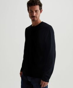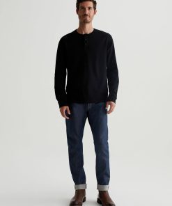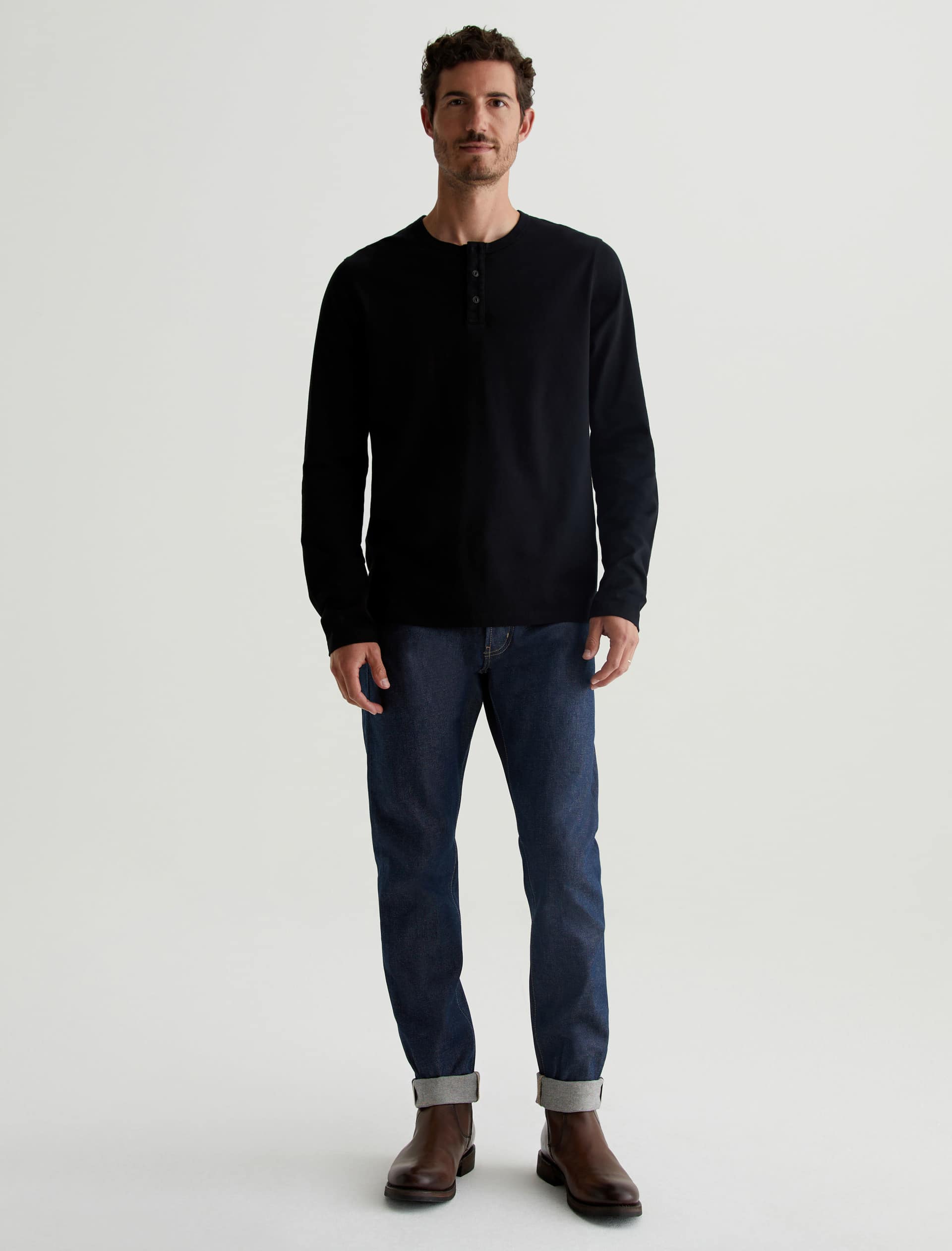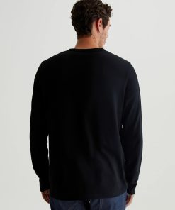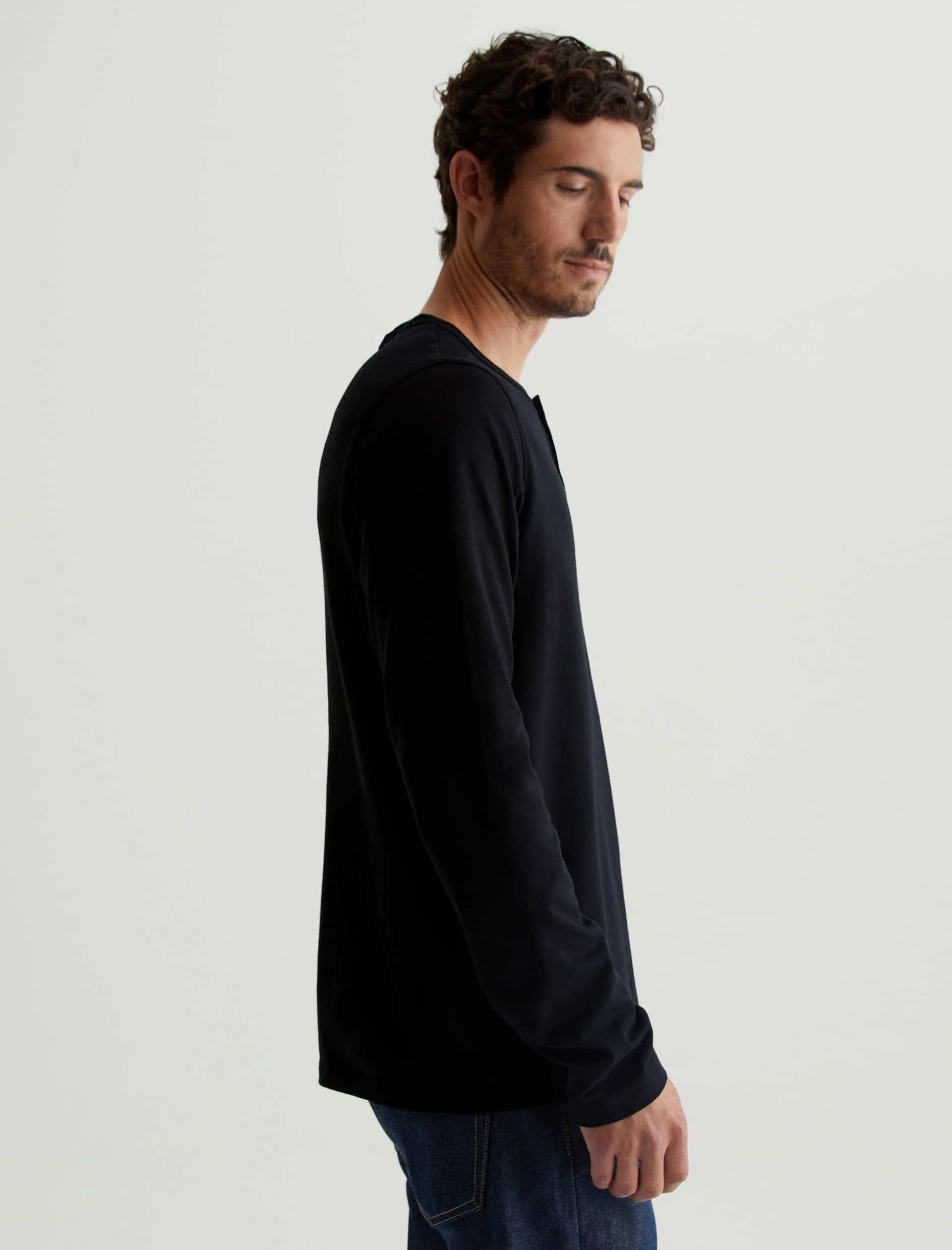 The Bryce Long Sleeve Henley in black is a classic silhouette for us, featuring a signature crew neckline with a self-placket featuring 3 buttons for versatile styling. Our Jersey Knit offers a luxurious comfort that is unrivaled—knitted with both S-twist and Z-twist yarn to sustain longevity and stability, preventing