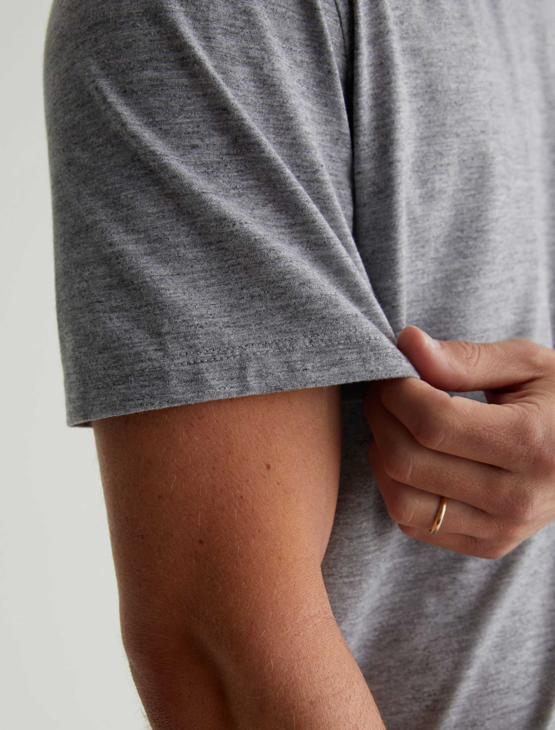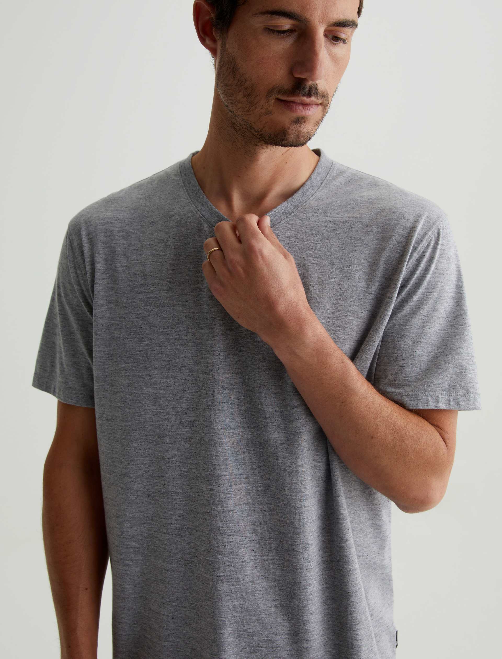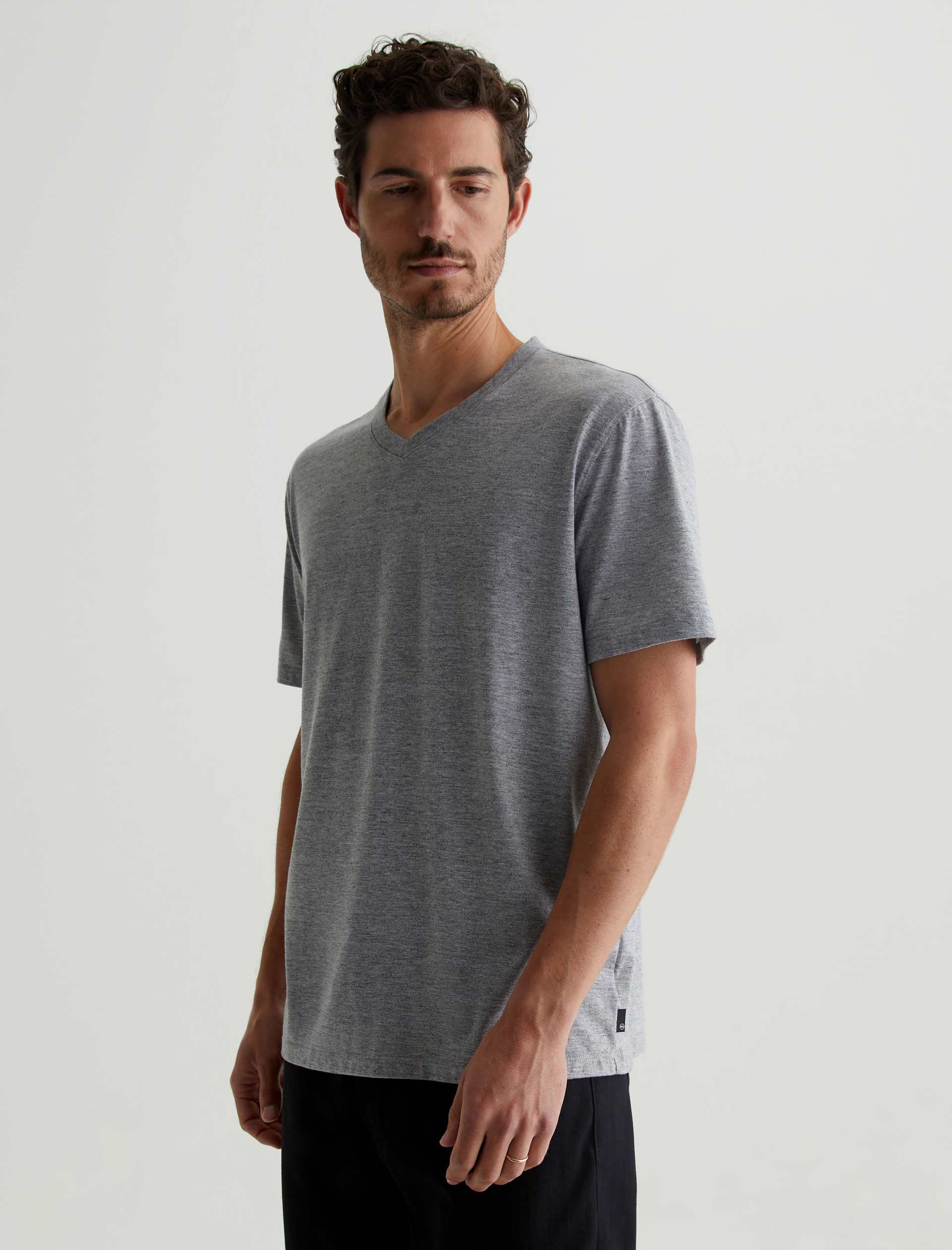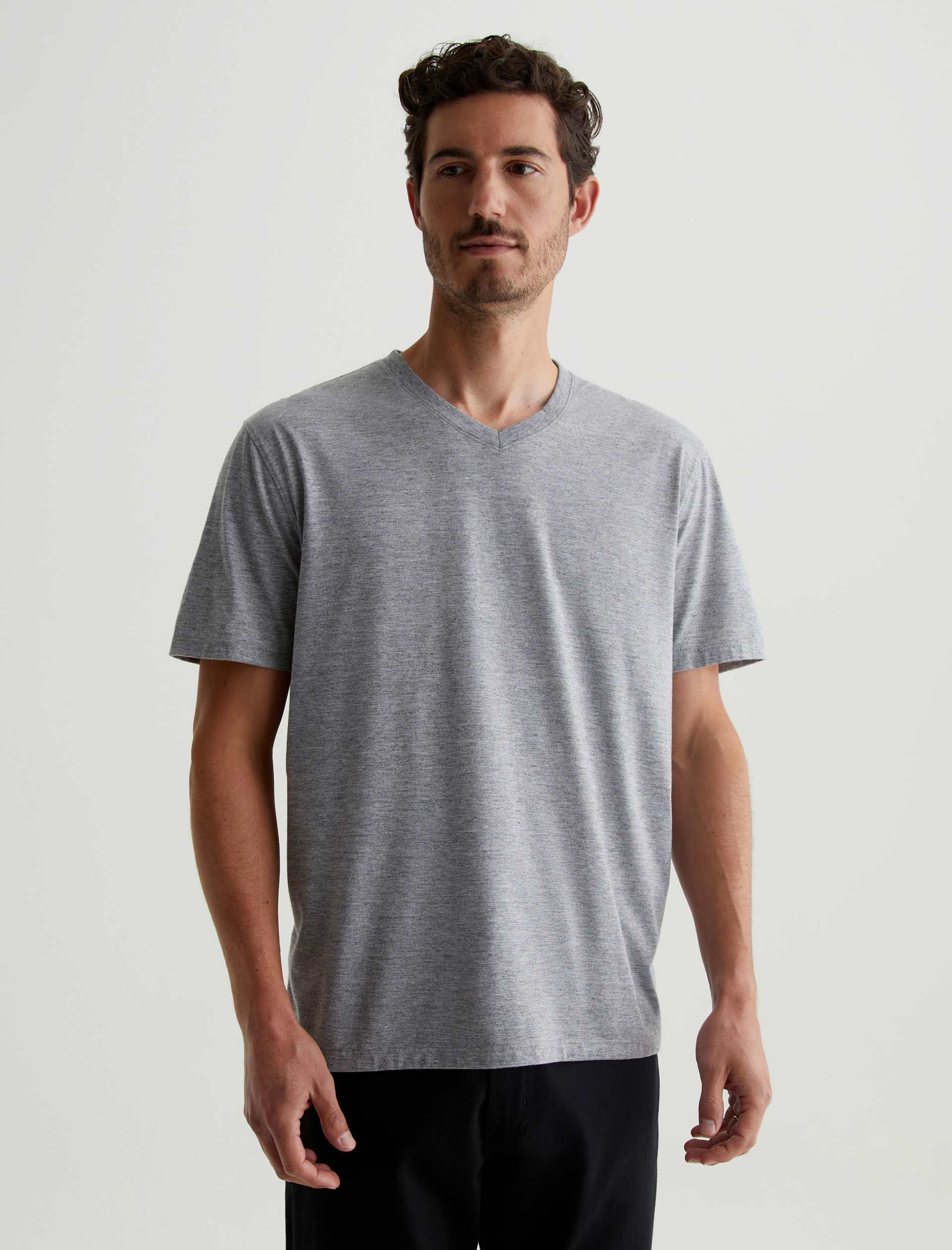 The Bryce Vee for men features a heather grey hue and a classic V-neck line. This men’s t-shirt is designed in a lightweight Heather Comfort Jersey.