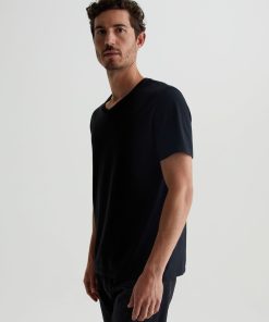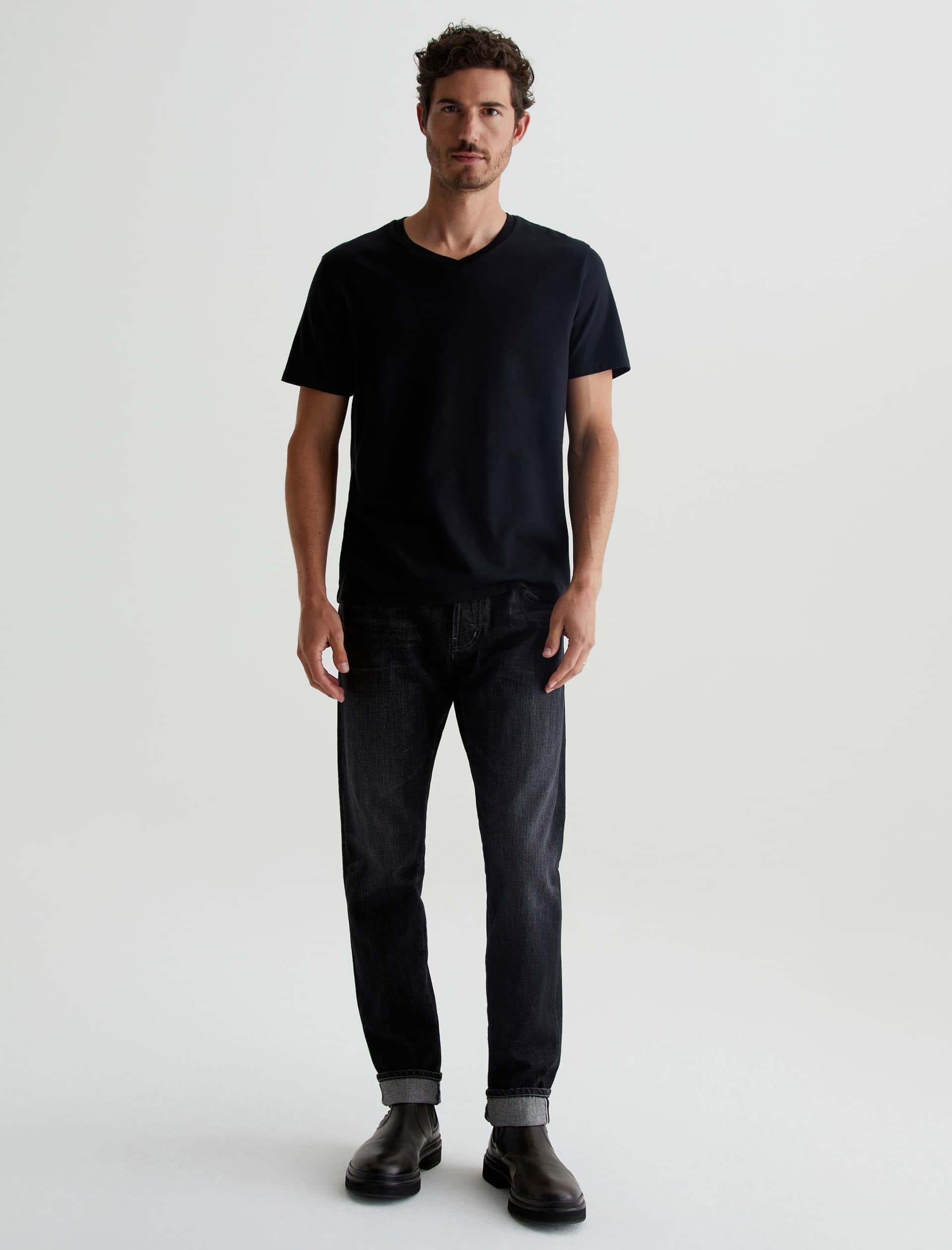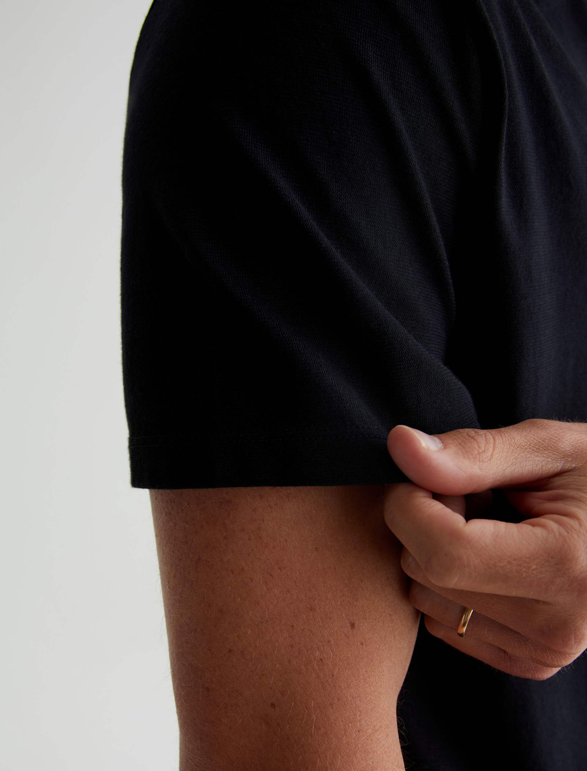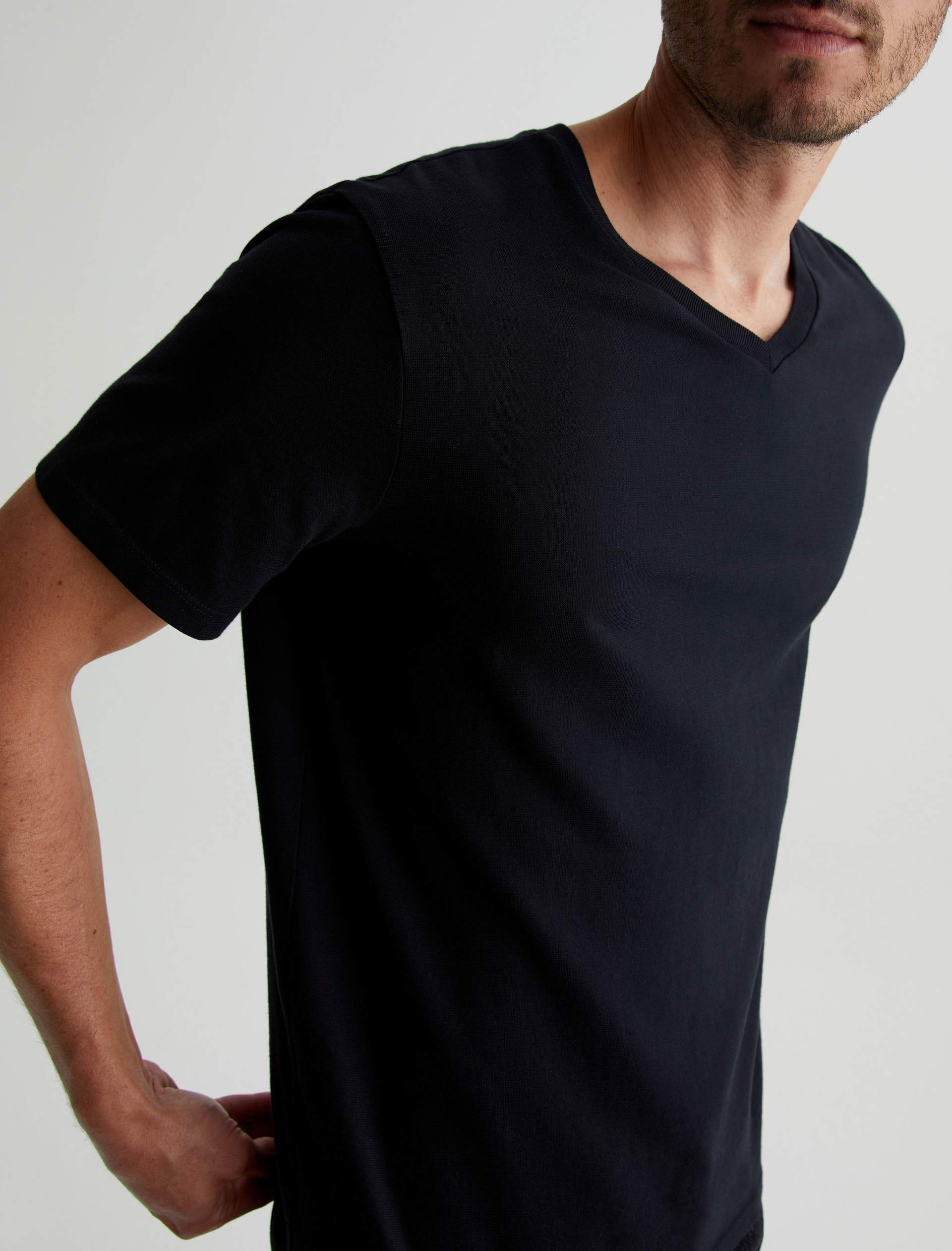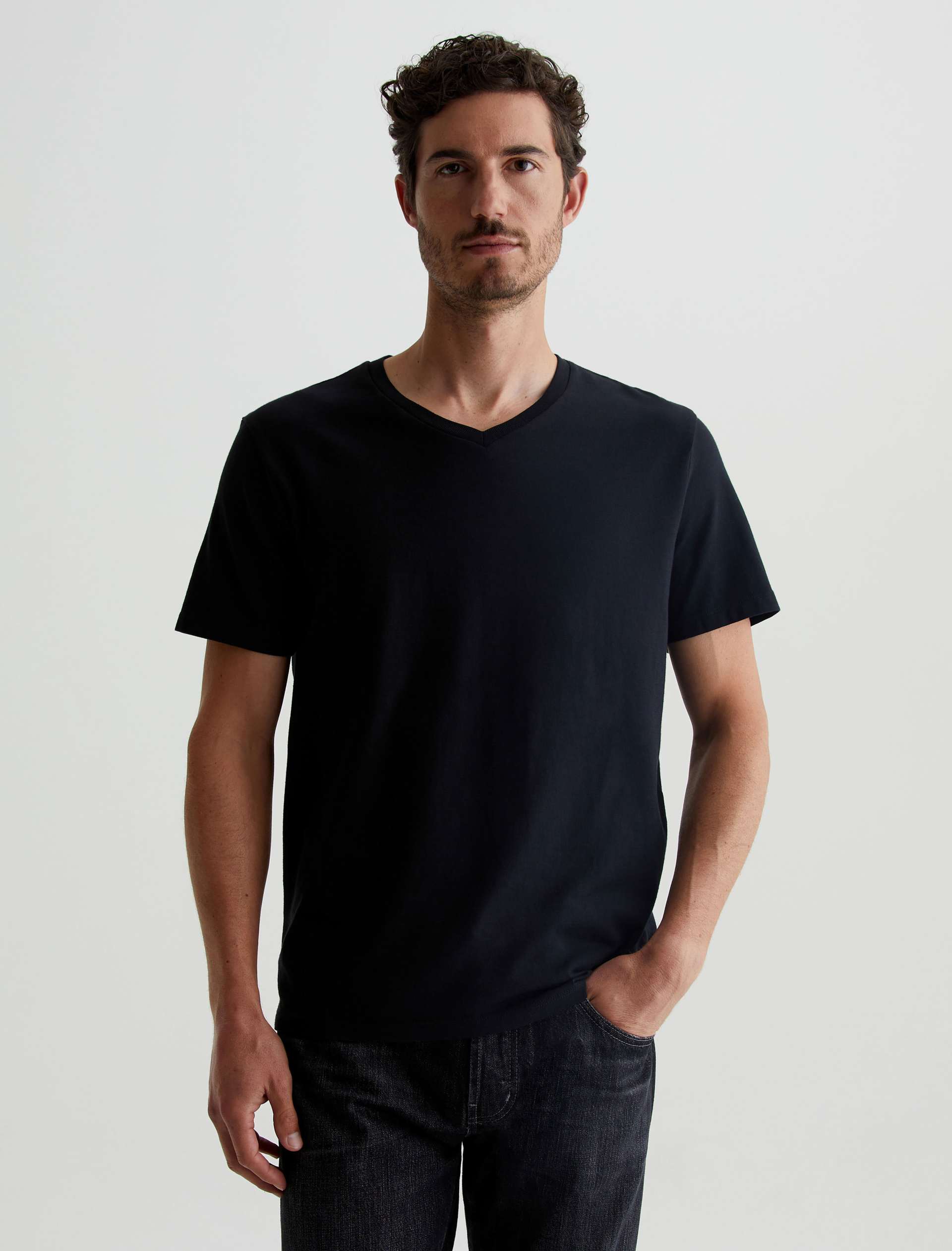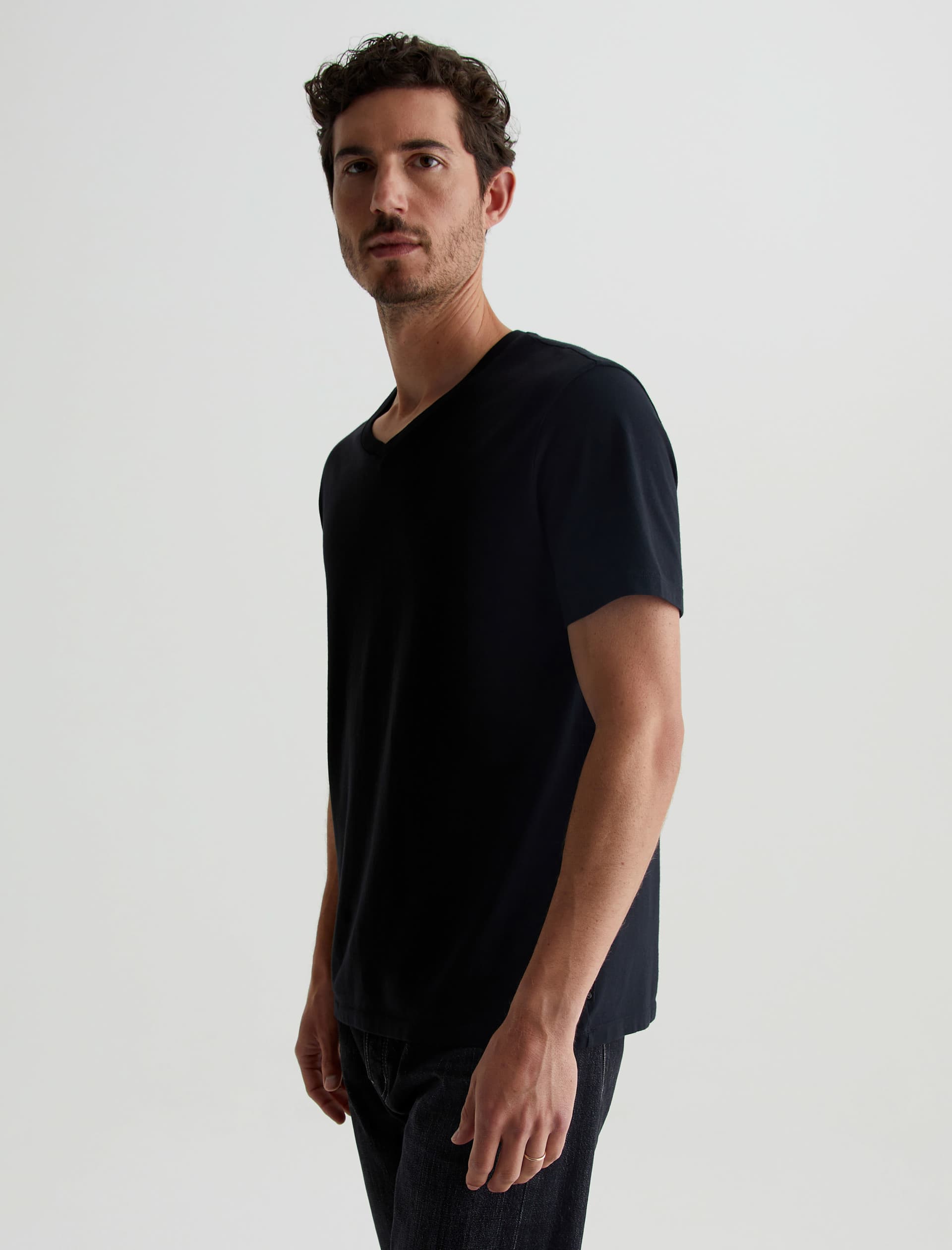 The Bryce Vee in black is our classic short sleeve V-neck tee that offers a 1X1 rib neckband to create a great vee shape at the neck. Our Jersey Knit offers a luxurious comfort that is unrivaled—knitted with both S-twist and Z-twist yarn to sustain longevity and stability, preventing unnecessary twisting and torquing.