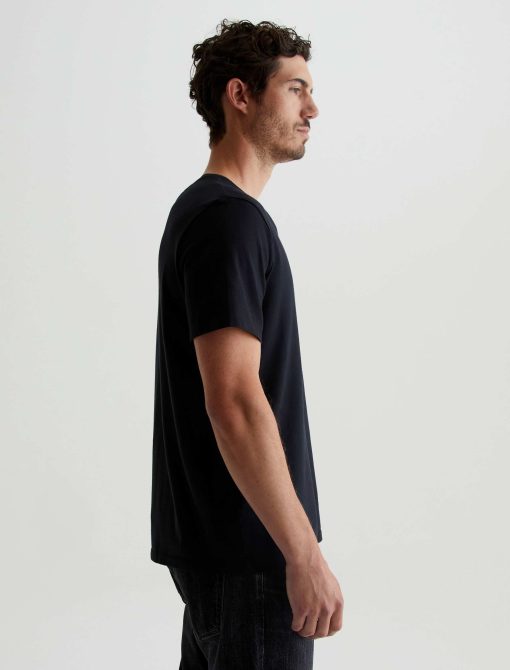The Bryce Vee in black is our classic short sleeve V-neck tee that offers a 1X1 rib neckband to create a great vee shape at the neck. Our Jersey Knit offers a luxurious comfort that is unrivaled—knitted with both S-twist and Z-twist yarn to sustain longevity and stability, preventing unnecessary twisting and torquing.