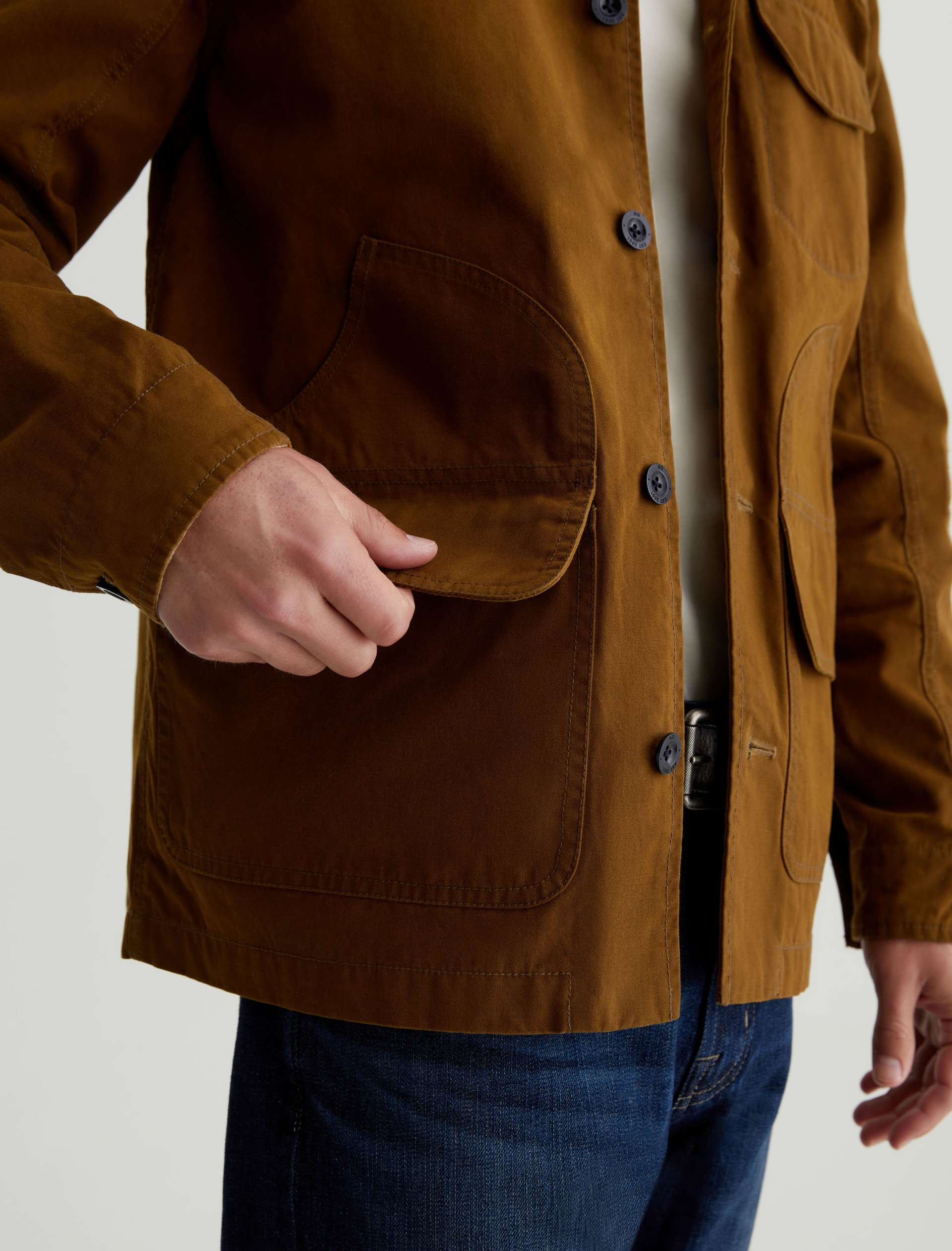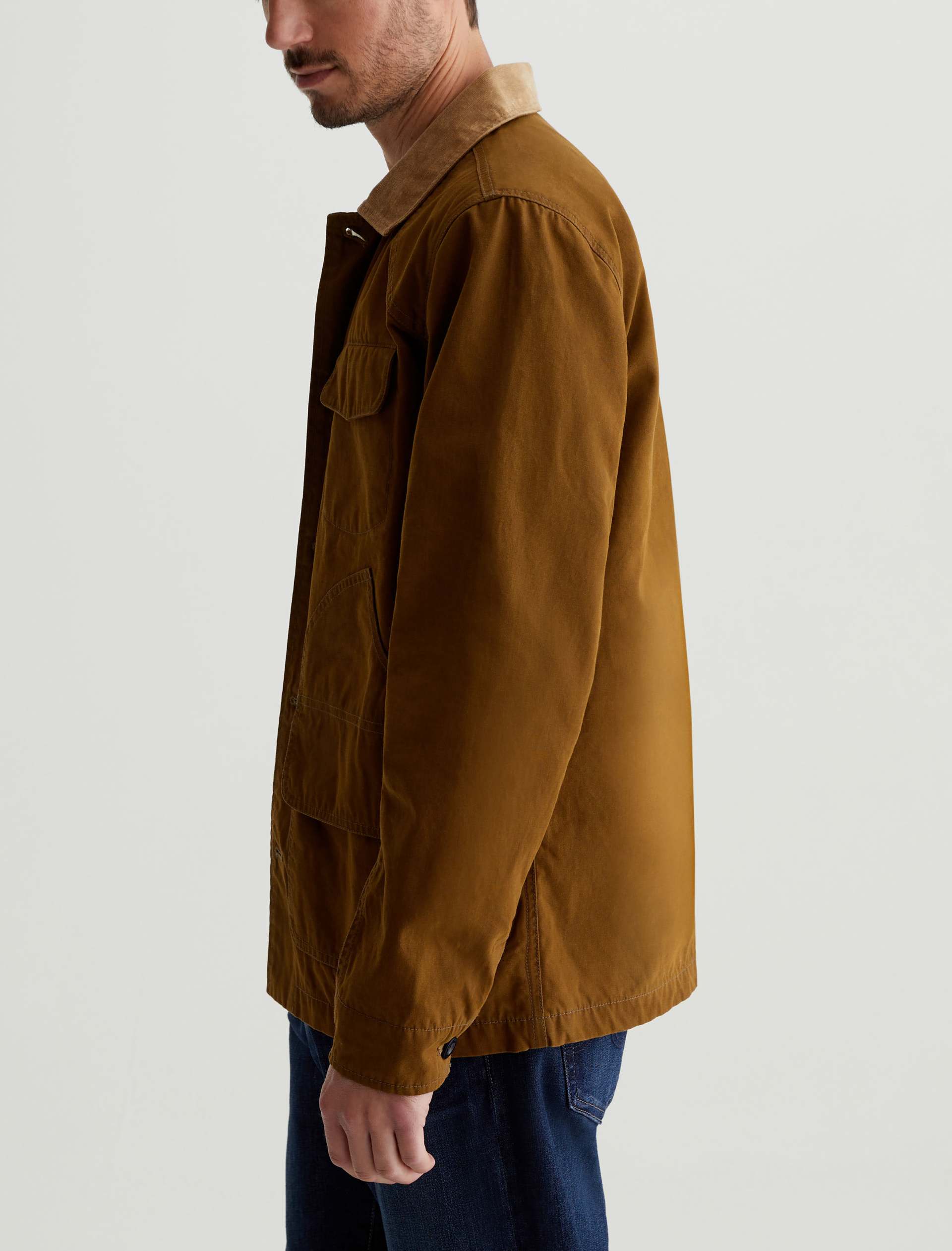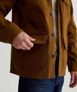 The Camden Jacket takes inspiration from vintage hunting jackets. Made from 10.2 oz. Coated Cotton Canvas in golden brown, it’s contrasted by corduroy at the collar and inner cuffs. Multifunctional utility pockets provide ample room for your essentials, while cotton-tencel lining offers softness and warmth.