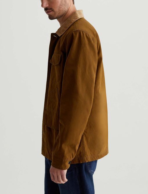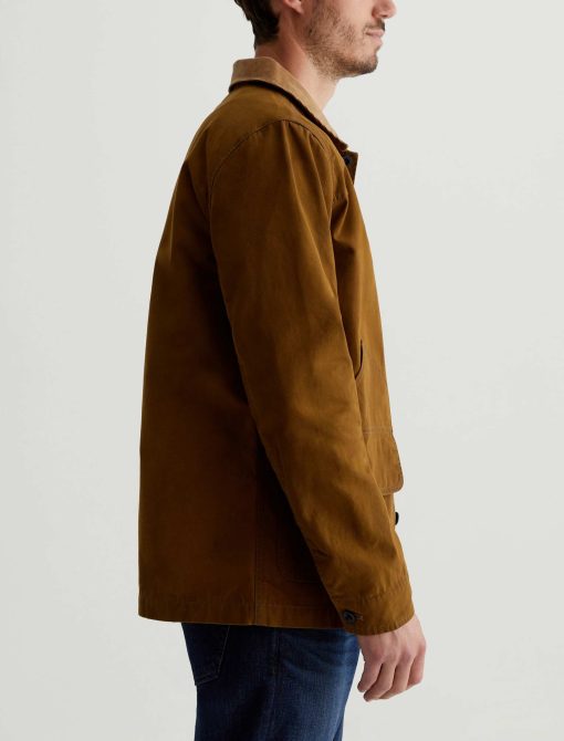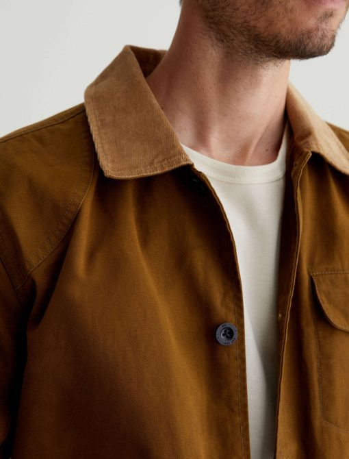 The Camden Jacket takes inspiration from vintage hunting jackets. Made from 10.2 oz. Coated Cotton Canvas in golden brown, it’s contrasted by corduroy at the collar and inner cuffs. Multifunctional utility pockets provide ample room for your essentials, while cotton-tencel lining offers softness and warmth.