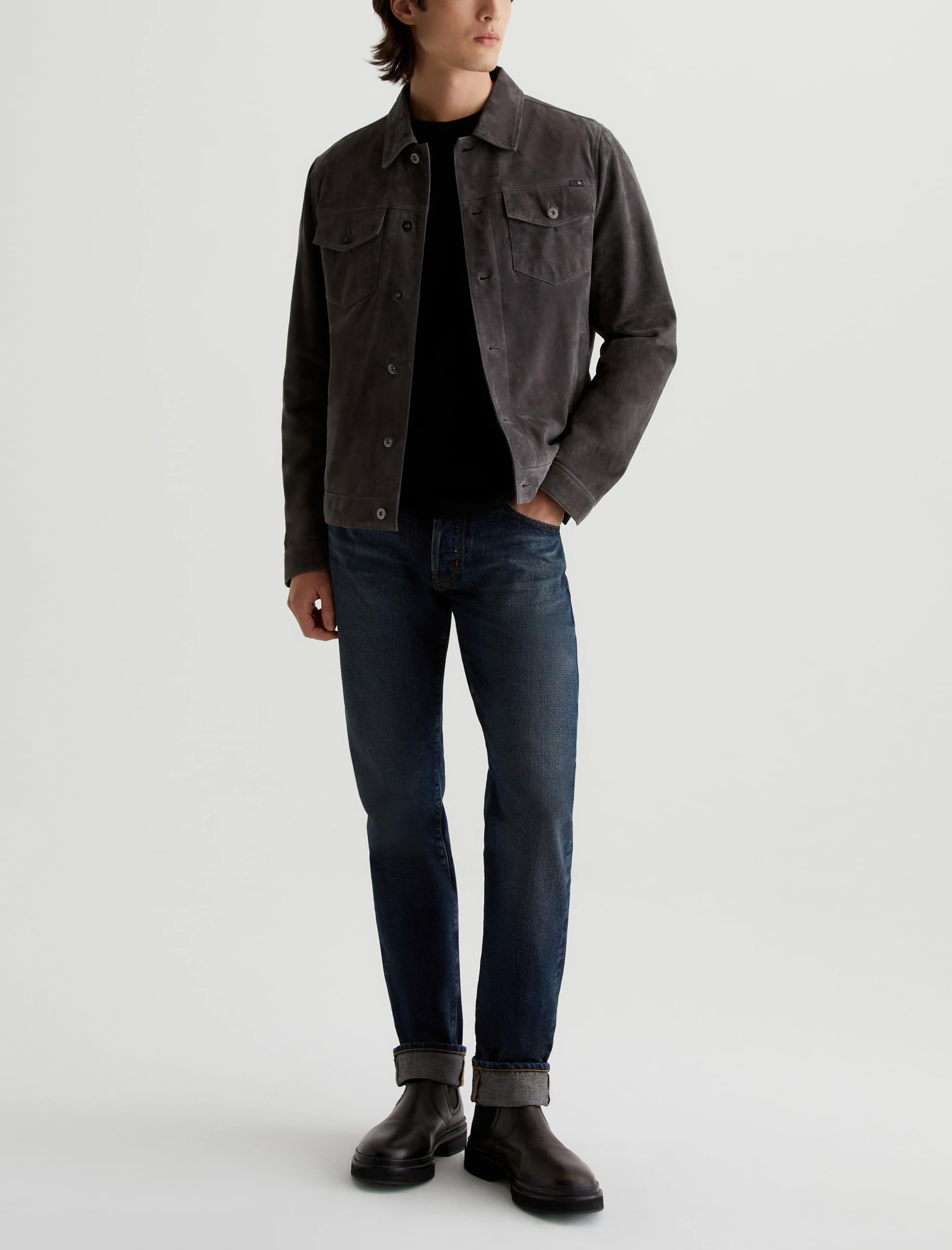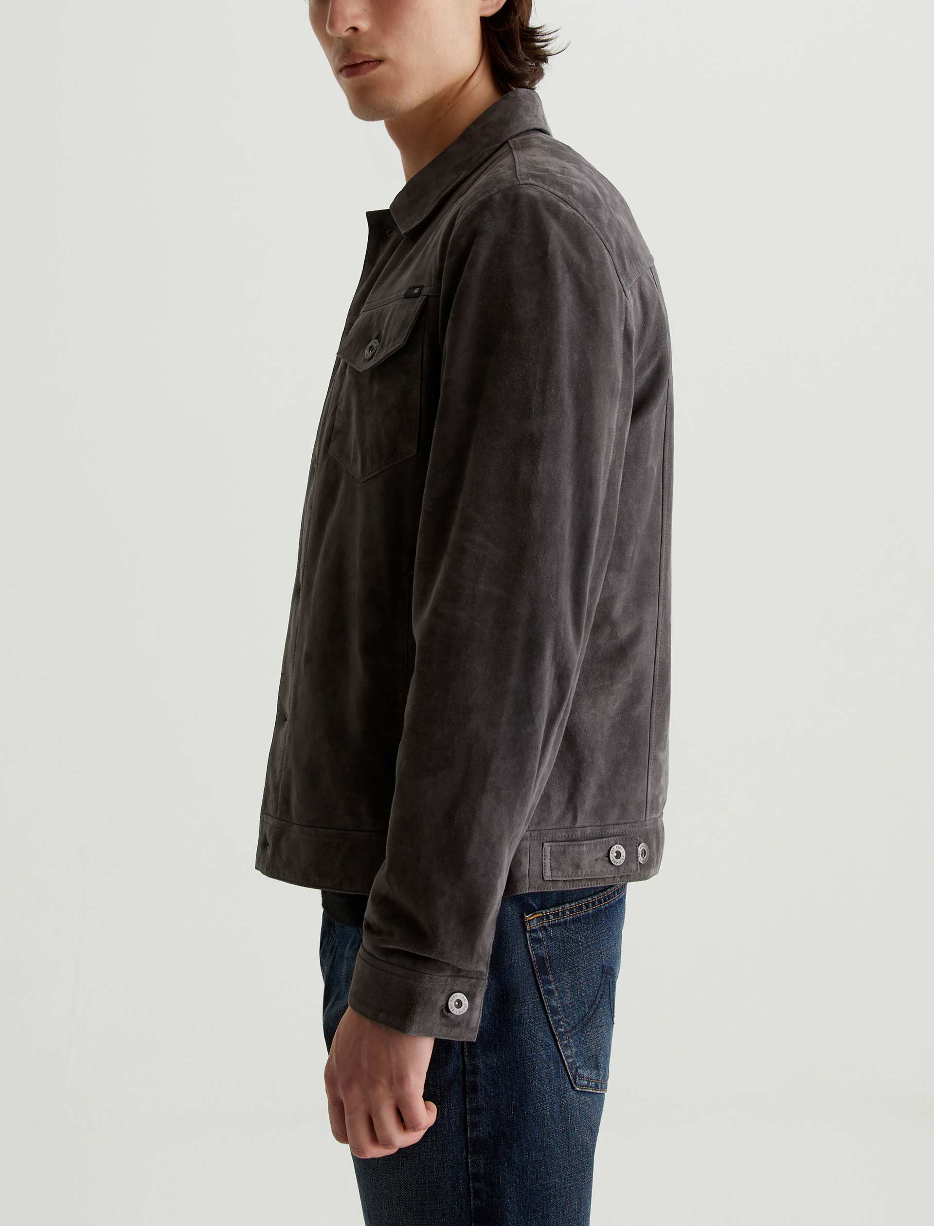 Buttery suede in a versatile grey shade elevates our classic Dart Jacket. An elegant take on the essential trucker style, it’s got timeless details—pointed collar, flap pockets at the chest, and handy welt pockets at the hips. An effortless style to dress up or down.