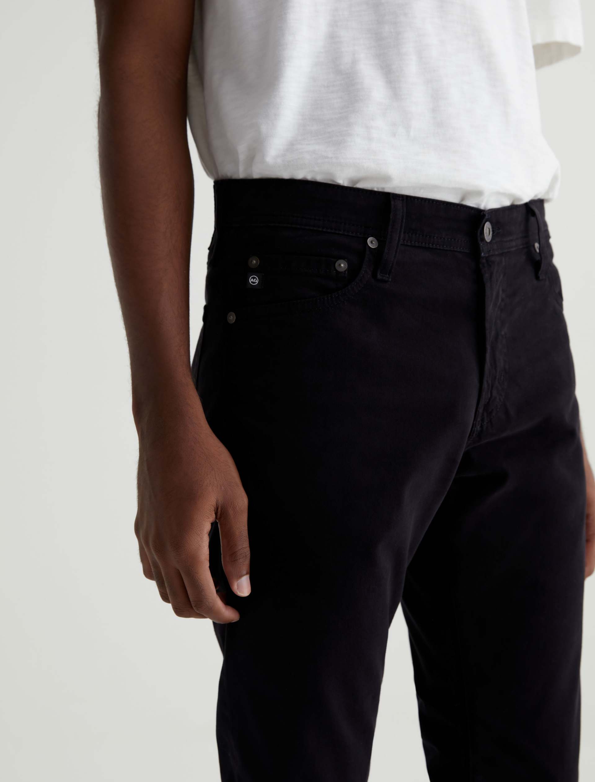 Dylan tailored slim pant for men features a deep black wash and is cut comfortably slim through thighs and tapered at leg opening. This men’s skinny jean is designed in a sueded sateen fabrication for a luxurious feel and premium look.