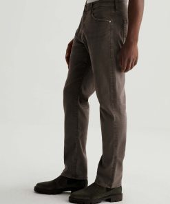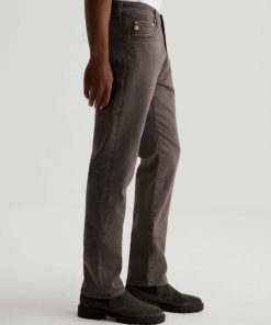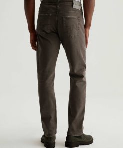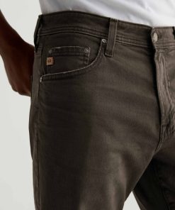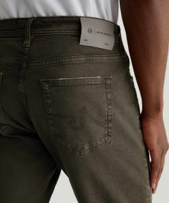 Everett is a slim-straight men’s jean updated in a sulfur-dyed green shade with AG-ed™ fading and gently worn pocket edges. The style has a mid-rise waist and a straight fit that’s relaxed from hip to knee before slightly tapering at the leg opening. These slim-straight men’s jeans feature 8.7 oz. Hyper Soft White Bull