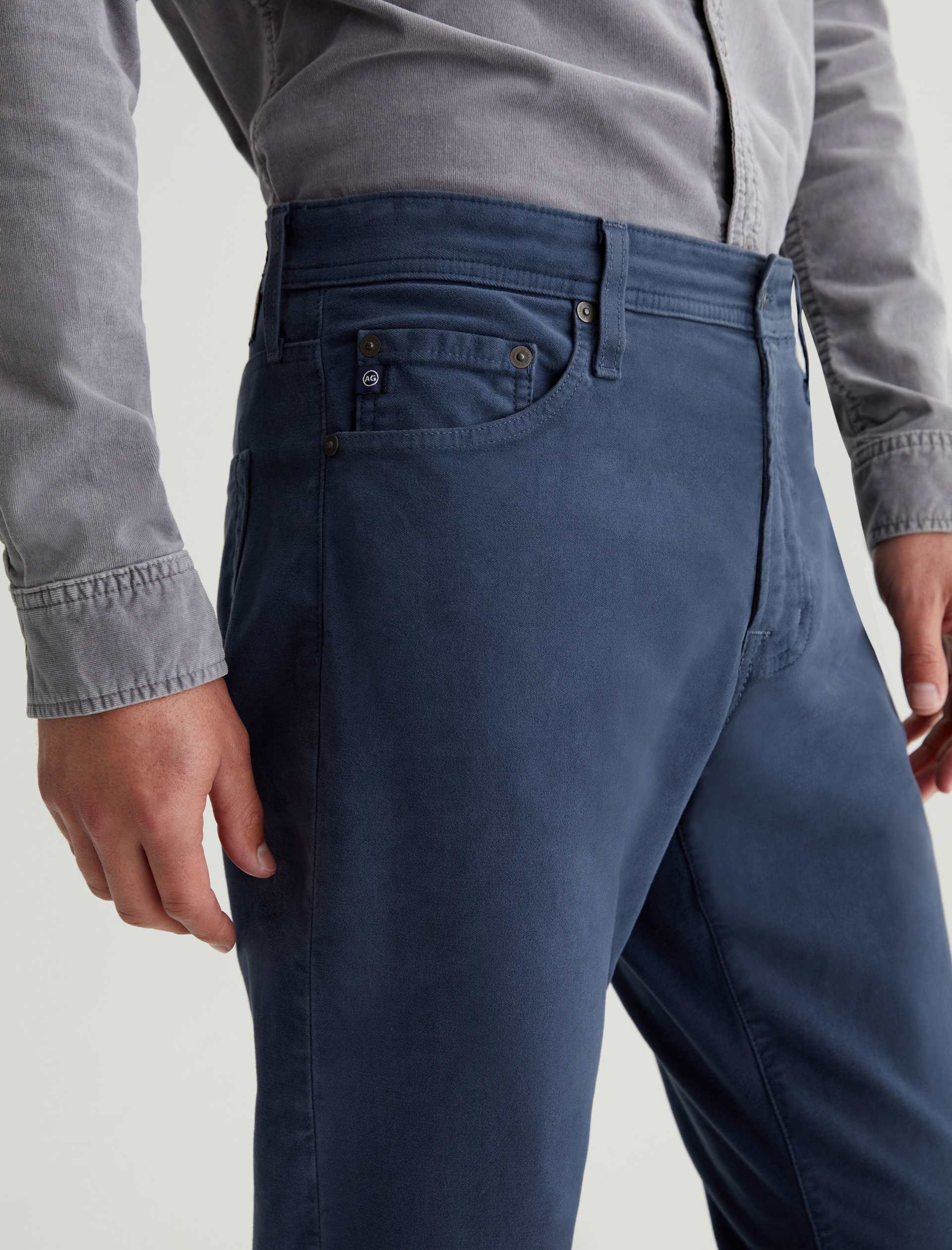 Everett is a slim straight men’s fit, updated here in 8.7 oz. Brushed Stretch Moleskin from Italy. Featuring a deep blue shade, it’s sublimely soft with just the right amount of give. These five-pocket men’s pants have a comfortable mid-rise waist and a straight-leg silhouette that’s relaxed from hip to knee before com