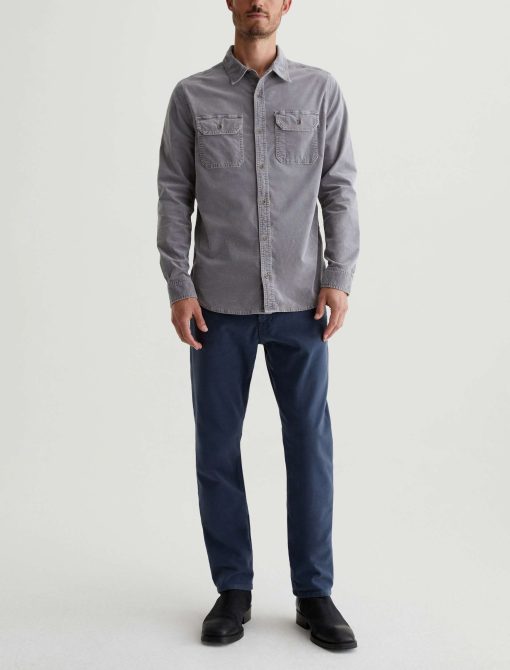 Everett is a slim straight men’s fit, updated here in 8.7 oz. Brushed Stretch Moleskin from Italy. Featuring a deep blue shade, it’s sublimely soft with just the right amount of give. These five-pocket men’s pants have a comfortable mid-rise waist and a straight-leg silhouette that’s relaxed from hip to knee before com