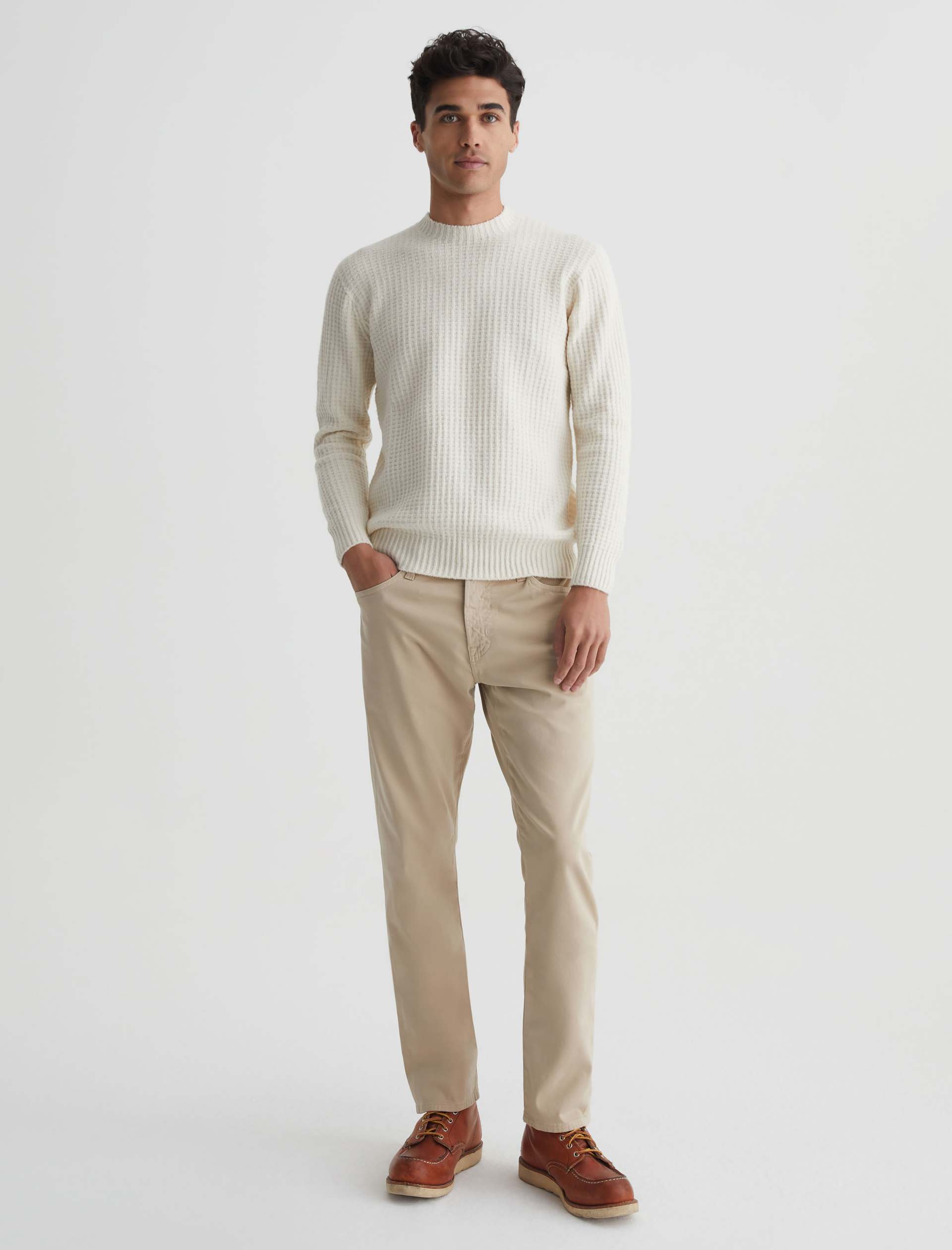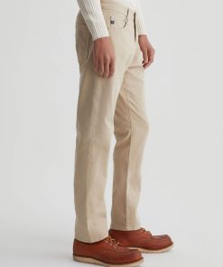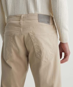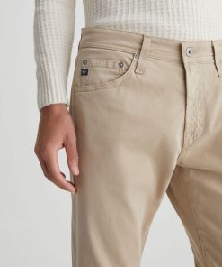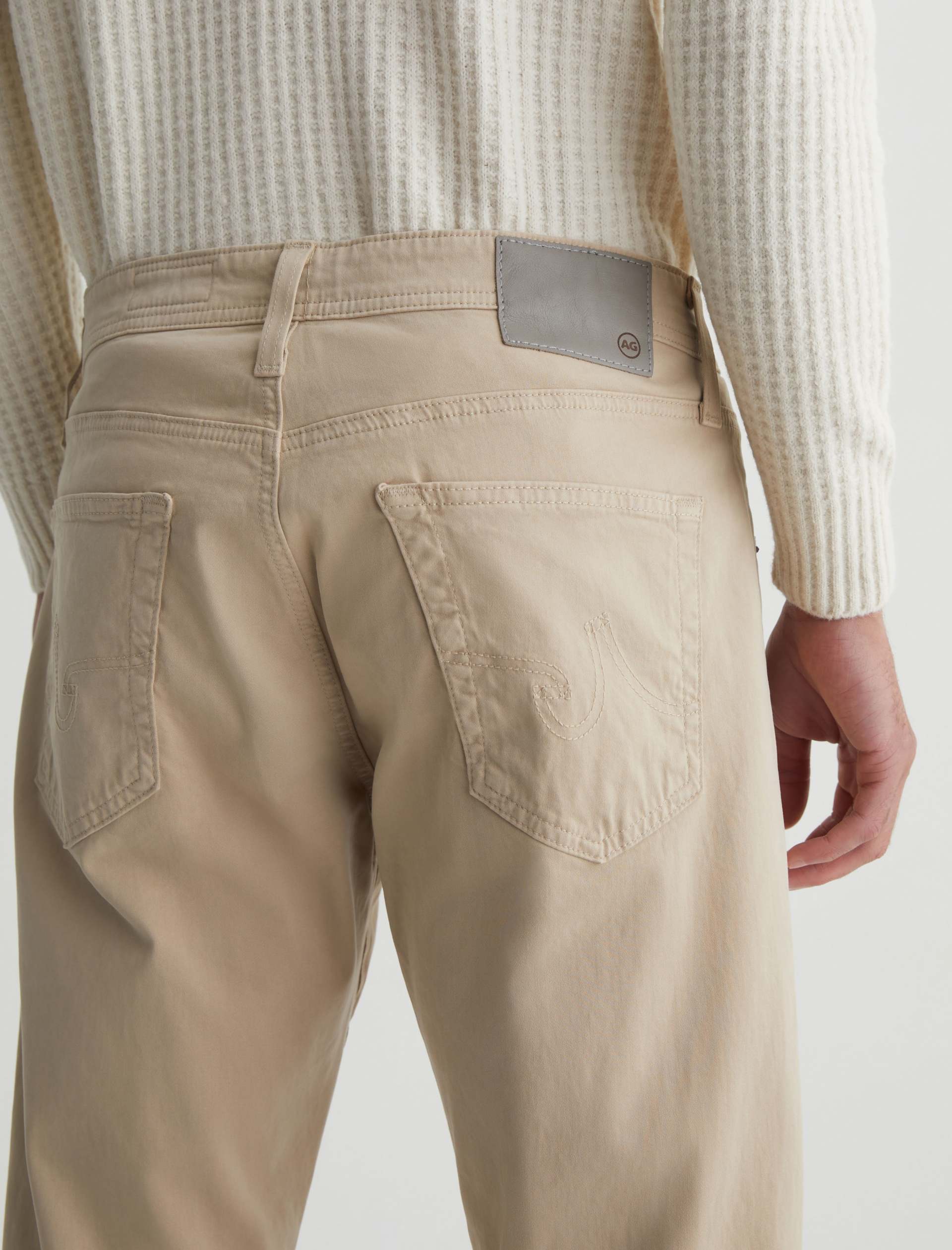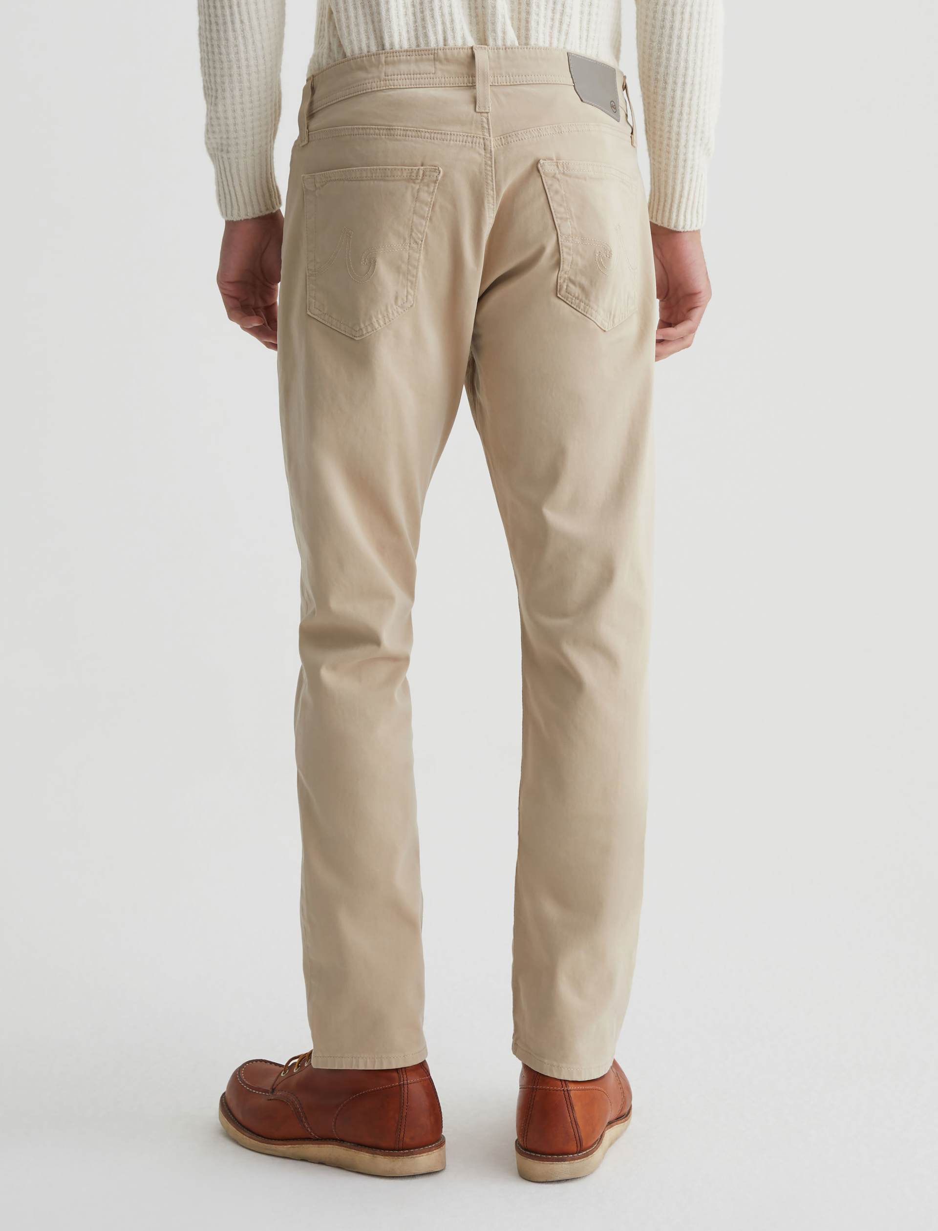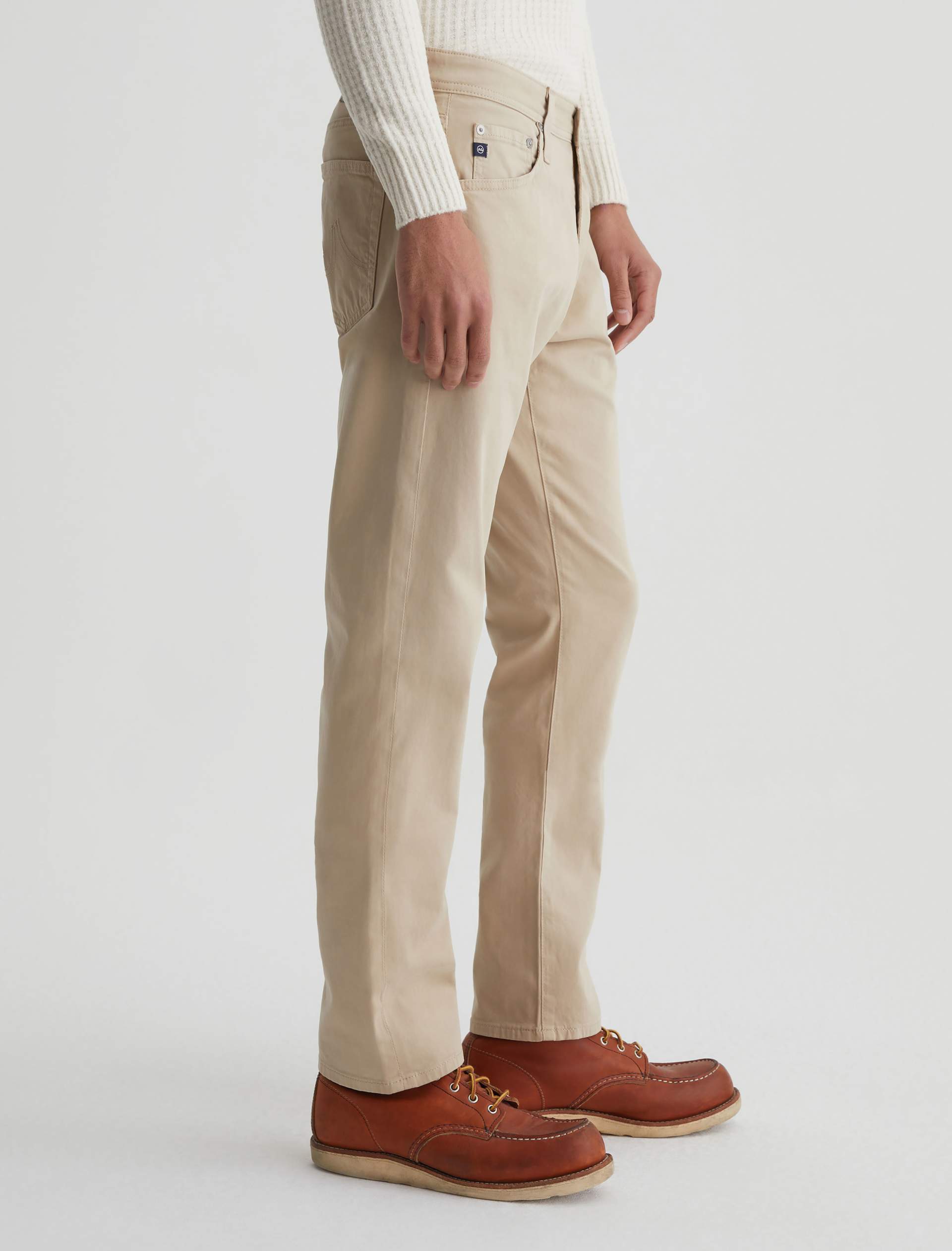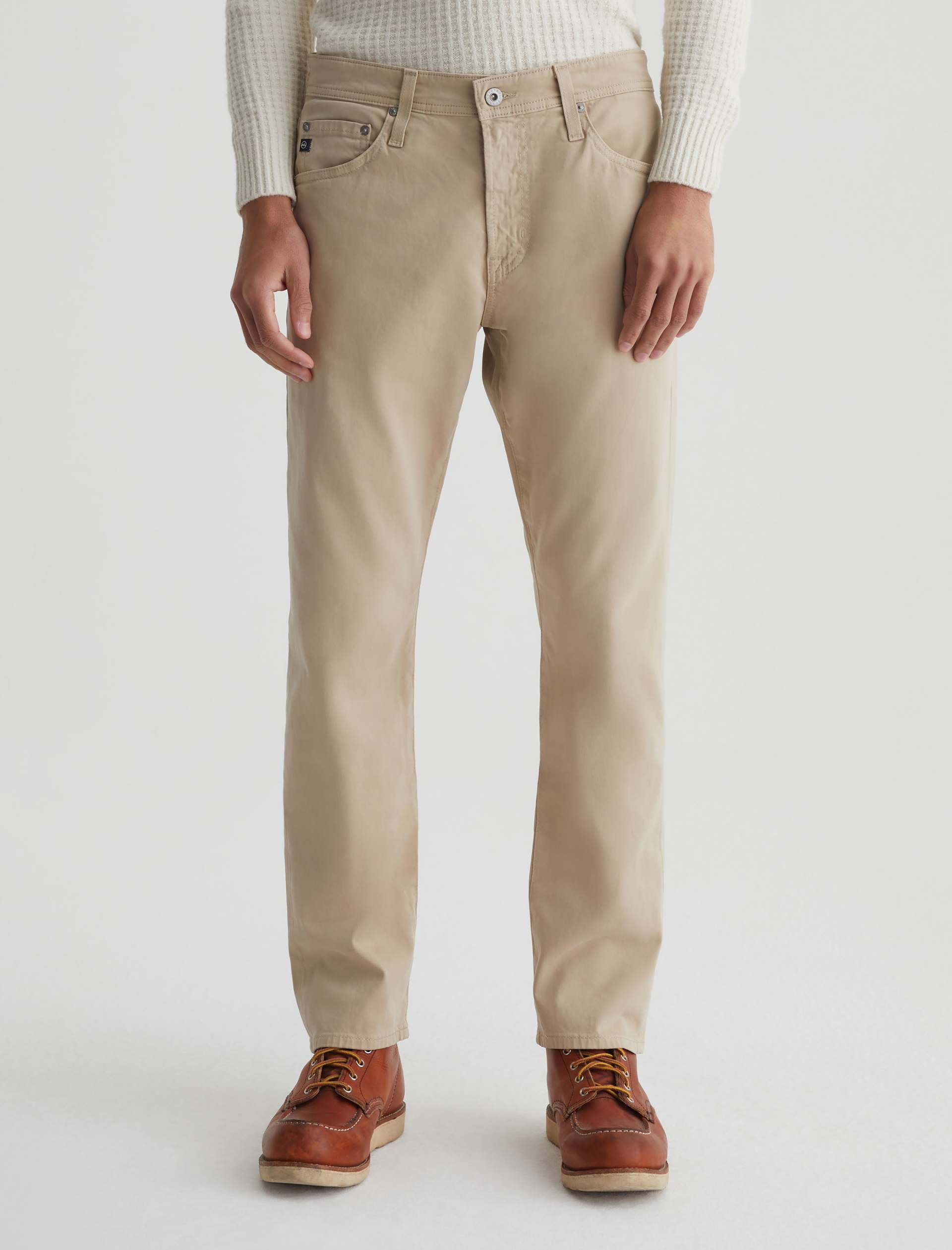 Everett is a slim straight pant for men, done here in a light khaki color. The pair features a comfortable mid-rise waist and a straight fit that’s relaxed from hip to the knee before slightly tapering at the leg opening. This men’s slim straight pant is designed in 8.4 oz. Sueded Stretch Sateen for a refined look and