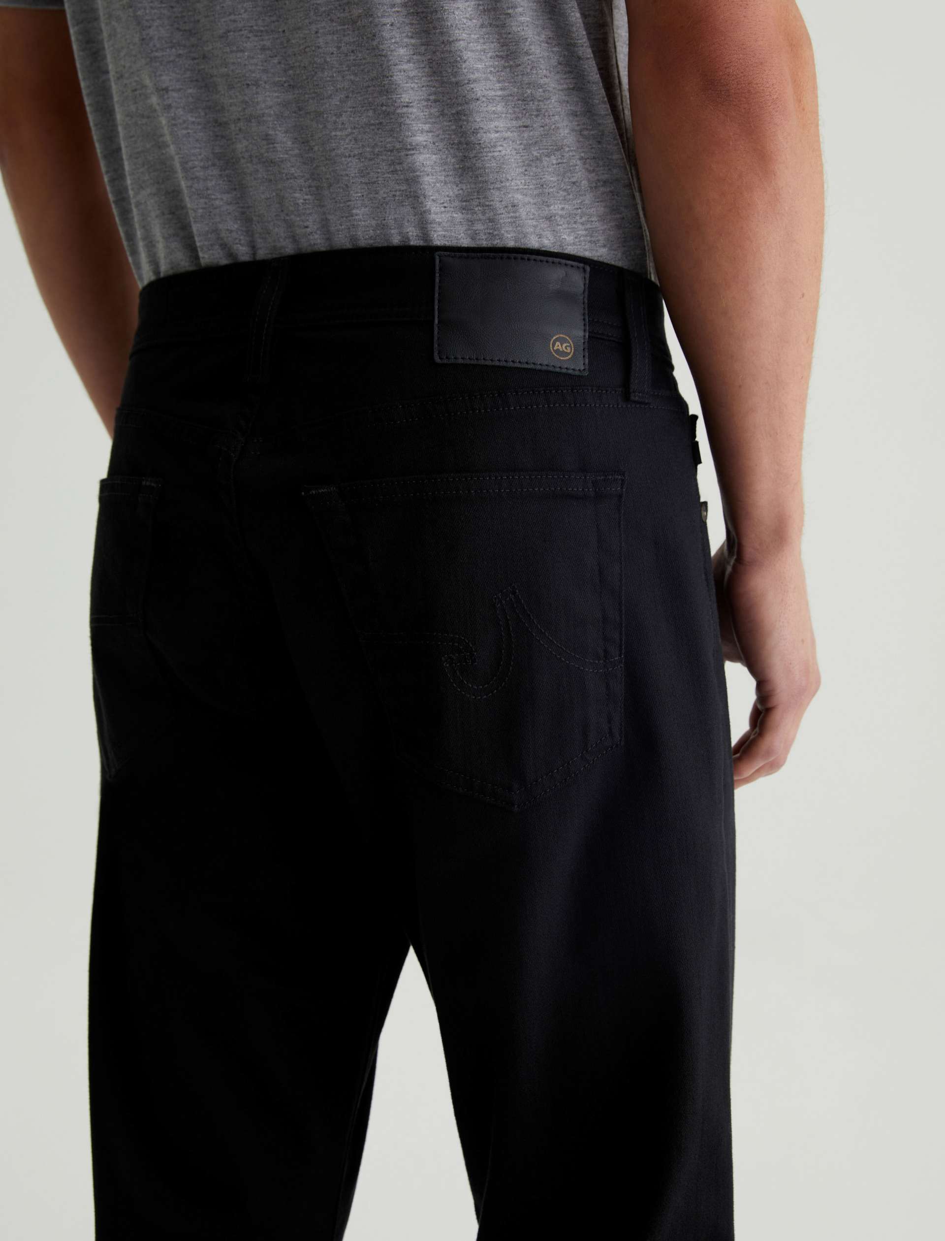 Graduate is a tailored leg jean for men featuring a rich black hue. Graduate is cut in a slim mid-rise waist with a relaxed fit from the hip to the knee before tapering at the leg opening. This men’s slim straight jean is designed in 10 oz. Dover Stretch Denim.