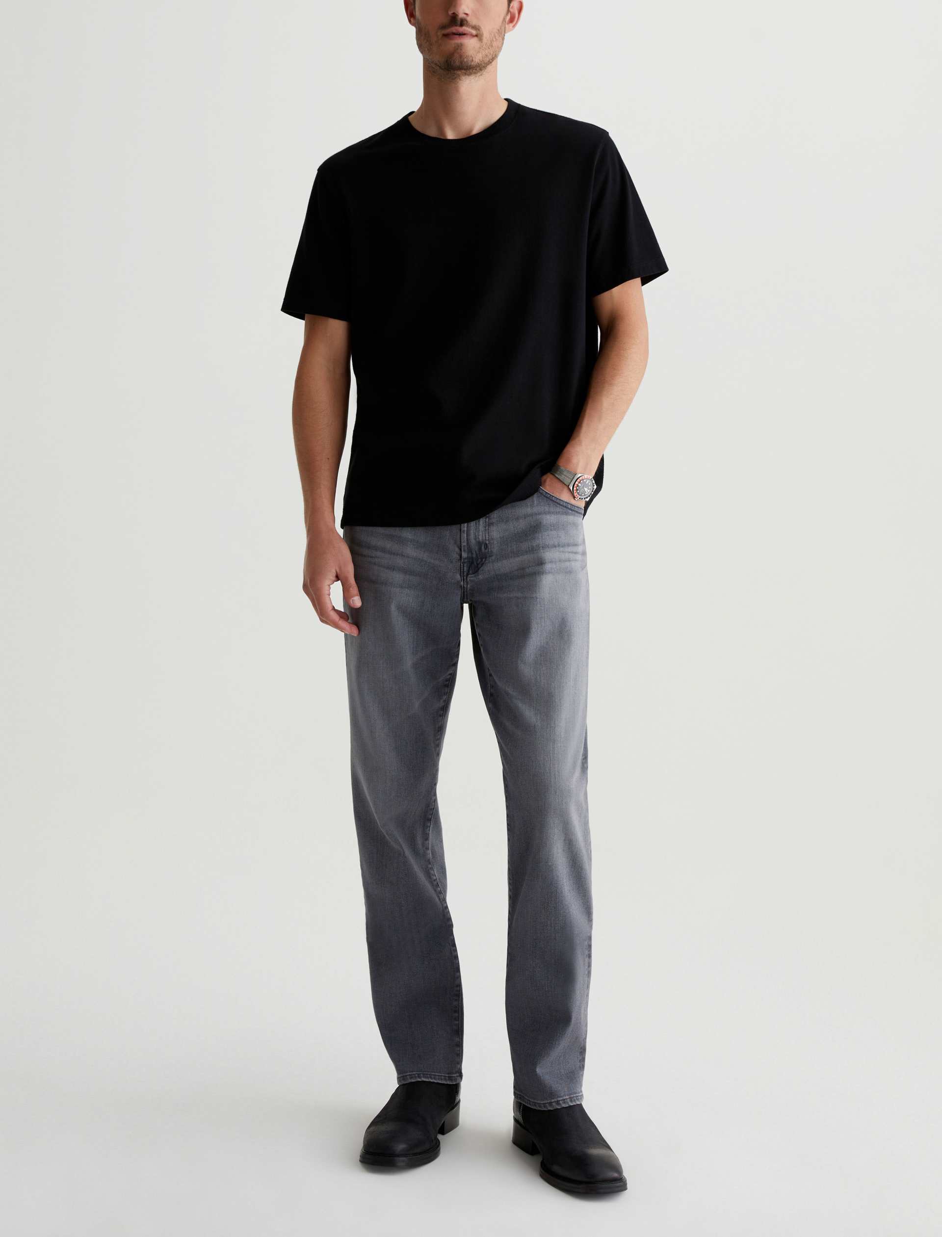 Our best-selling Graduate men’s jeans are updated in 10 oz. Ashen Stretch Denim with a faded grey wash. Featuring a slim mid-rise waist, this five-pocket style has a tailored silhouette that’s relaxed from hip to knee and tapered at the leg opening. Complete with a zip fly and button closure.