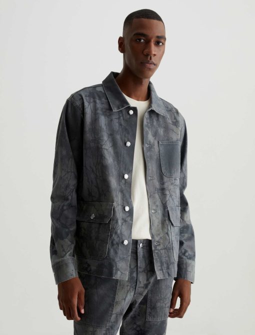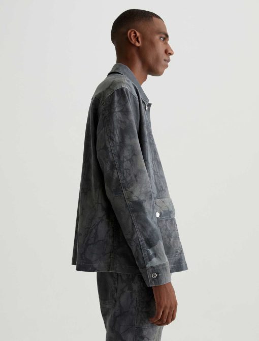 Perfect for lightweight layering, our Kirin Jacket takes inspiration from vintage workwear. The style has a slightly boxy shape with a pointed collar, button front placket, and utility pockets at the front. It’s a modern update to the classic chore jacket, done here in AG’s best-selling Sueded Stretch Sateen for a refi