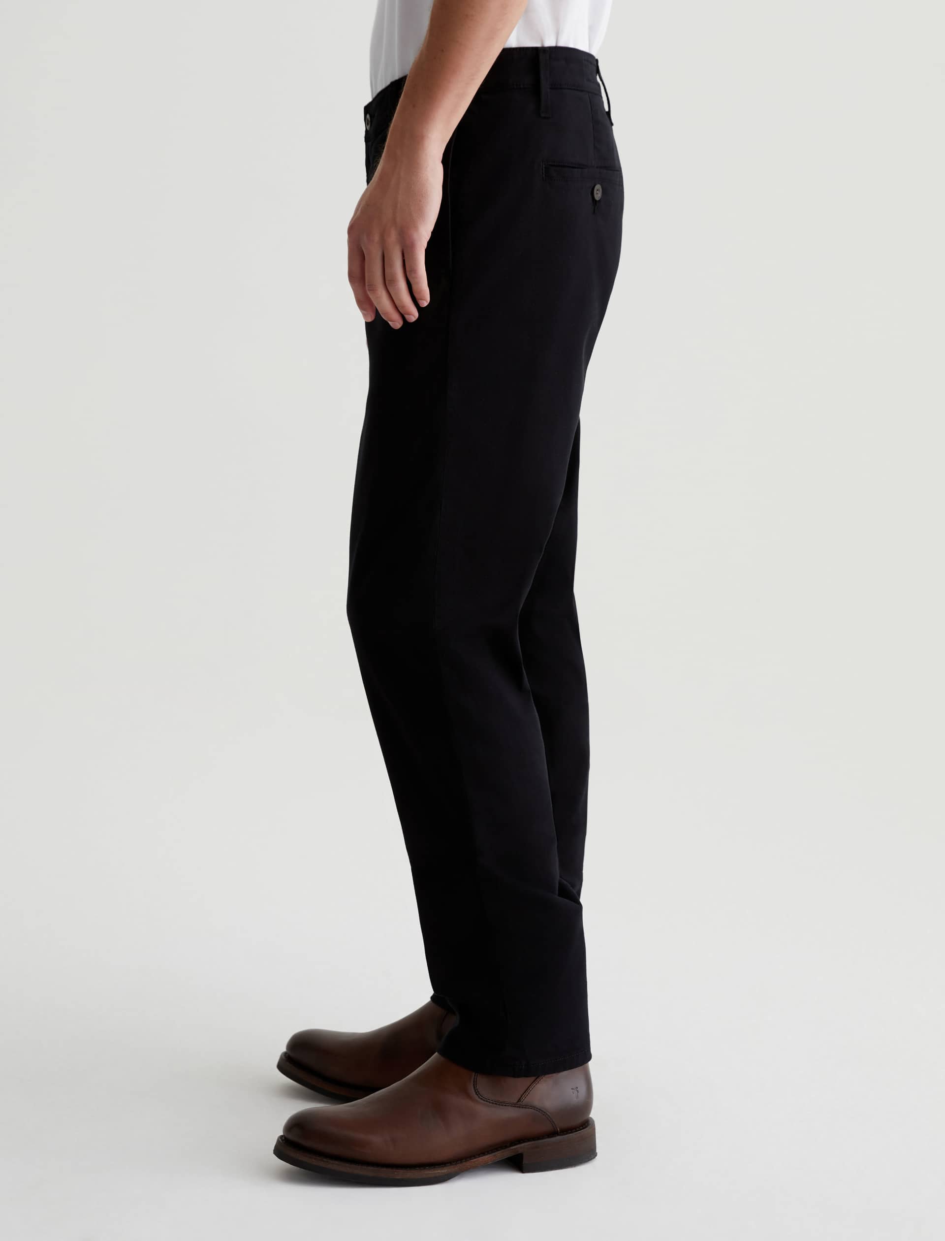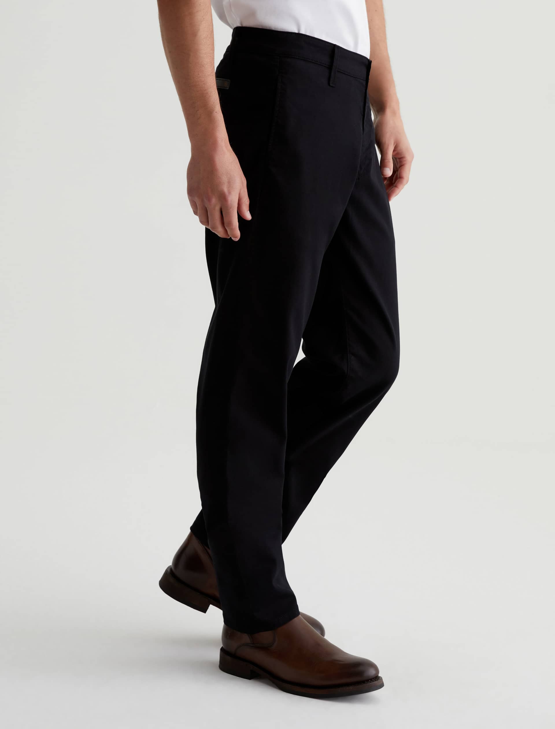 Kullen is a slim trouser crafted from 7.9 oz. Sorrento Stretch Twill, a refined fabric in classic black. These slim-cut men’s pants feature on-seam pockets for a streamlined aesthetic. Welt pockets at the back complete the look.