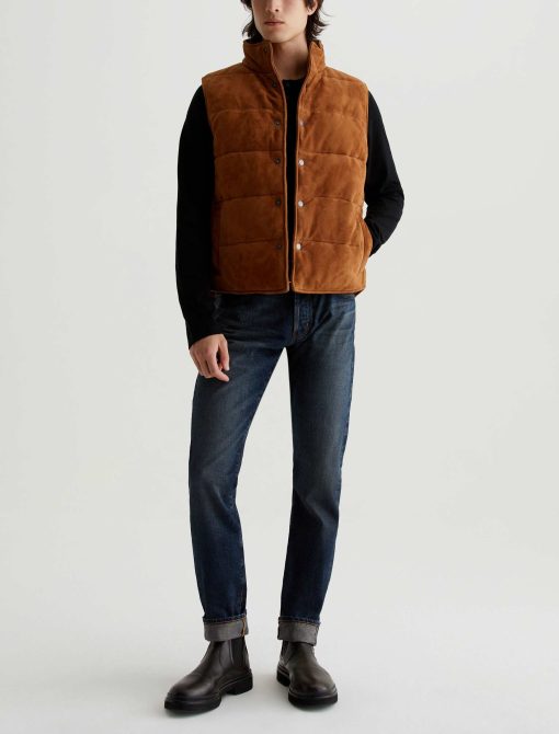 A sophisticated layer to slip on for extra warmth. The Neo Vest is crafted from supple suede in a rich cognac color. It’s got quilted construction with metal snap closures and concealed hip pockets for handy stashing.