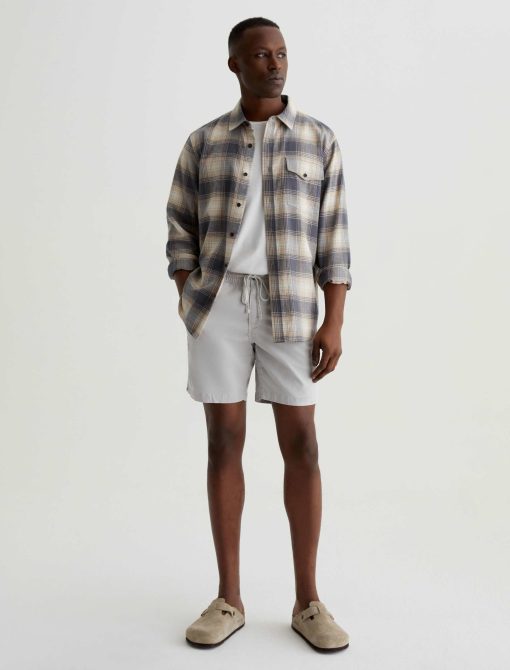 The Oliver drawstring shorts offer a comfortable, casual approach to warm-weather style. Made from stretch-blend twill in pale grey, it’s cut for a relaxed fit with an elasticized waistband. A zip fly with button closure completes the look.