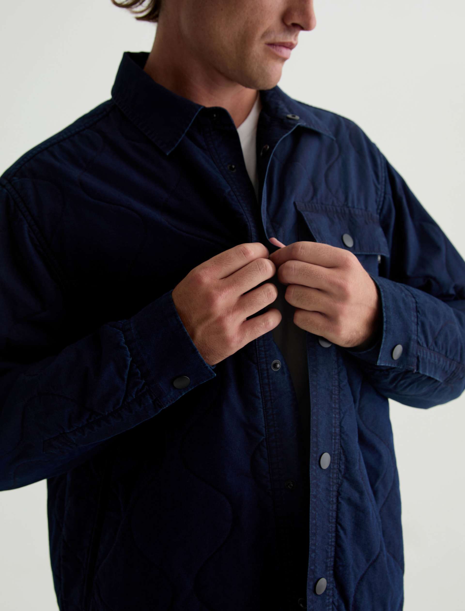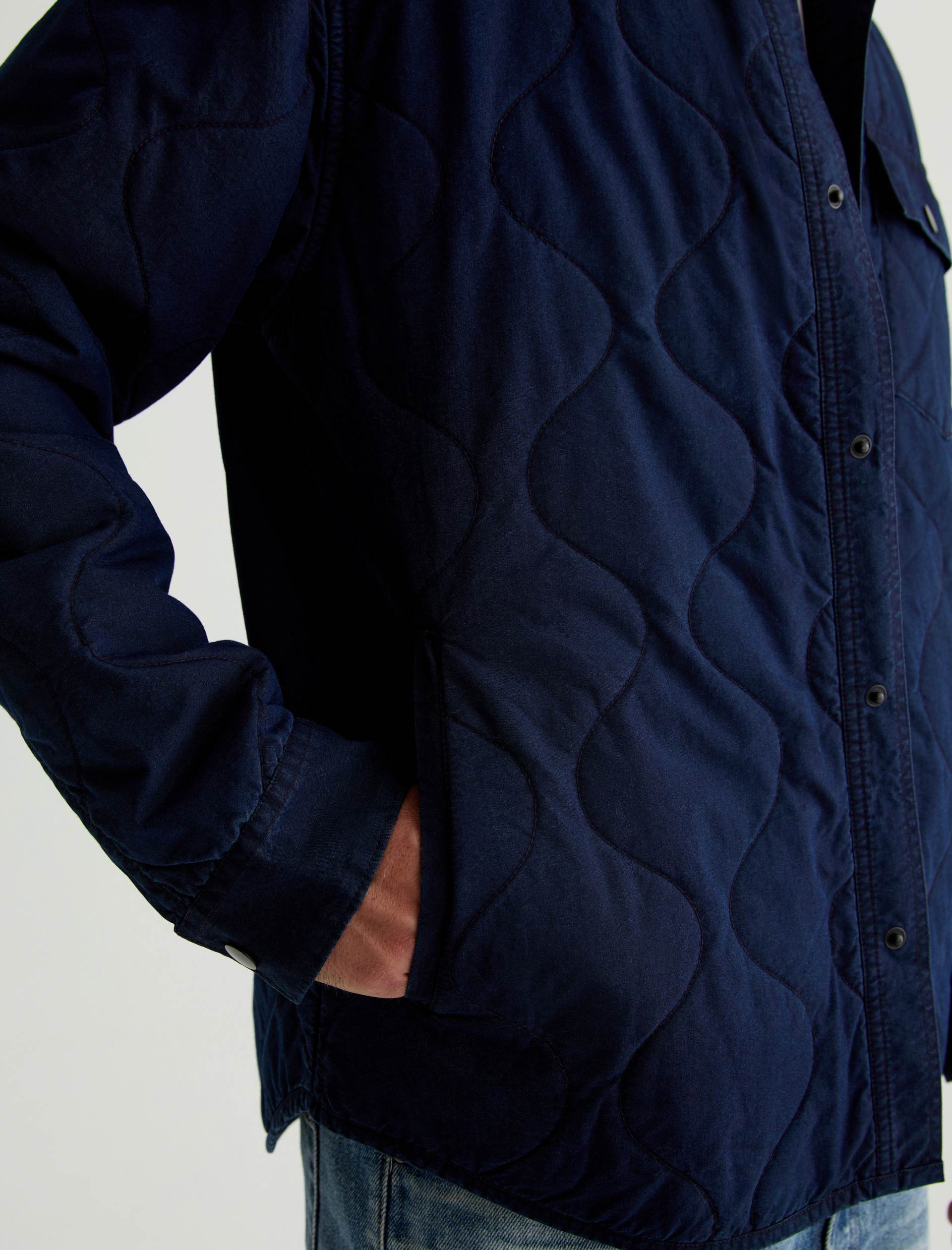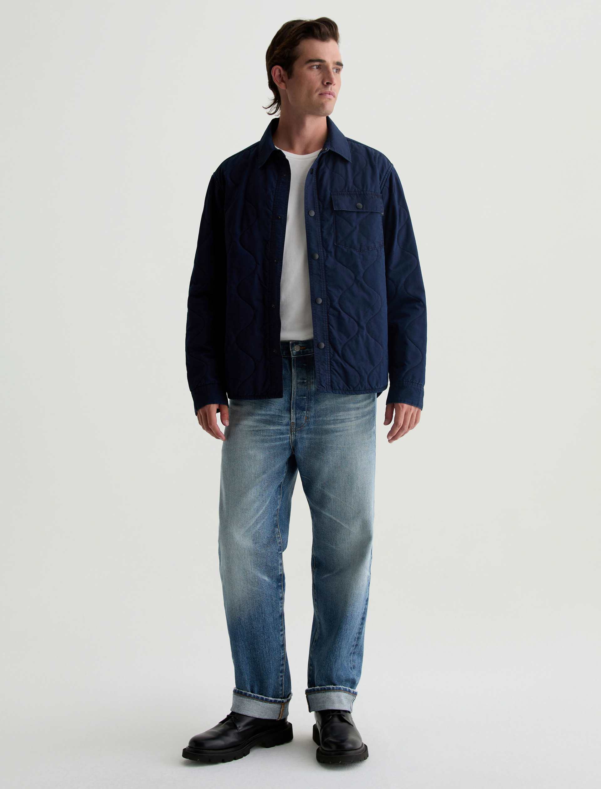The Roy quilted shirt jacket takes a classic shirt silhouette and makes it functional for any time of year. It’s the perfect transitional layering piece in indigo cotton-nylon twill that fade and distress over time, just like your favorite jeans. Detailed with a snap placket and a flap pocket at the chest.