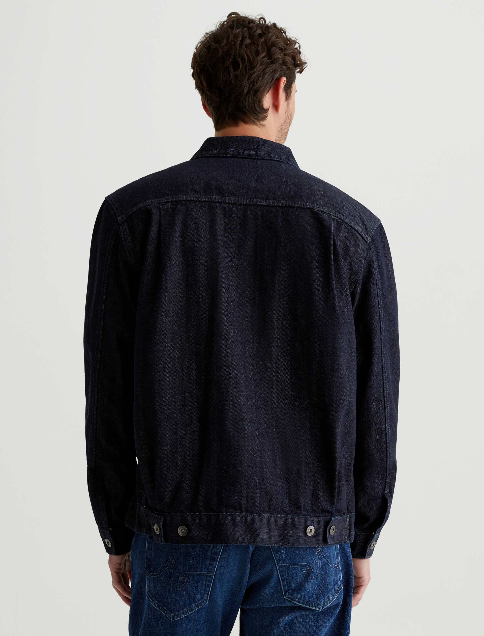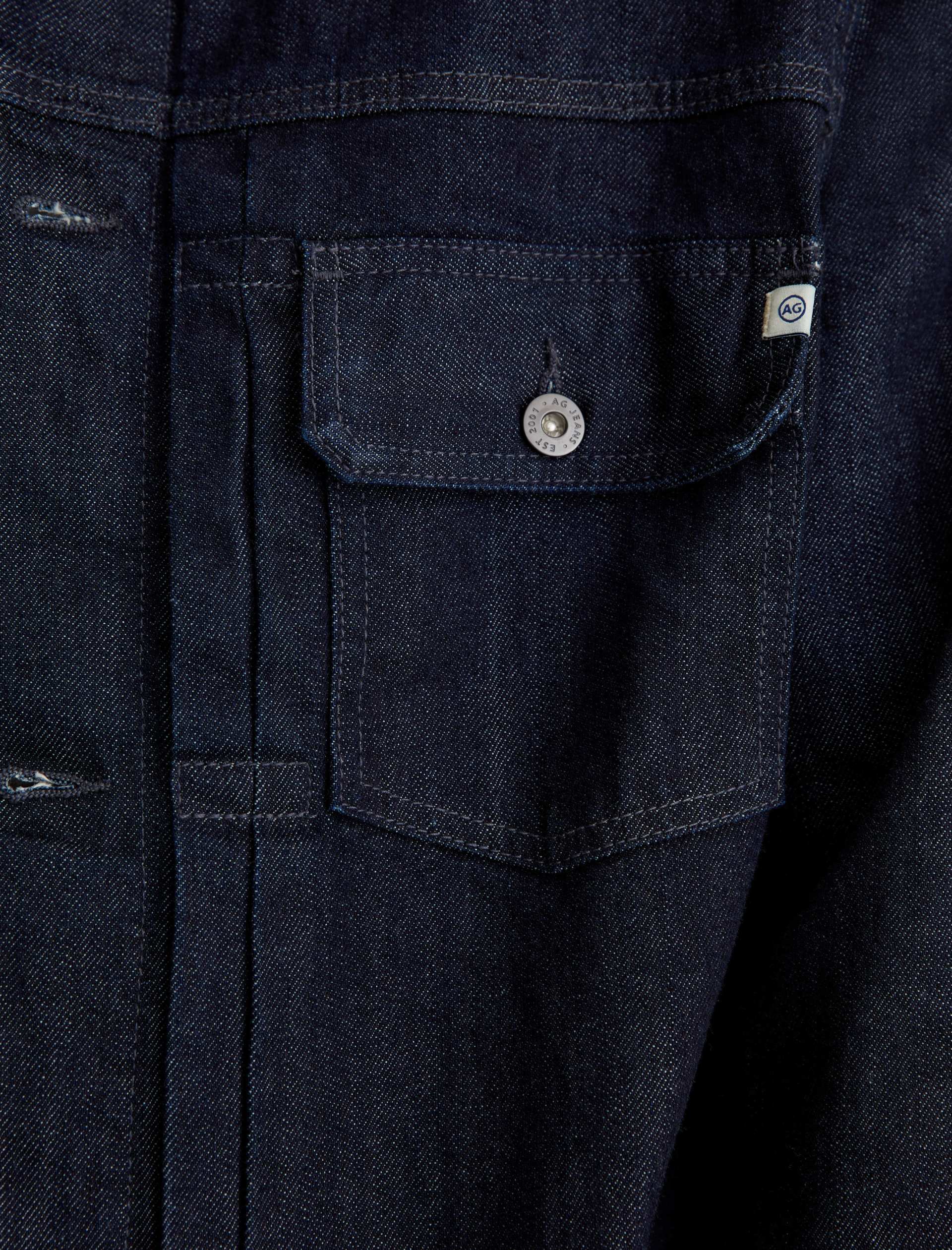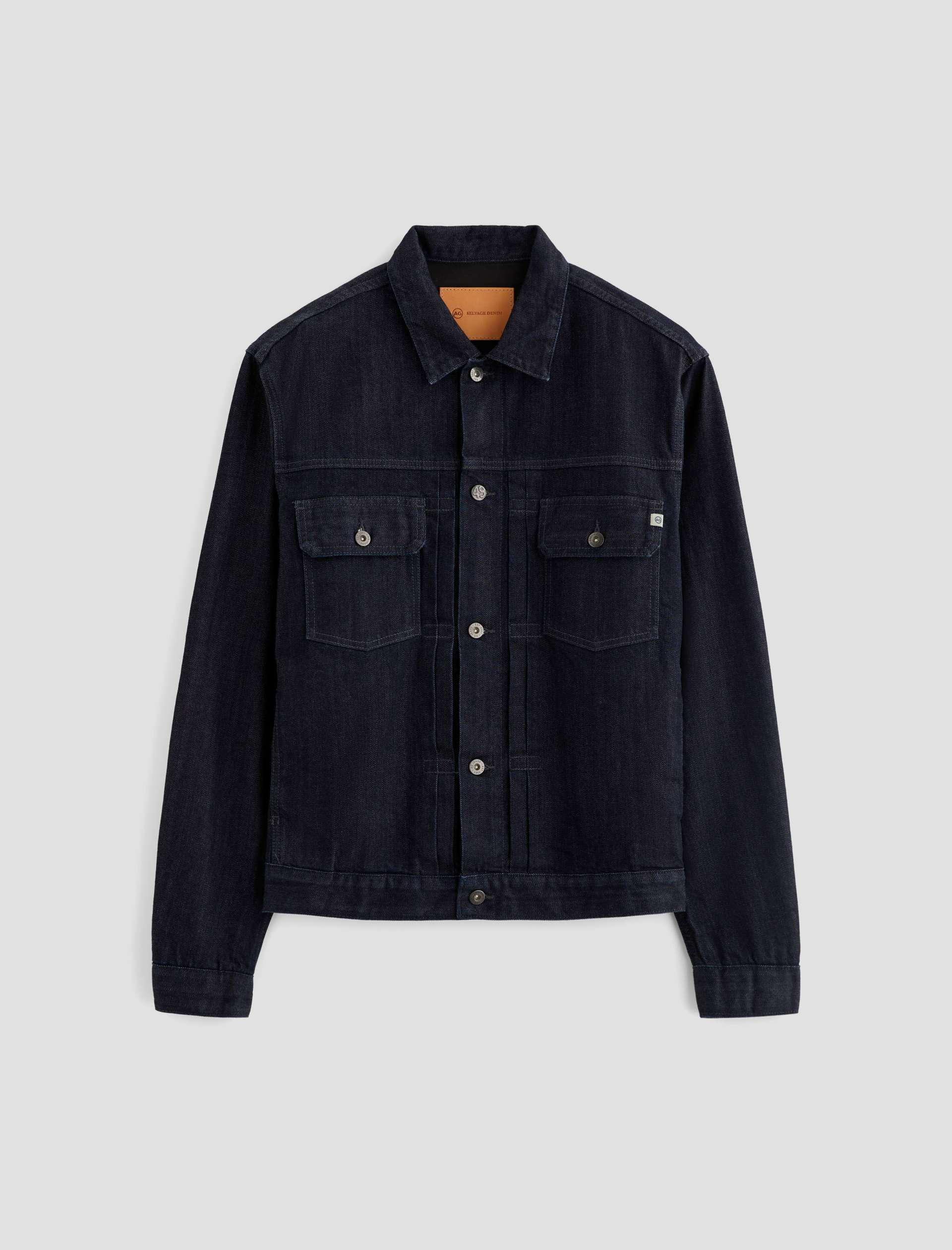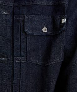 The Sid Selvage Jacket for men is a modern update to the classic trucker style. Designed in 12 oz. Kurashiki Dark Selvage denim from Kurabo Industries in Japan, this pleated trucker jacket comes in a clean indigo shade with tonal stitching. It’s finished with patch pockets, shank buttons, and adjustable tabs at the bac