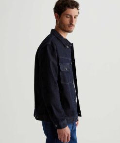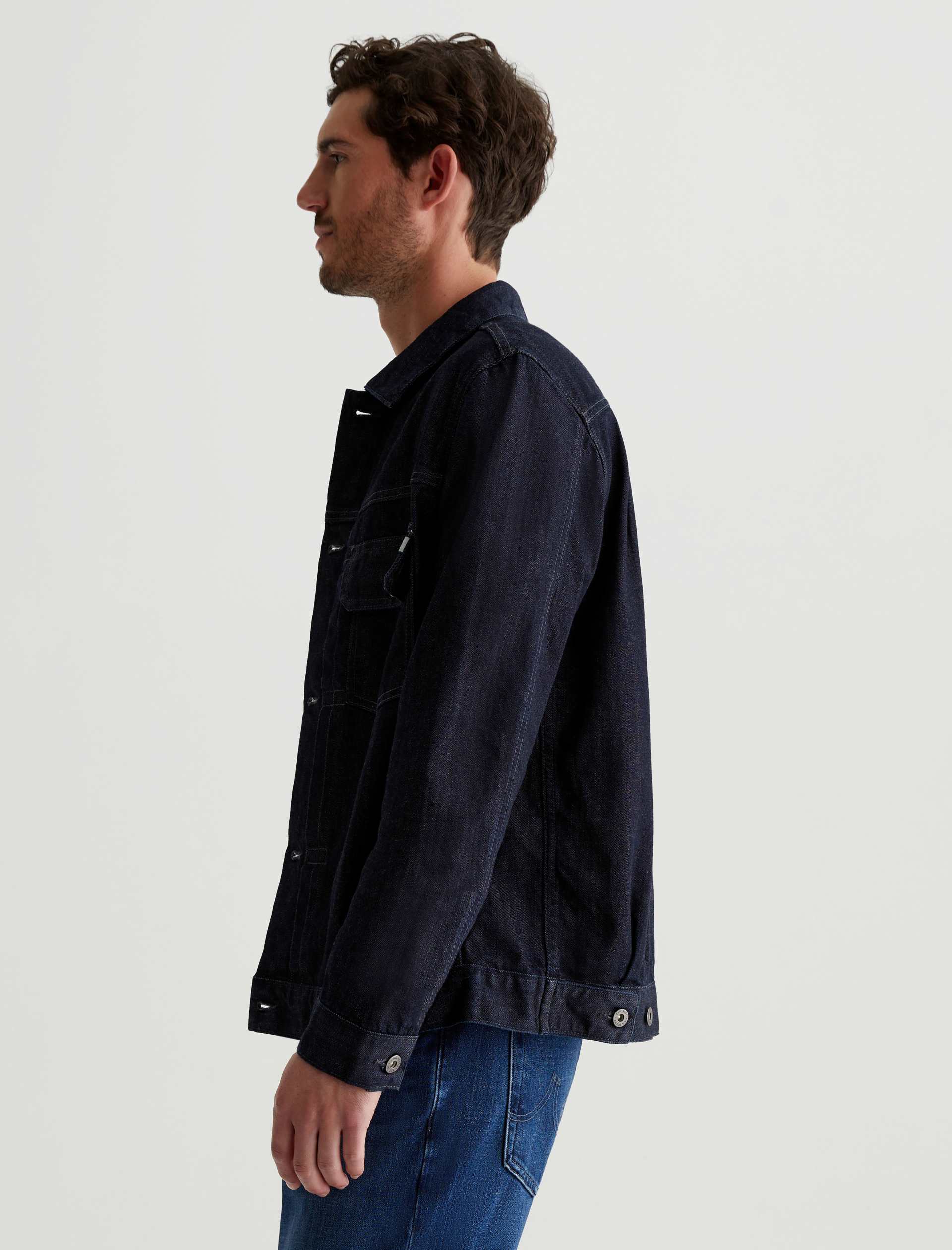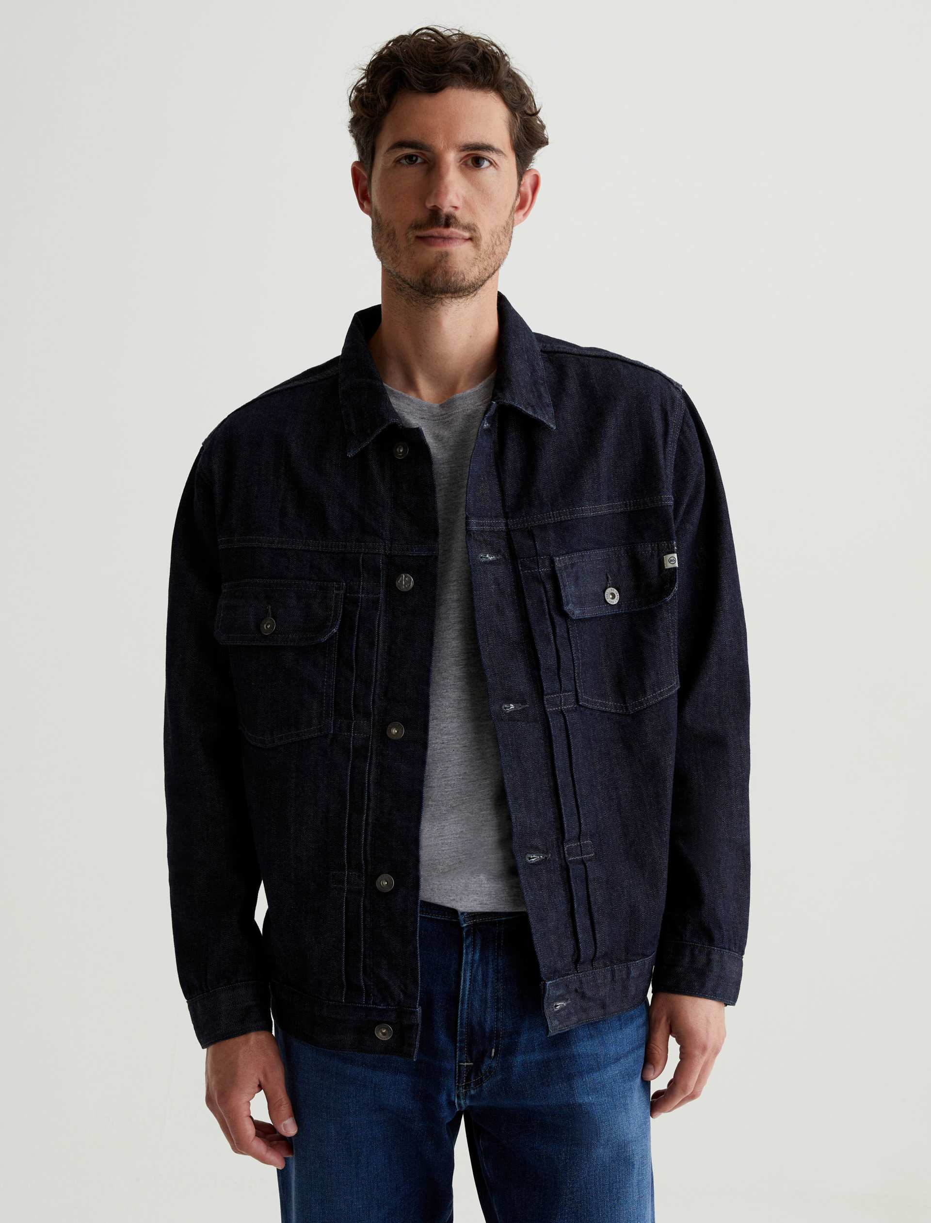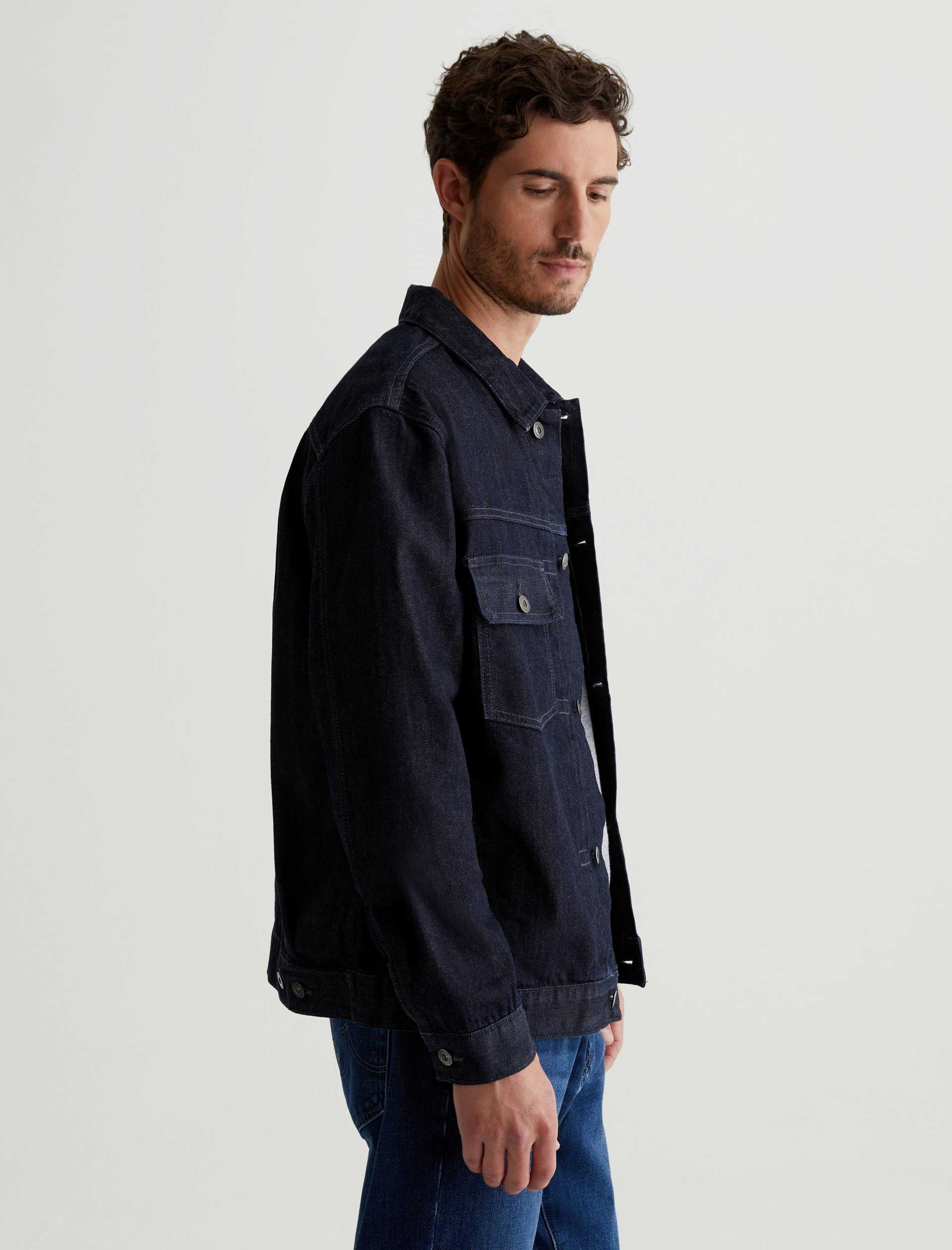The Sid Selvage Jacket for men is a modern update to the classic trucker style. Designed in 12 oz. Kurashiki Dark Selvage denim from Kurabo Industries in Japan, this pleated trucker jacket comes in a clean indigo shade with tonal stitching. It’s finished with patch pockets, shank buttons, and adjustable tabs at the bac