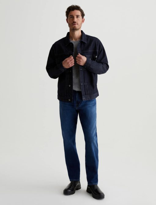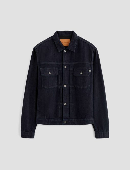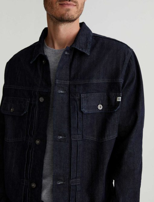 The Sid Selvage Jacket for men is a modern update to the classic trucker style. Designed in 12 oz. Kurashiki Dark Selvage denim from Kurabo Industries in Japan, this pleated trucker jacket comes in a clean indigo shade with tonal stitching. It’s finished with patch pockets, shank buttons, and adjustable tabs at the bac