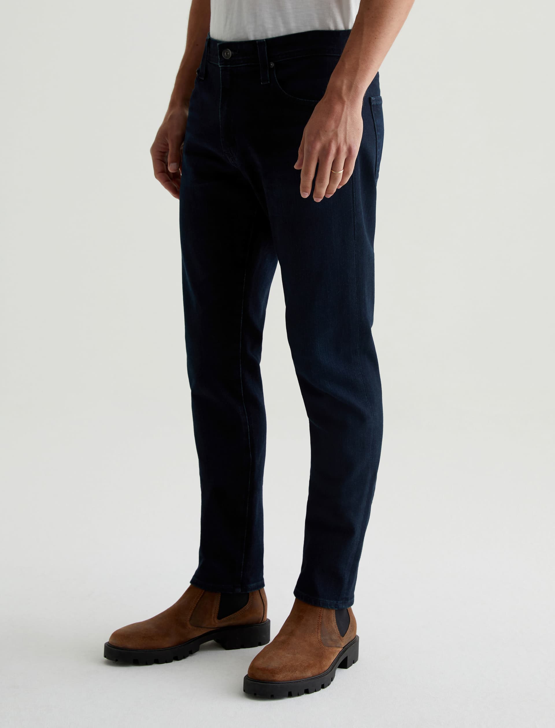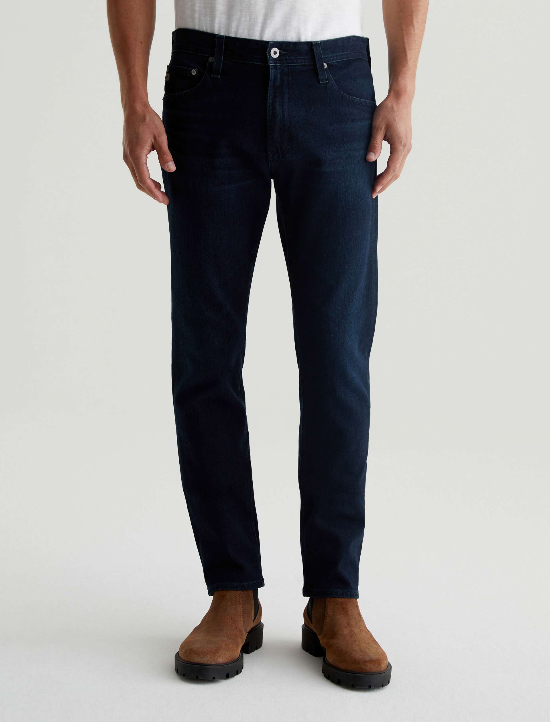The Tellis modern slim jean for men features a fitted upper block and tapered leg opening—complete with a dark wash. This men’s pant is designed in 11.5 oz. 360° Denim.