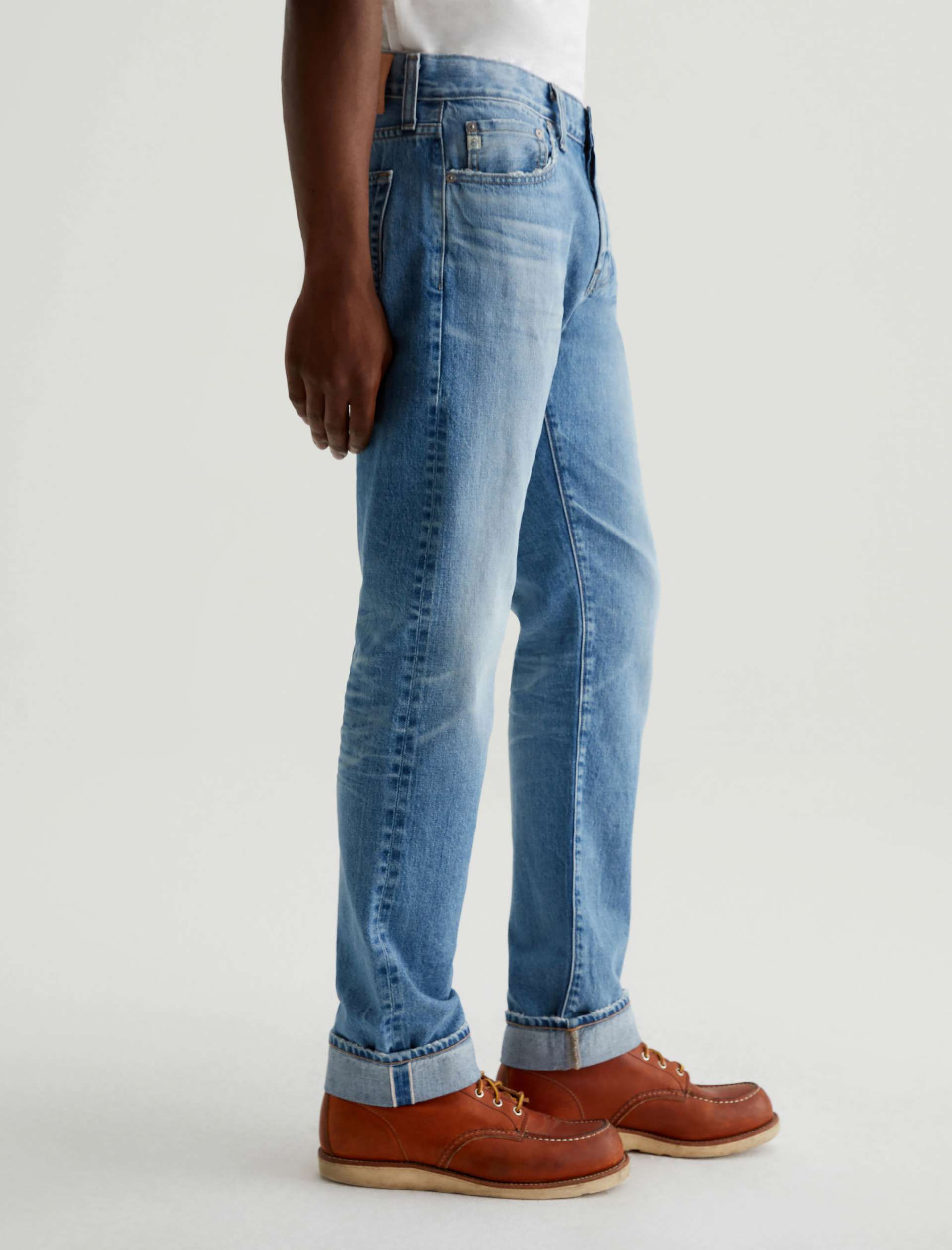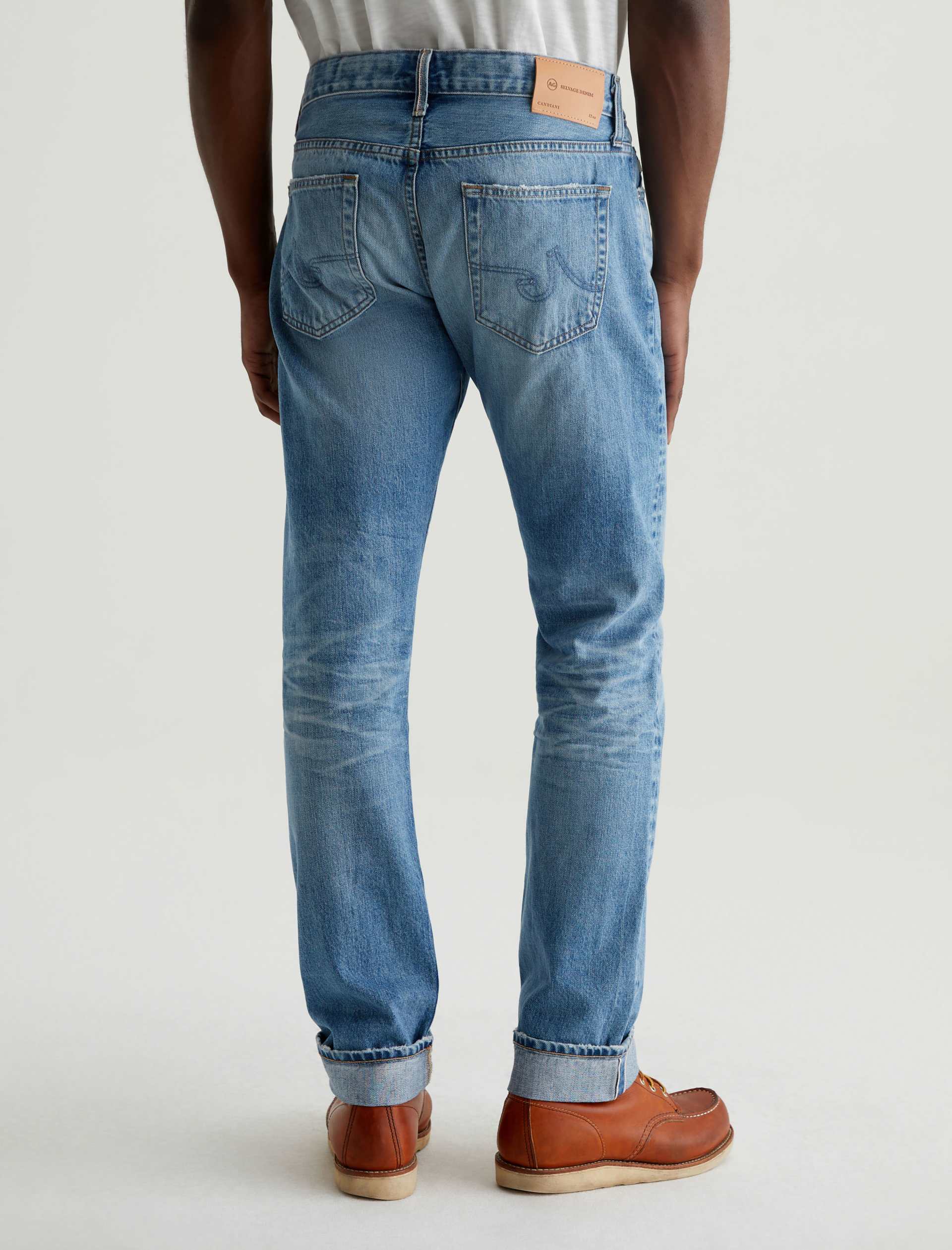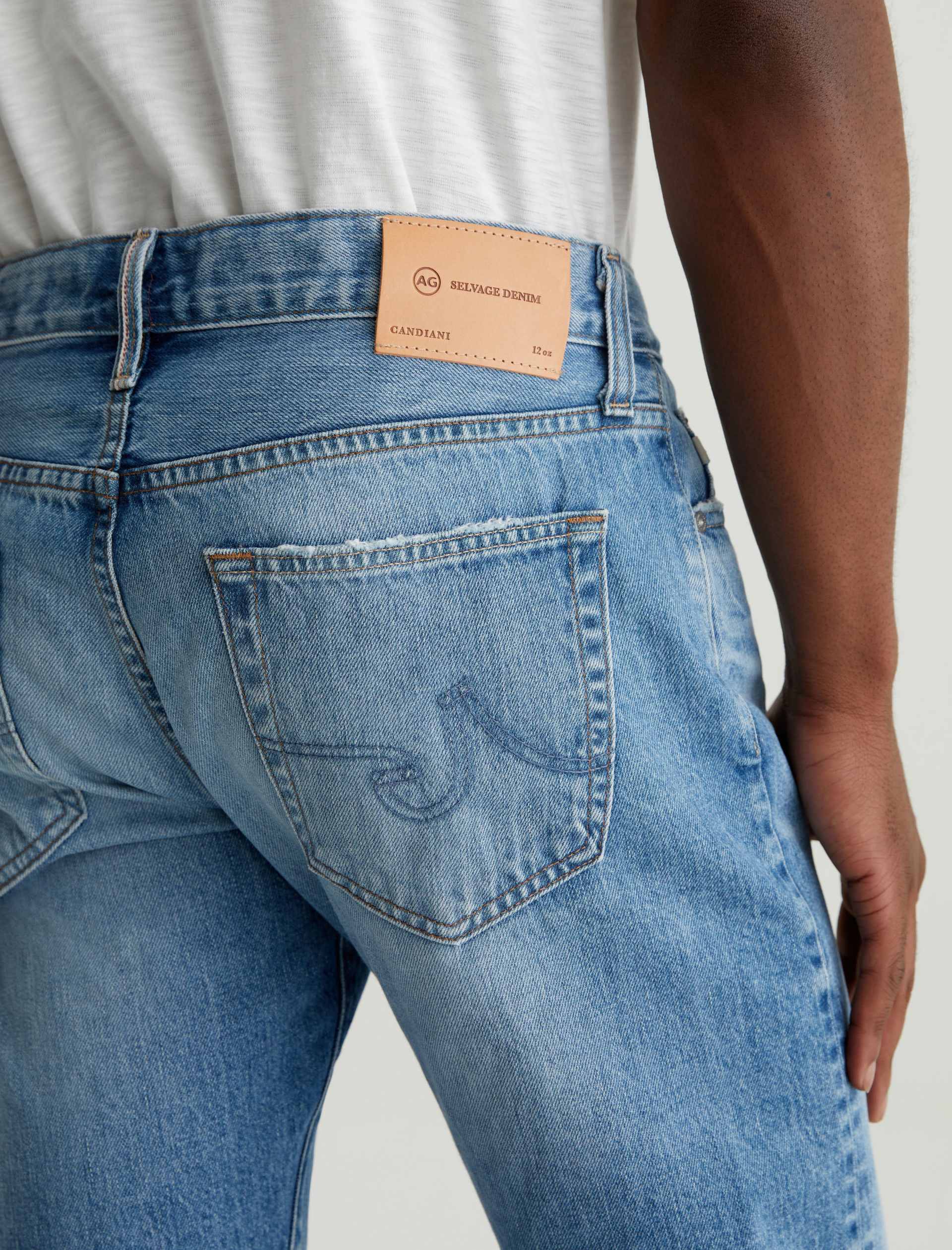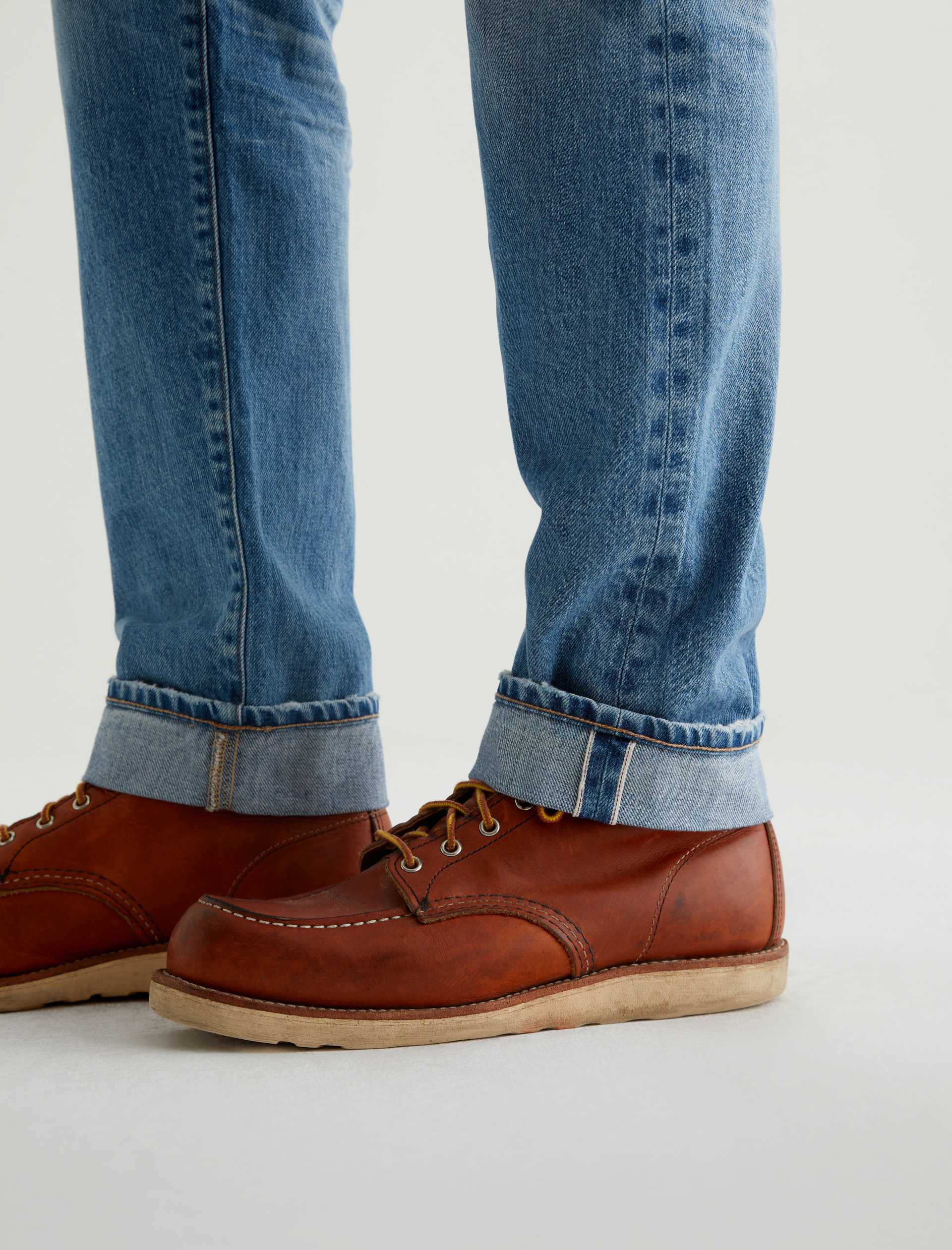 Our Tellis modern slim men’s jean, updated in midweight 12 oz. Robecchetto Rigid Selvage Denim from Italy’s famed Candiani Denim mill. Candiani uses innovative eco-friendly technology to craft this 100% cotton 3×1 right-hand twill denim. Tellis has a fitted upper block and tapered leg openings. These five-pocket slim-f