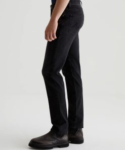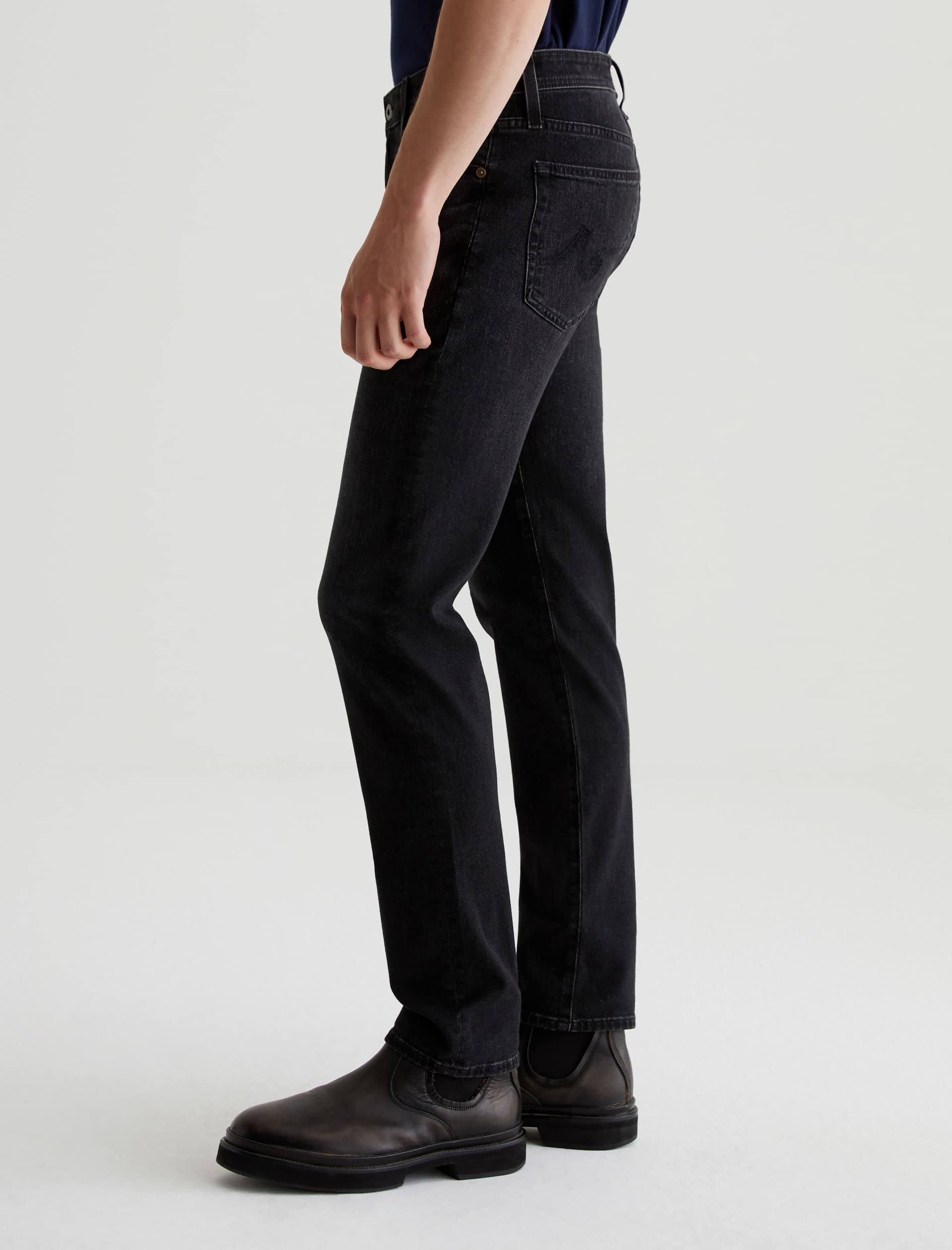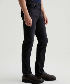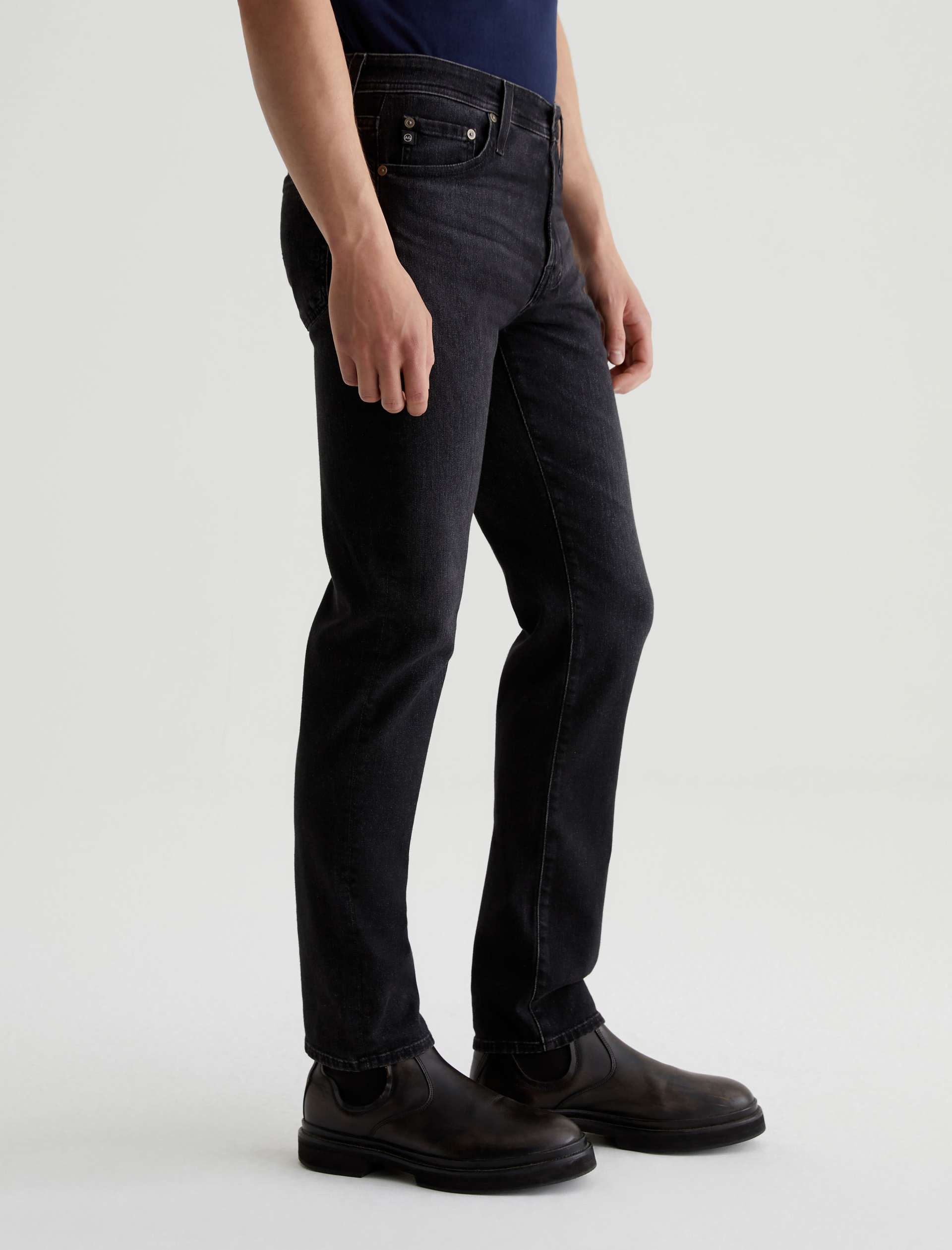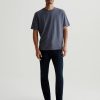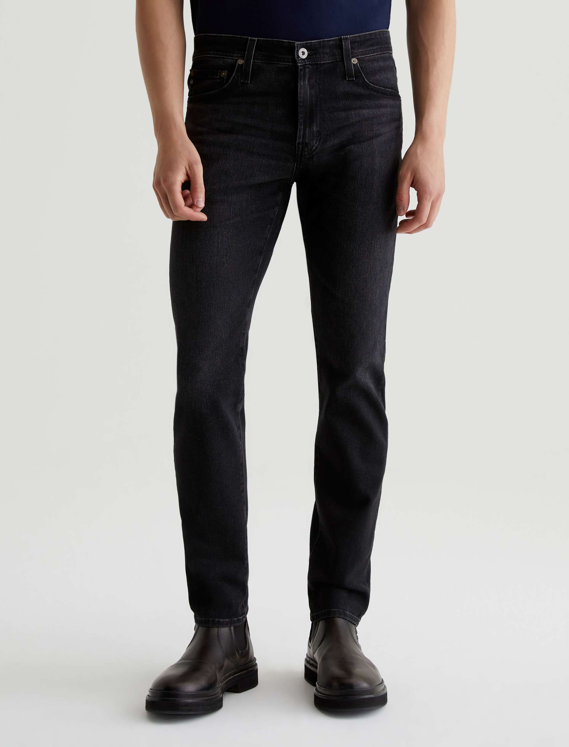 Tellis is a modern slim jean for men, updated here in 9.1 oz. Hypersoft Black denim with added stretch for premium comfort. Subtle fading and whiskering give these slim black jeans a naturally worn-in character. The five-pocket style has a fitted upper block and a tapered leg opening.
