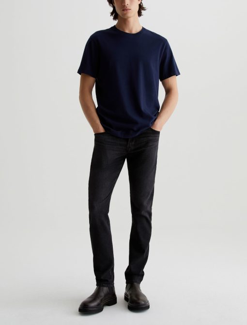 Tellis is a modern slim jean for men, updated here in 9.1 oz. Hypersoft Black denim with added stretch for premium comfort. Subtle fading and whiskering give these slim black jeans a naturally worn-in character. The five-pocket style has a fitted upper block and a tapered leg opening.