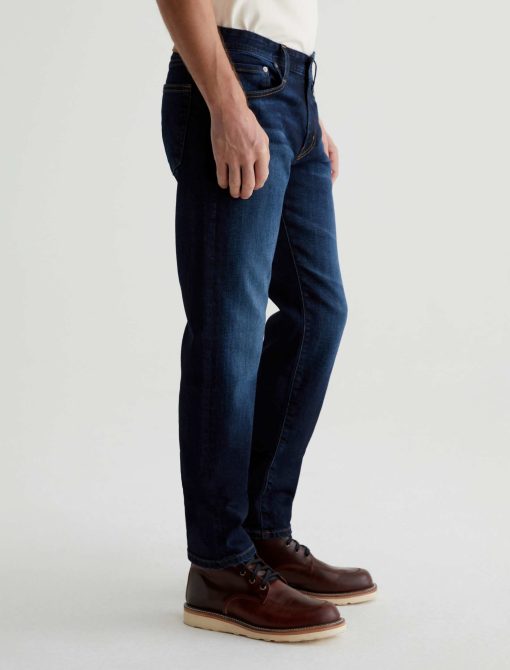 The Tellis modern slim jean for men features a classic dark indigo wash with faded details and marigold stitching. Tellis has a fitted upper block and tapered leg opening. These five-pocket men’s jeans are designed in 11.75 oz. Union Dark Denim with comfort stretch.