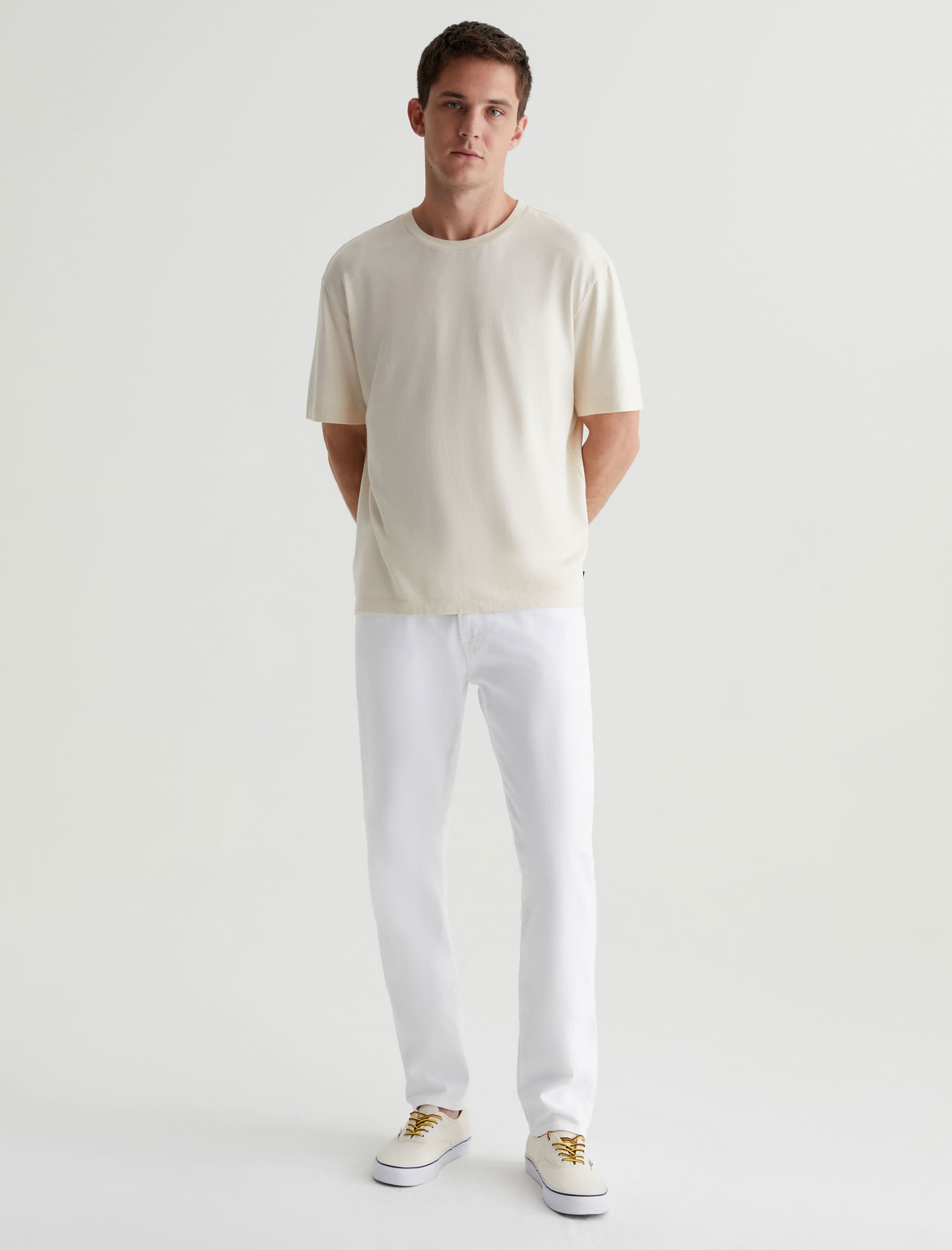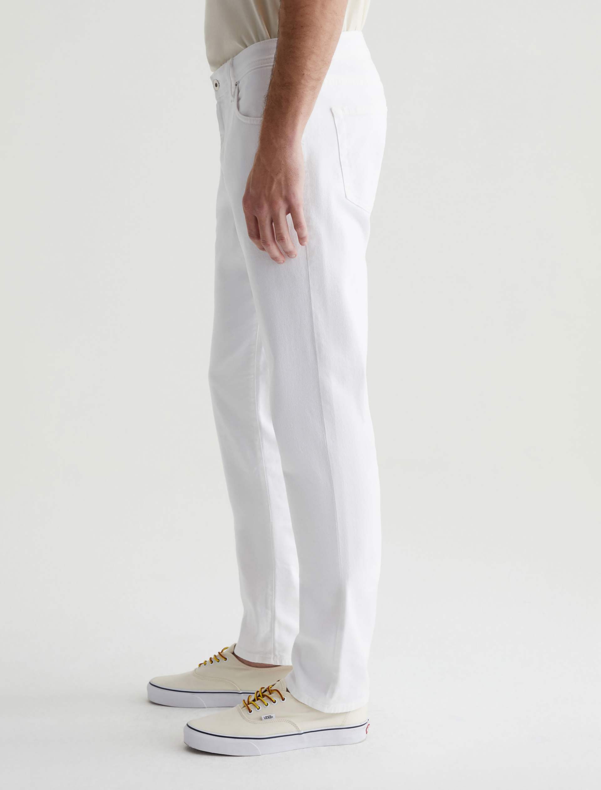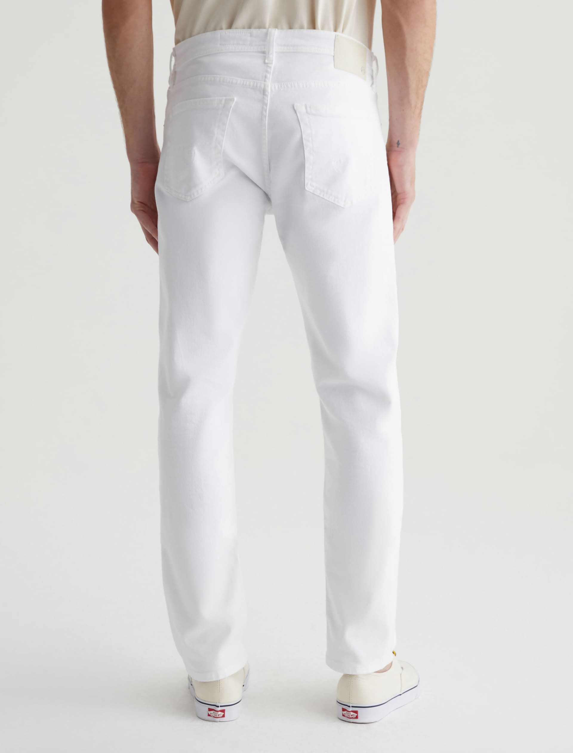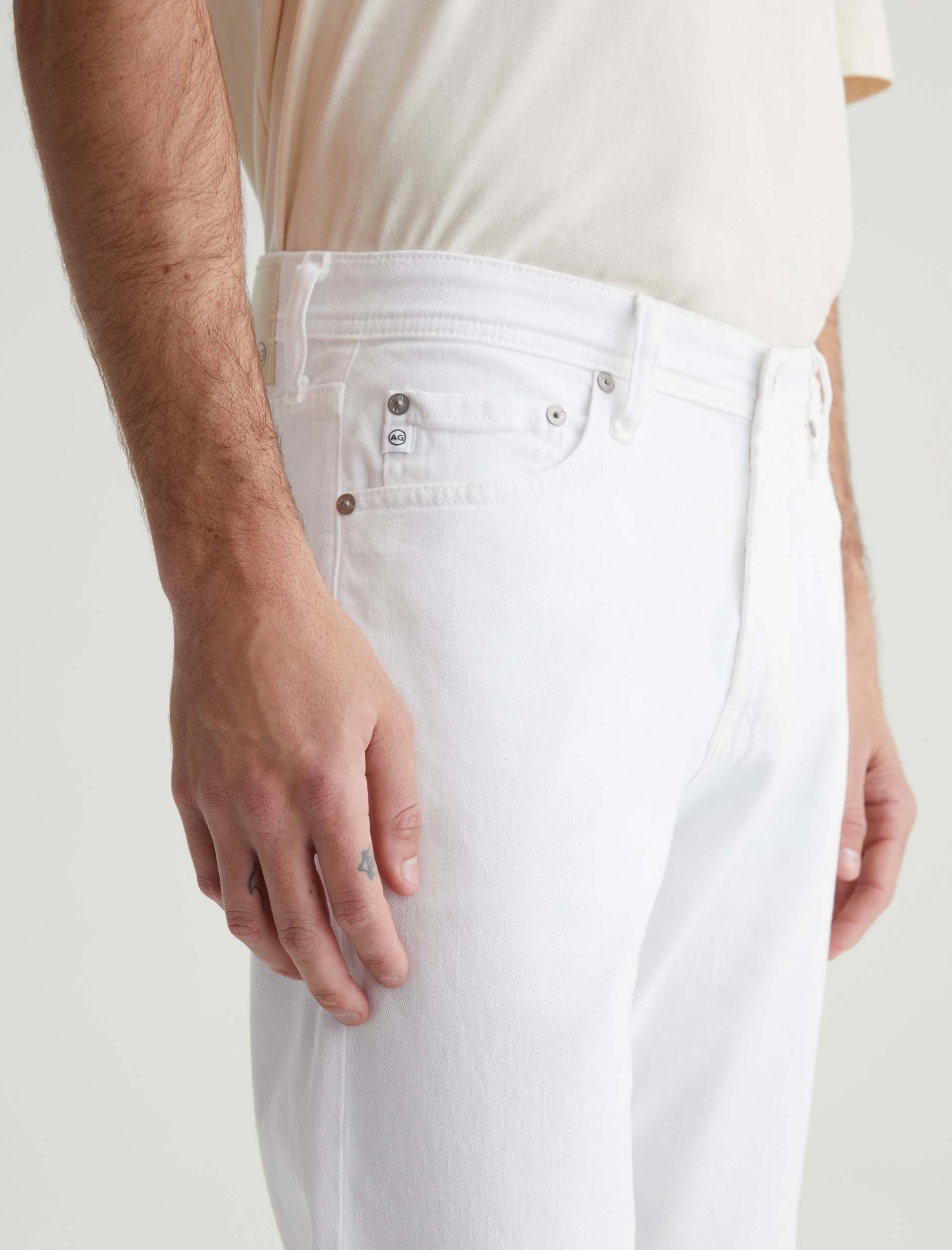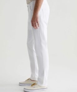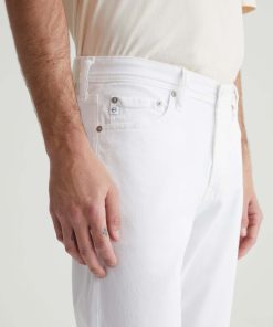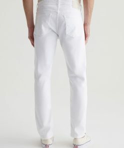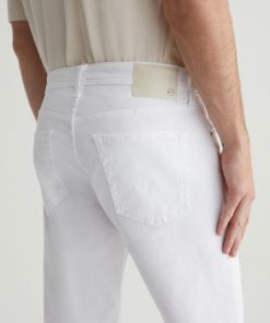 Tellis is a modern slim fit with a fitted upper block and a tapered leg opening. Made from AG Cloud Soft Denim™ in white, these slim-cut men’s jeans feature special left-hand twill construction that allows the yarns to gently relax and untwist for a supple feel that gets softer with every wear. It’s blended with dual-e