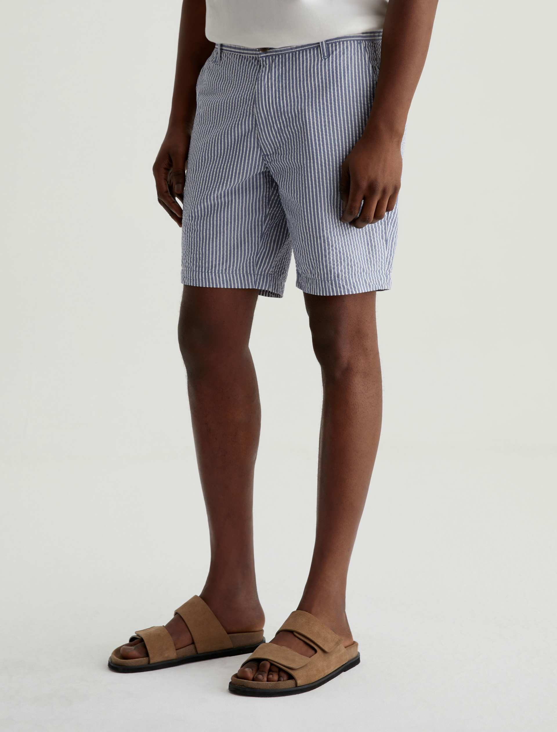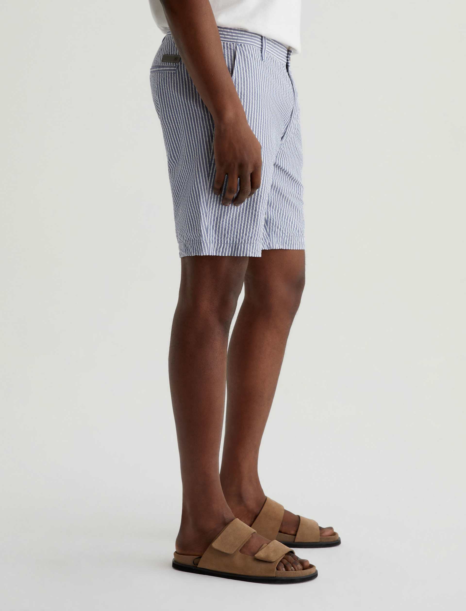 Made from striped cotton seersucker, the Wanderer Short is a timeless addition to your warm-weather wardrobe. These trouser shorts are tailored for a slim fit with tidy pockets and slightly tapered legs.