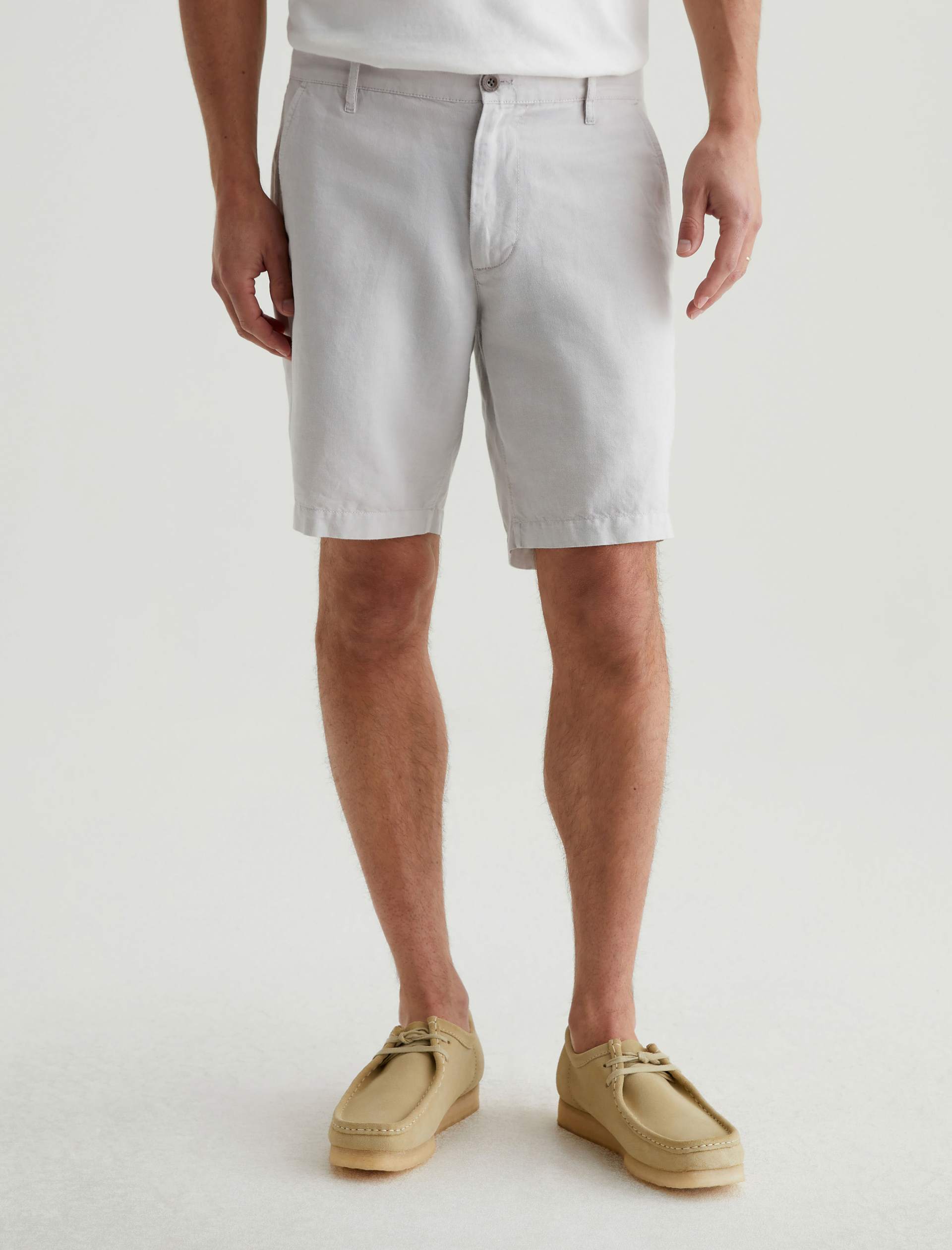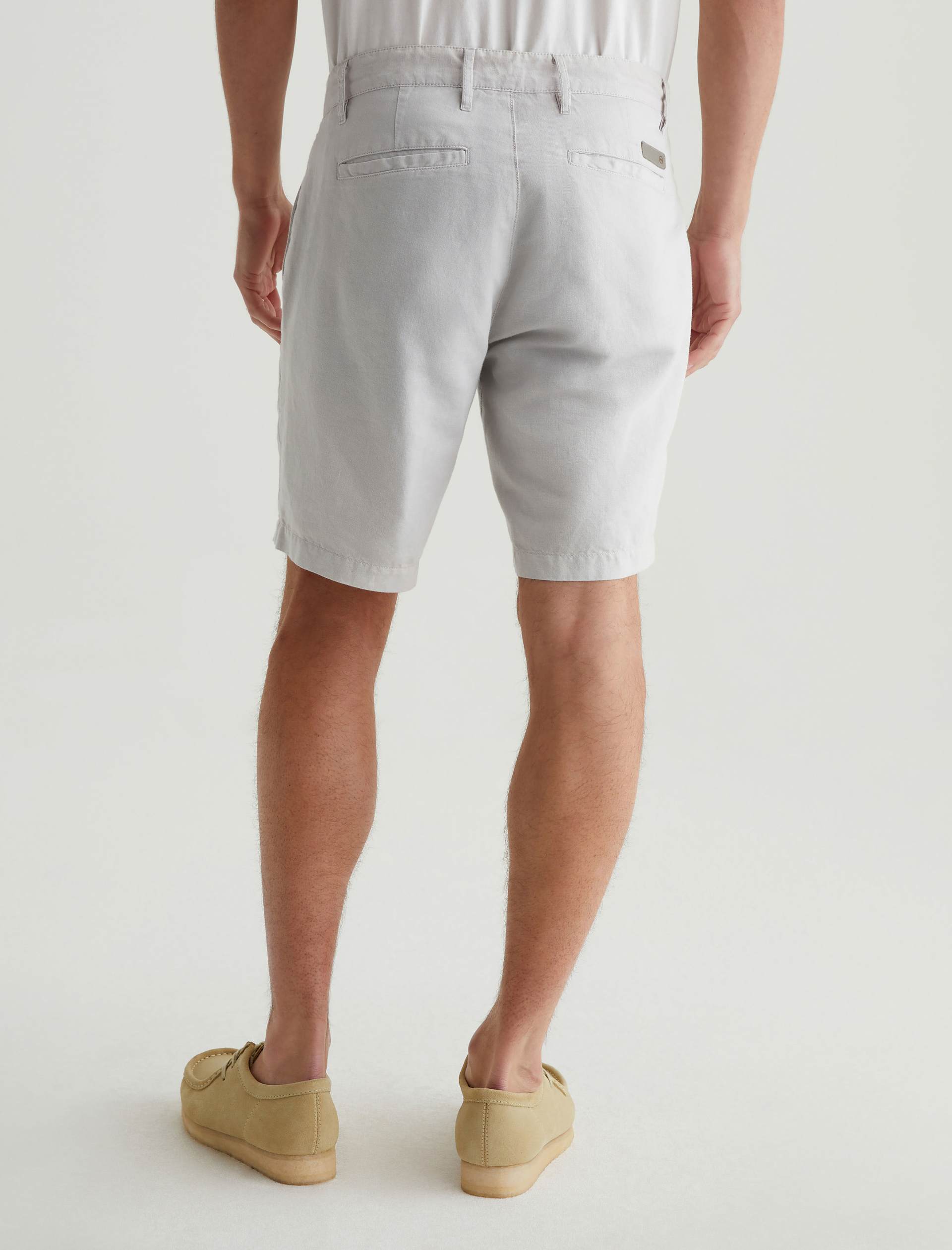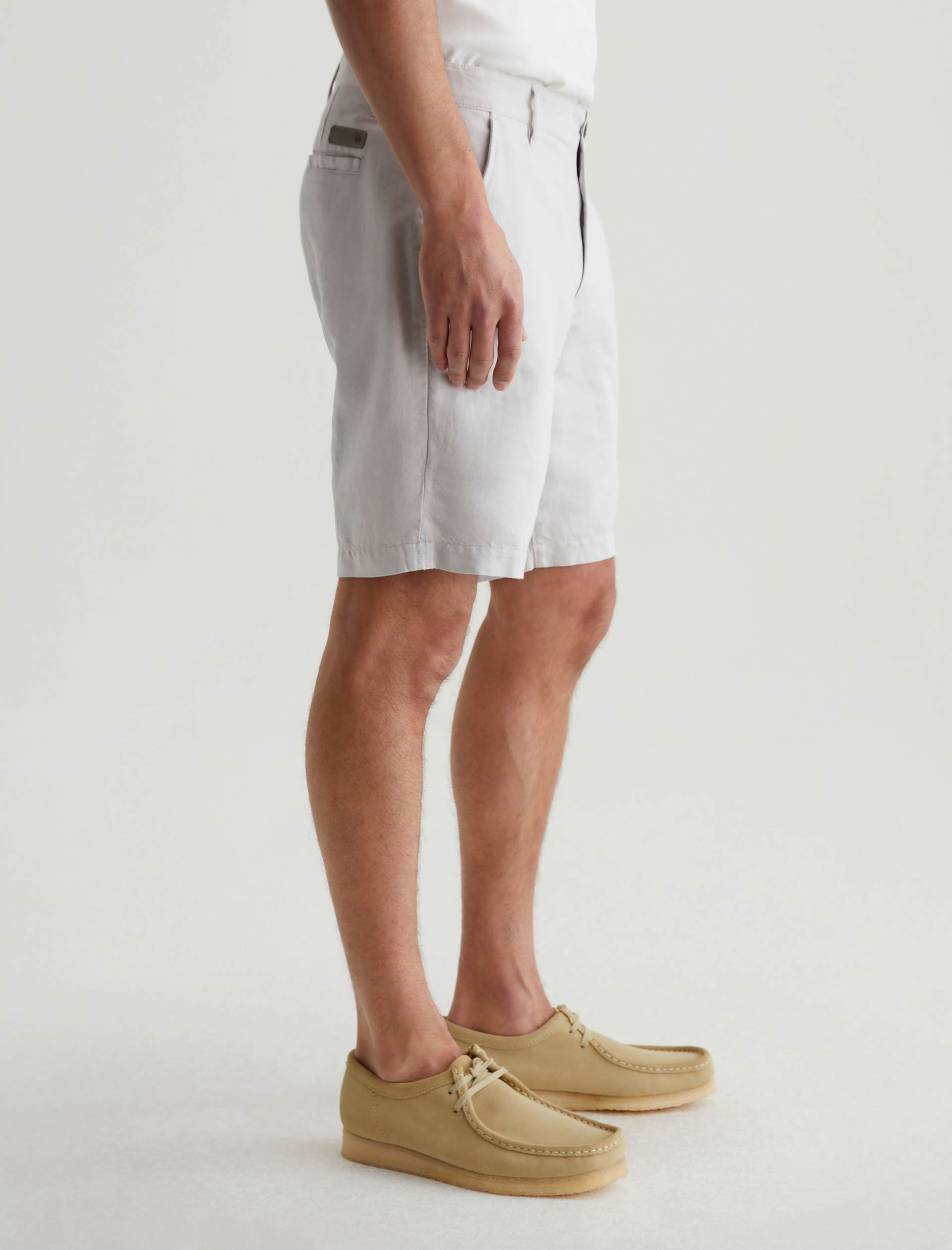A breathable linen blend makes our Wanderer Short perfect for getting dressed in balmy climates. Featuring a classic look and pale grey shade, these trouser shorts are tailored to slim fit with slightly tapered legs.