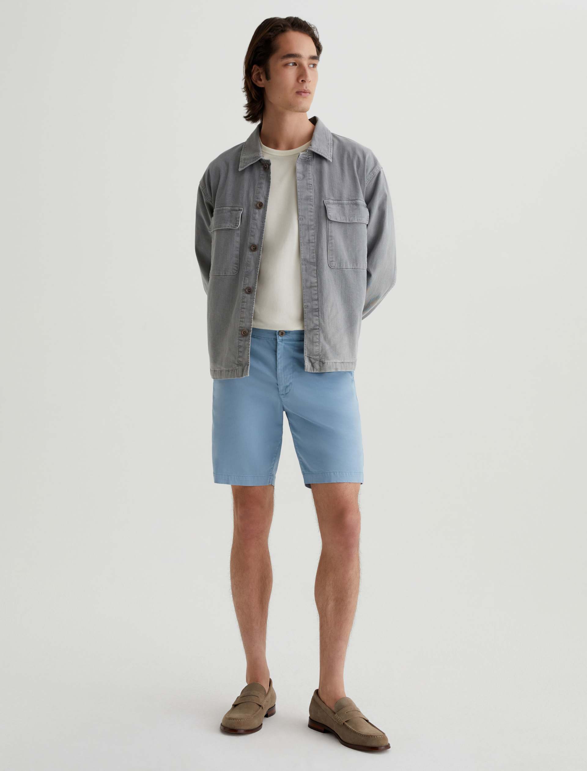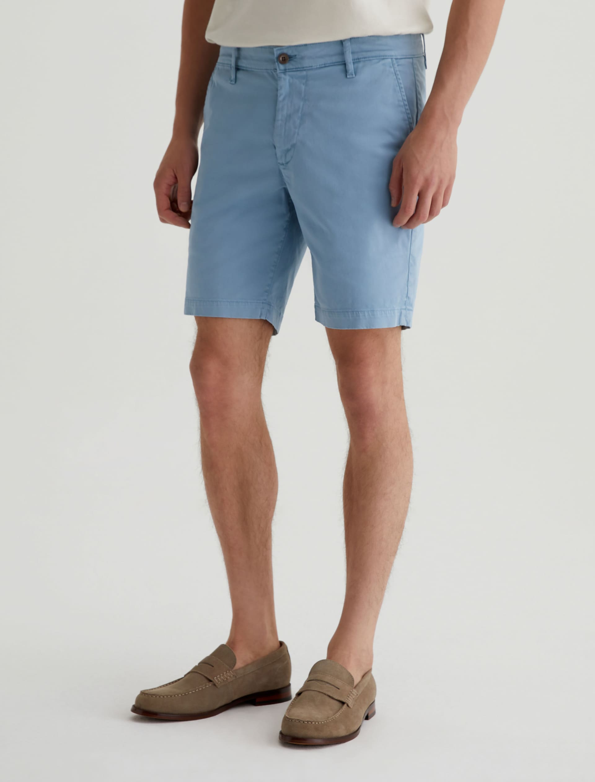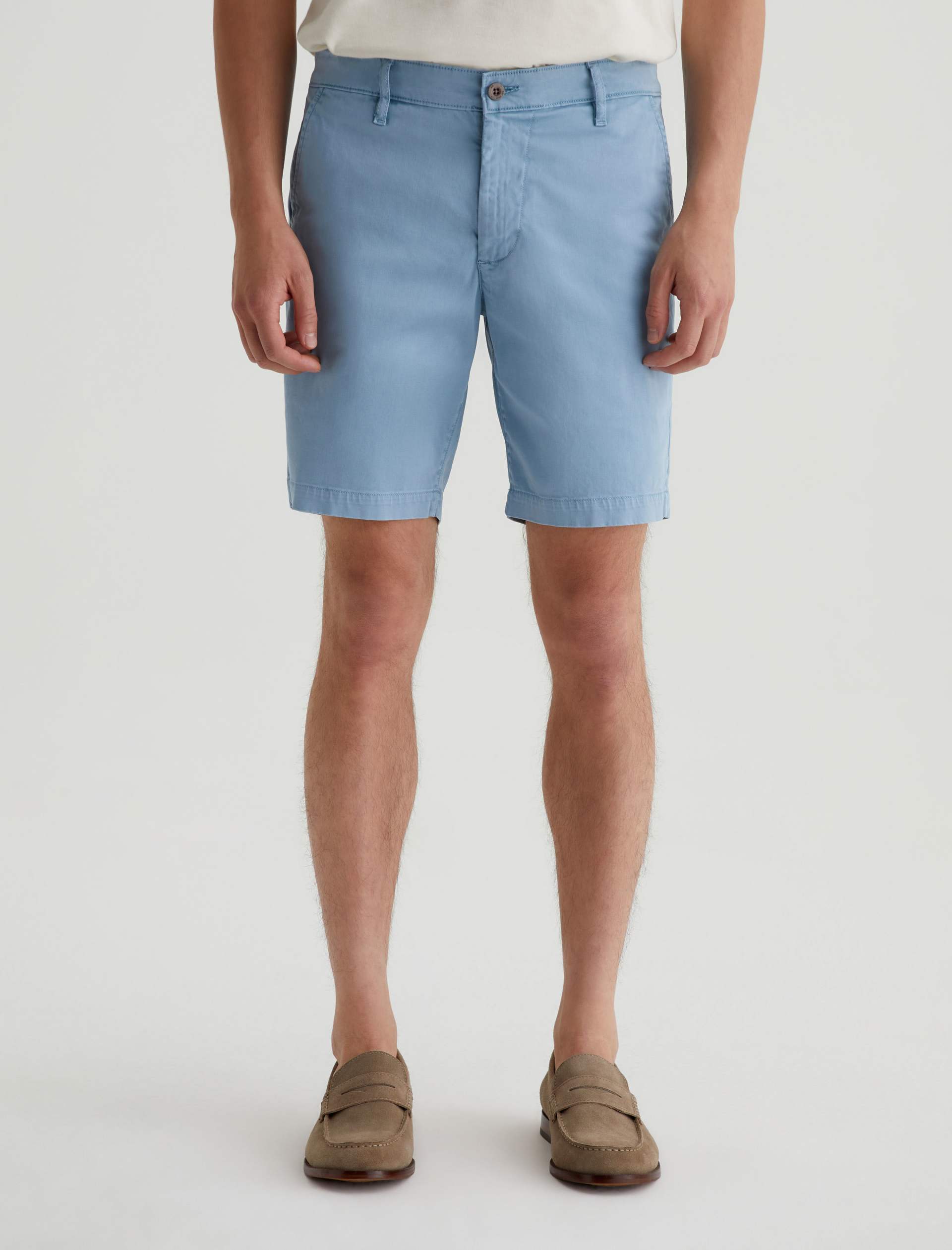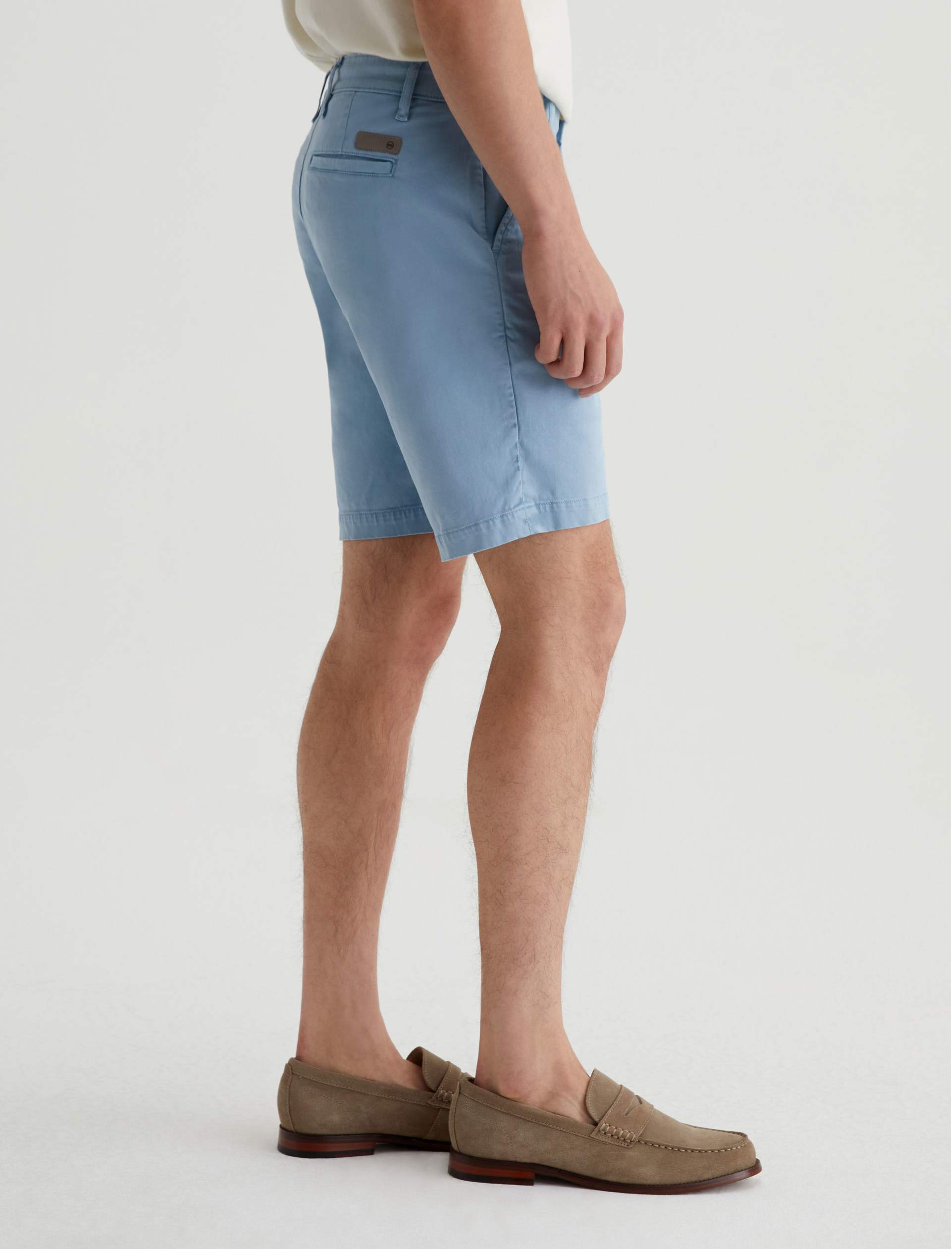 Our Wanderer Short for men has a clean trouser look in a slim fit with slightly tapered legs. Sulfur-dyed to a subdued blue shade, these men’s shorts are crafted from lightweight and sumptuous 7.4 oz. Brighton Sueded Sateen with premium stretch.