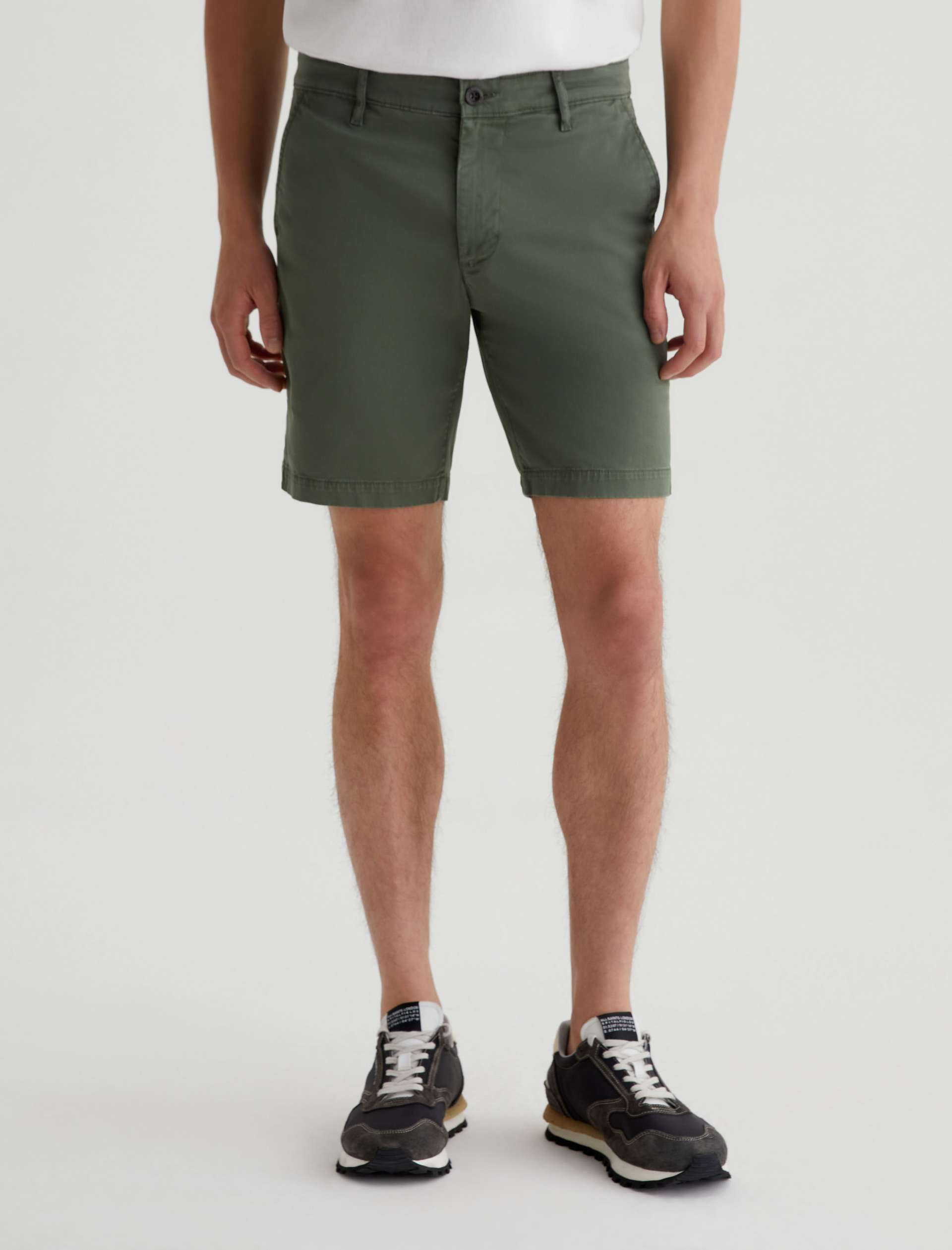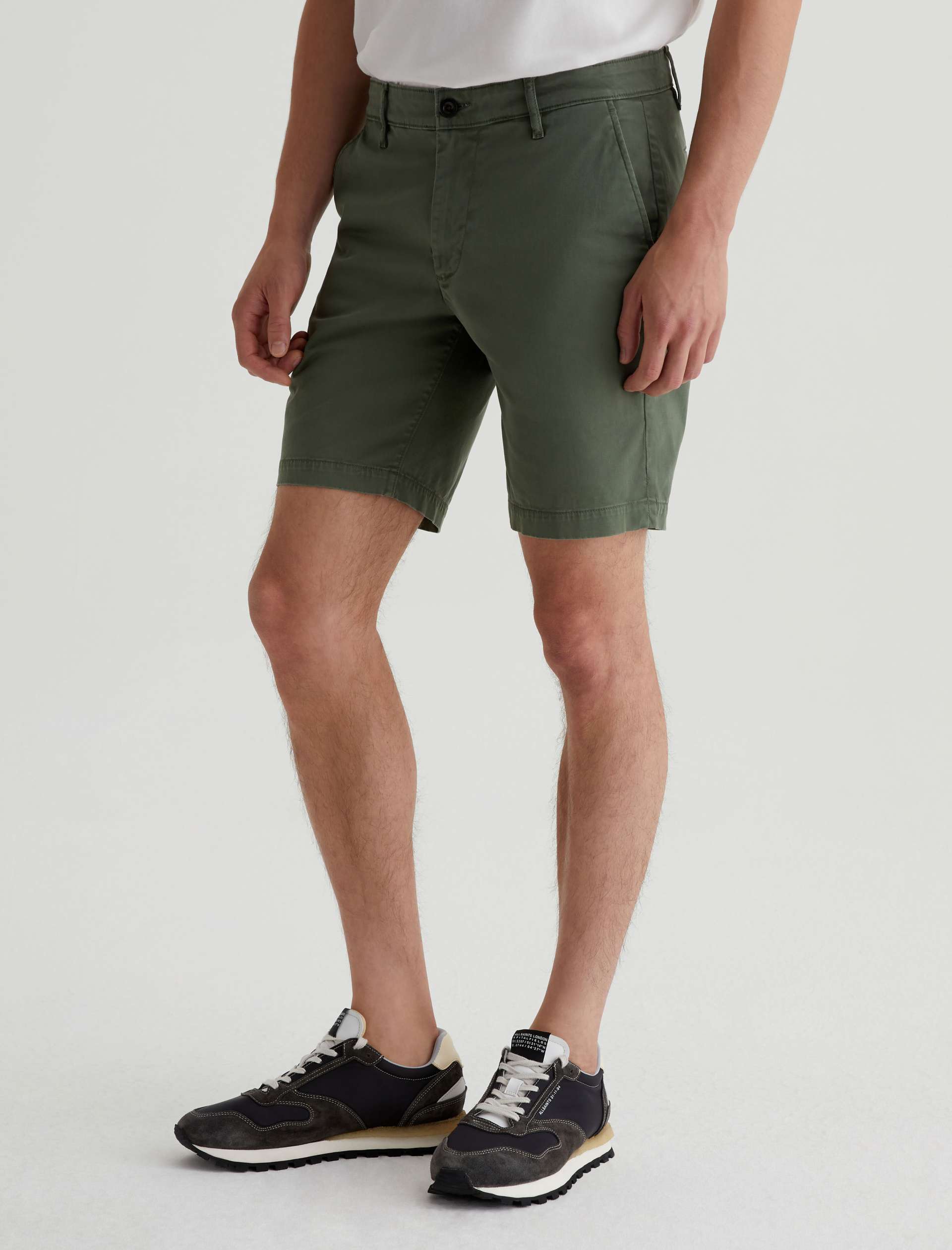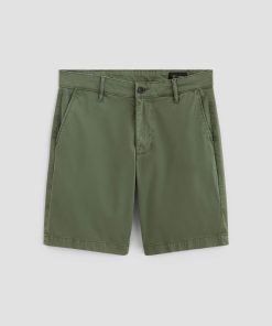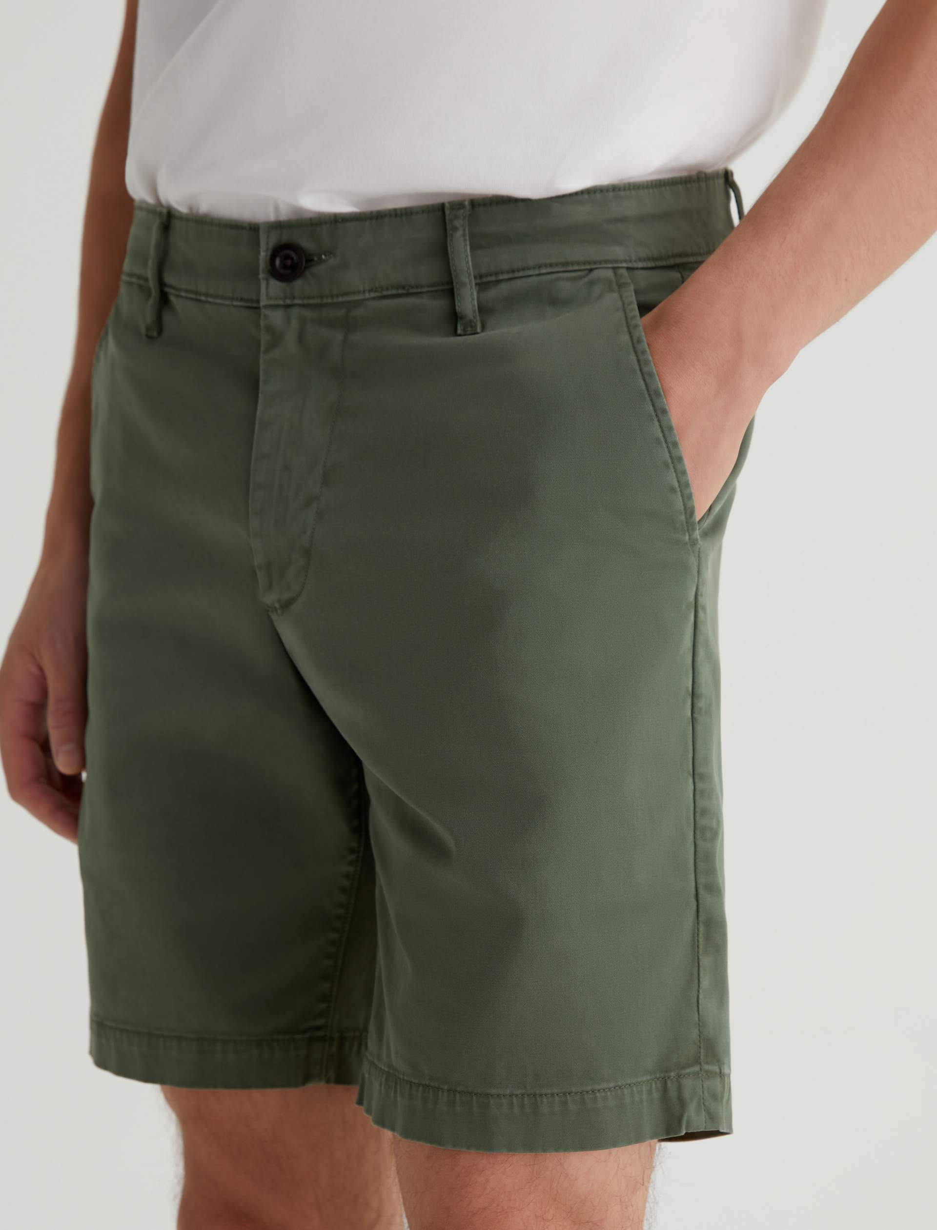 Our Wanderer Short for men has a clean trouser look in a slim fit with slightly tapered legs. Featuring a sulfur-dyed green shade, these men’s shorts are crafted from lightweight and sumptuous 7.4 oz. Brighton Sueded Sateen with premium stretch.