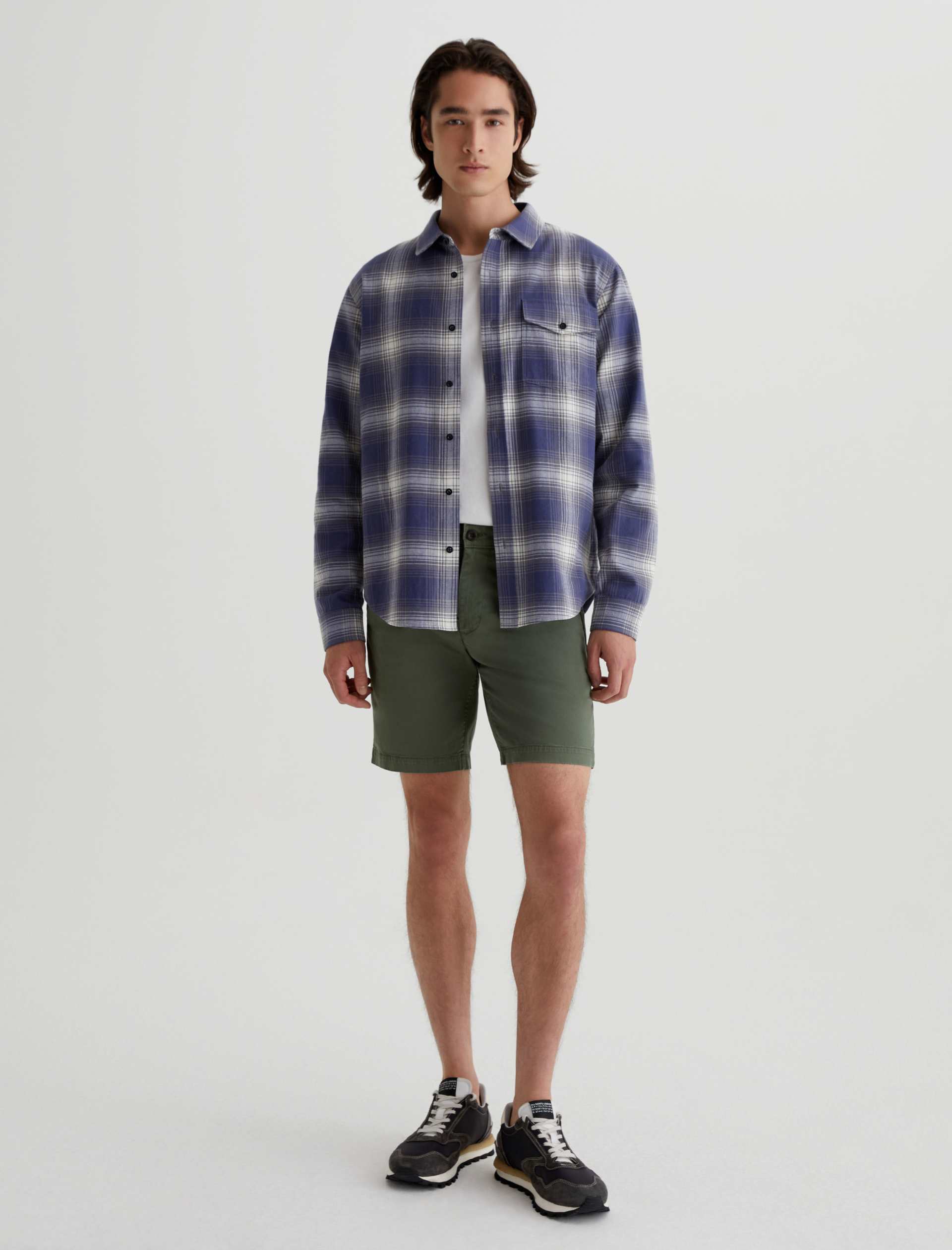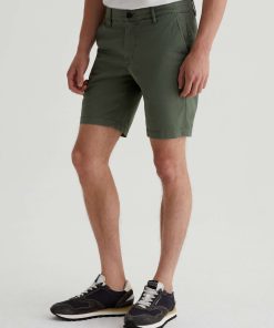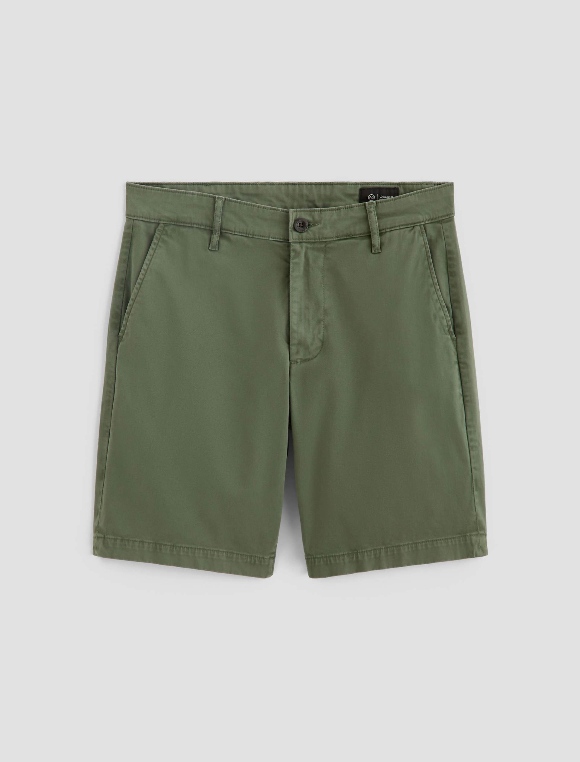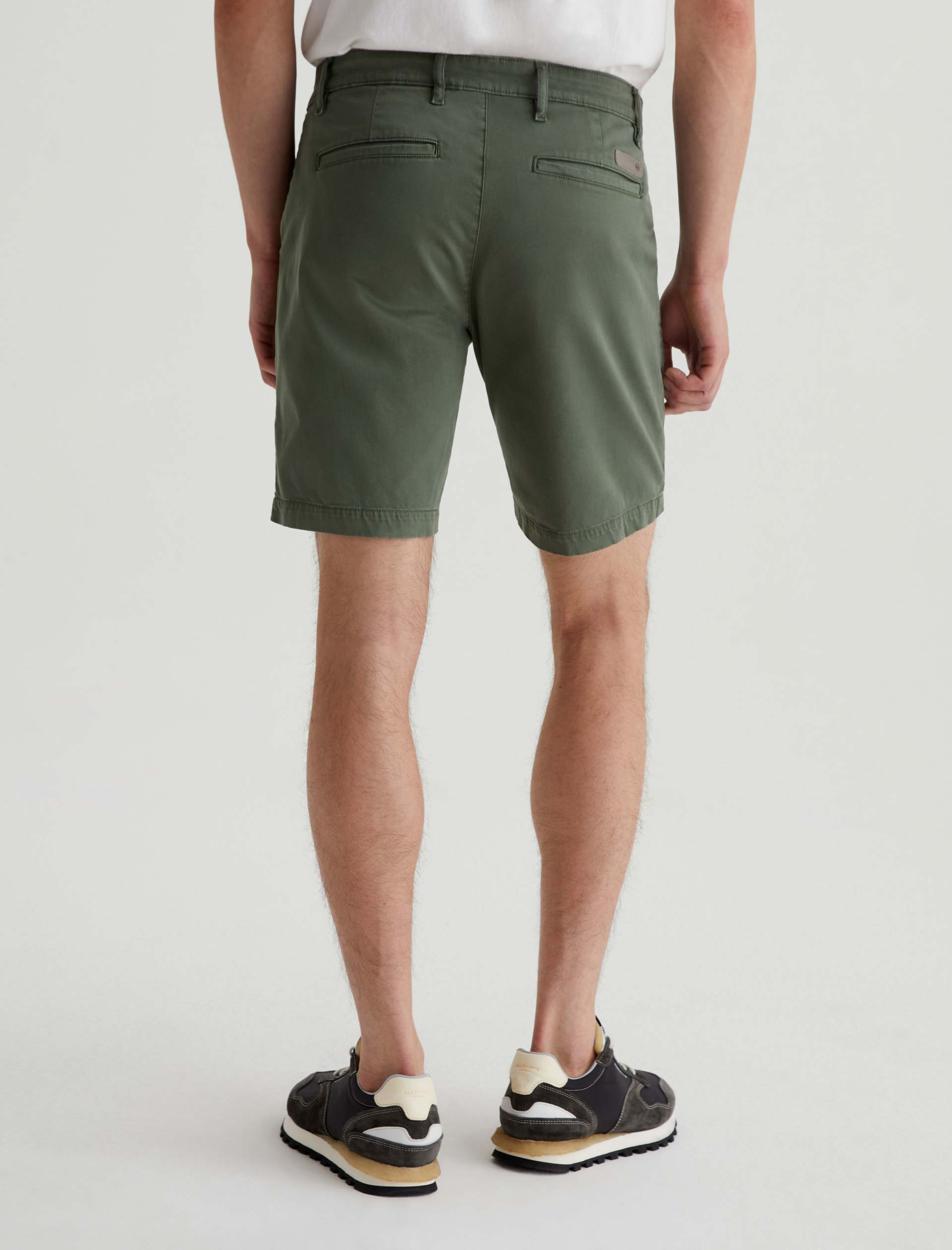 Our Wanderer Short for men has a clean trouser look in a slim fit with slightly tapered legs. Featuring a sulfur-dyed green shade, these men’s shorts are crafted from lightweight and sumptuous 7.4 oz. Brighton Sueded Sateen with premium stretch.