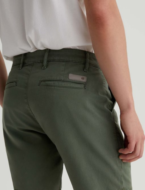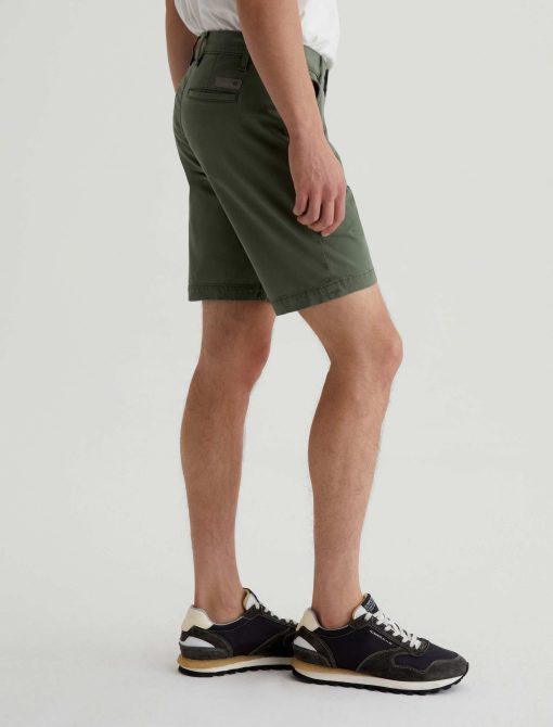 Our Wanderer Short for men has a clean trouser look in a slim fit with slightly tapered legs. Featuring a sulfur-dyed green shade, these men’s shorts are crafted from lightweight and sumptuous 7.4 oz. Brighton Sueded Sateen with premium stretch.