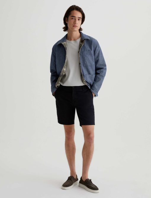 Our Wanderer Short for men has a clean trouser look in a slim fit with slightly tapered legs. Featuring a saturated shade of black, these men’s shorts are crafted from lightweight and sumptuous 7.4 oz. Brighton Sueded Sateen with premium stretch.