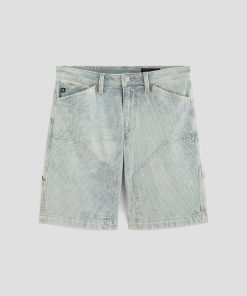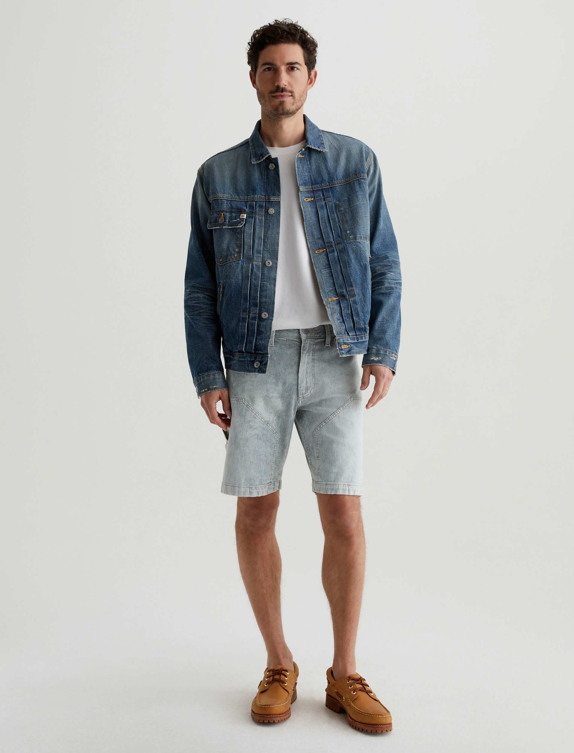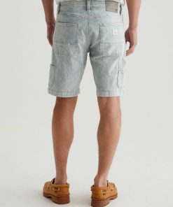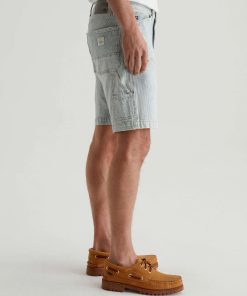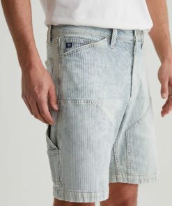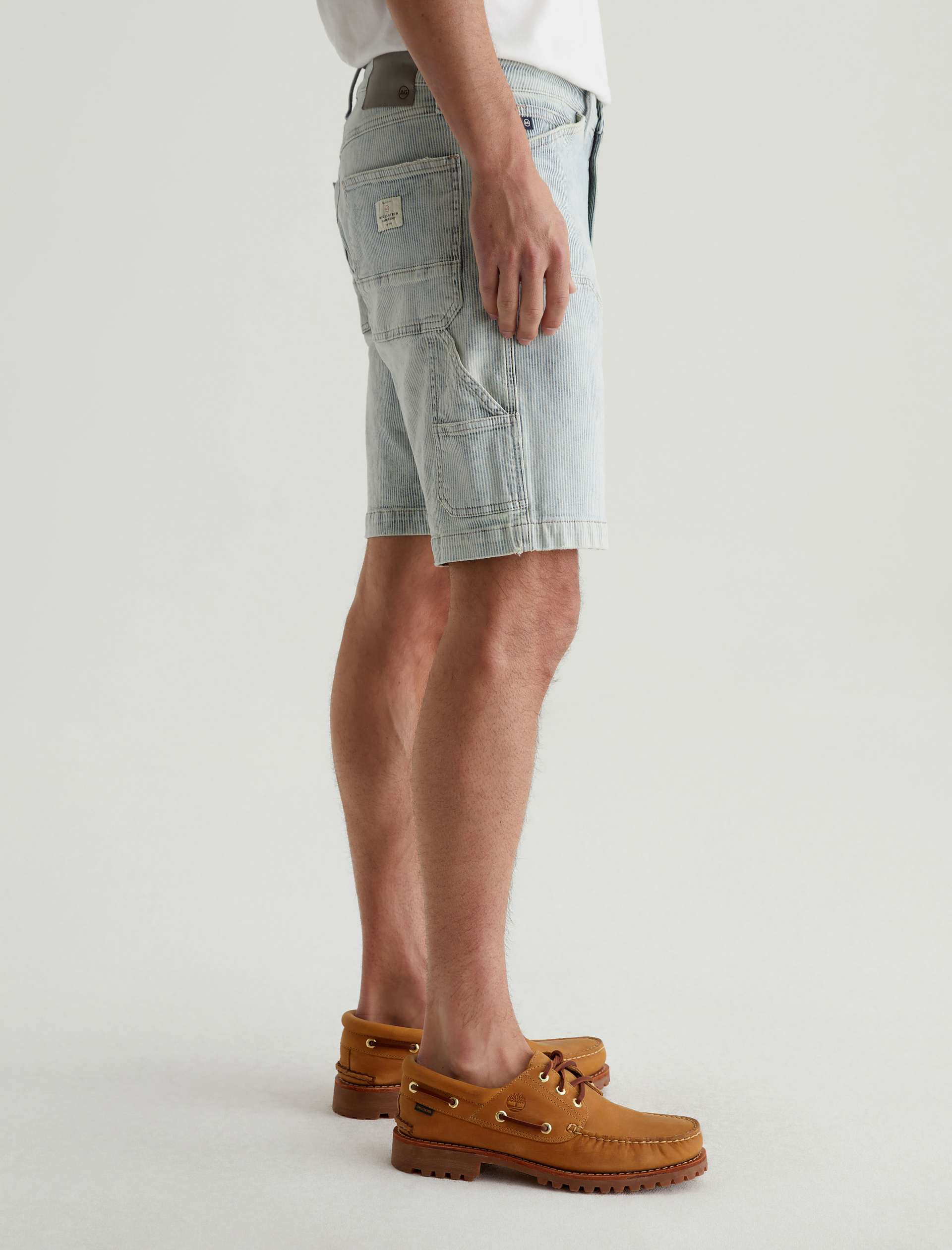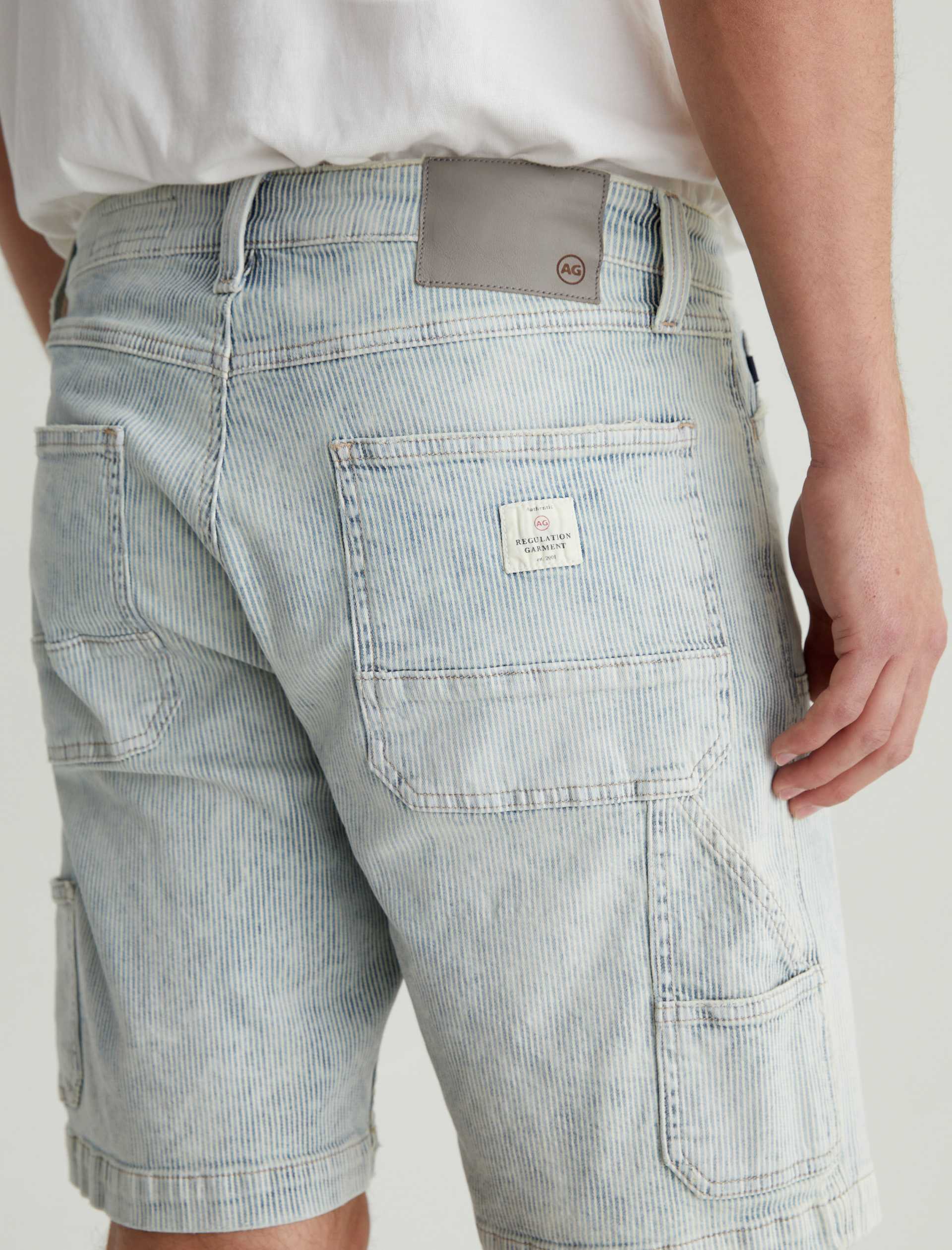 Our Wells Carpenter Short has a coastal workwear aesthetic in sun-bleached indigo stripes with a subtle vintage tint. Cut from lightweight stretch-blend cotton, these men’s shorts offer a relaxed fit with paneled legs and a dual tool pocket.