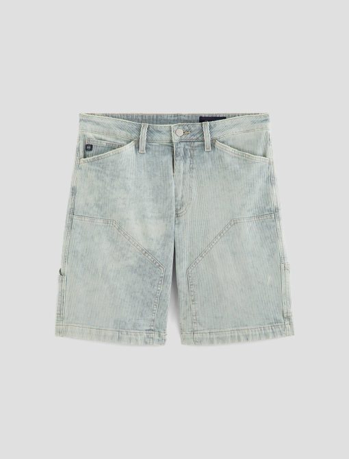 Our Wells Carpenter Short has a coastal workwear aesthetic in sun-bleached indigo stripes with a subtle vintage tint. Cut from lightweight stretch-blend cotton, these men’s shorts offer a relaxed fit with paneled legs and a dual tool pocket.