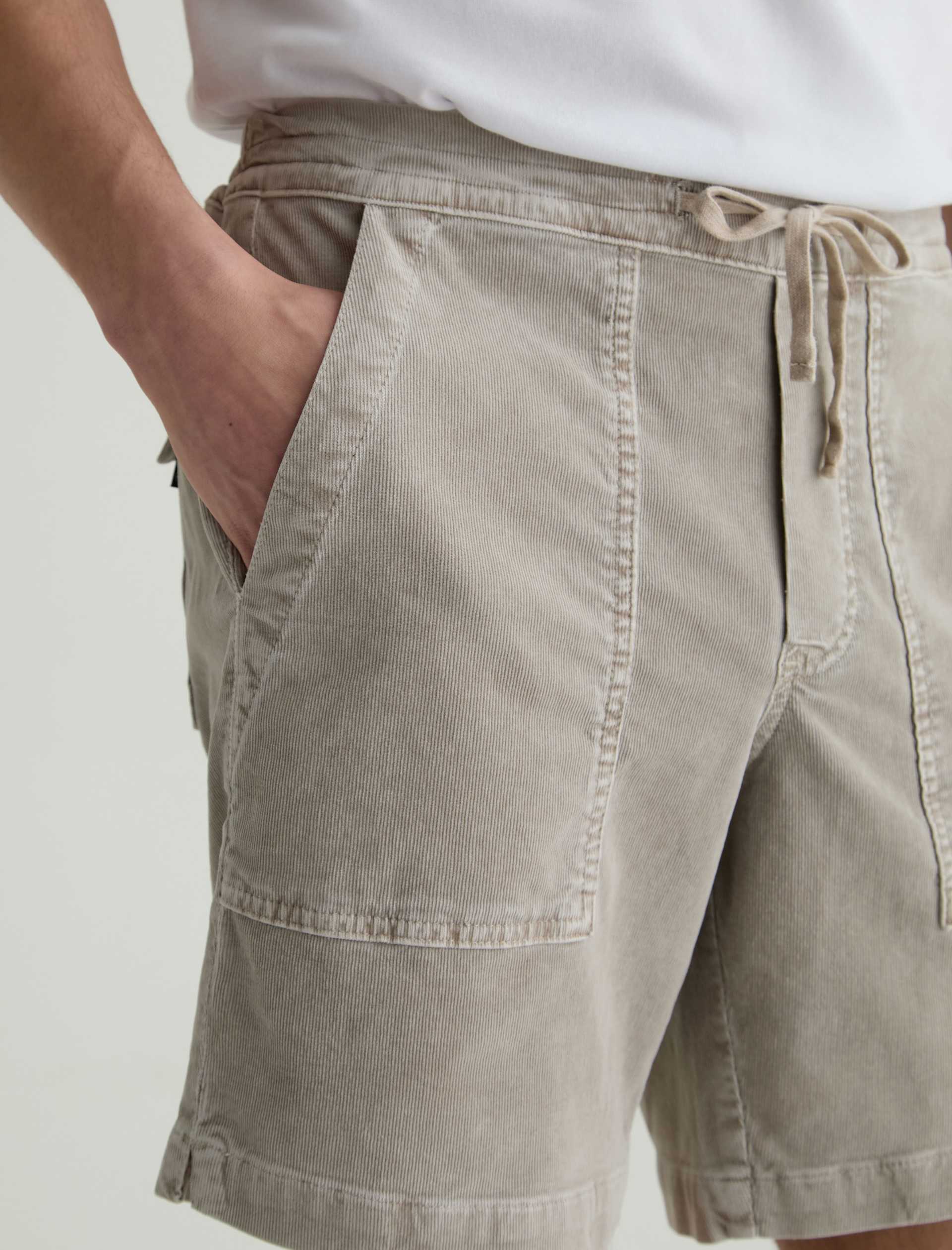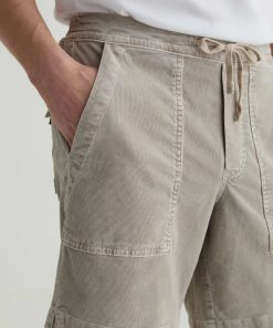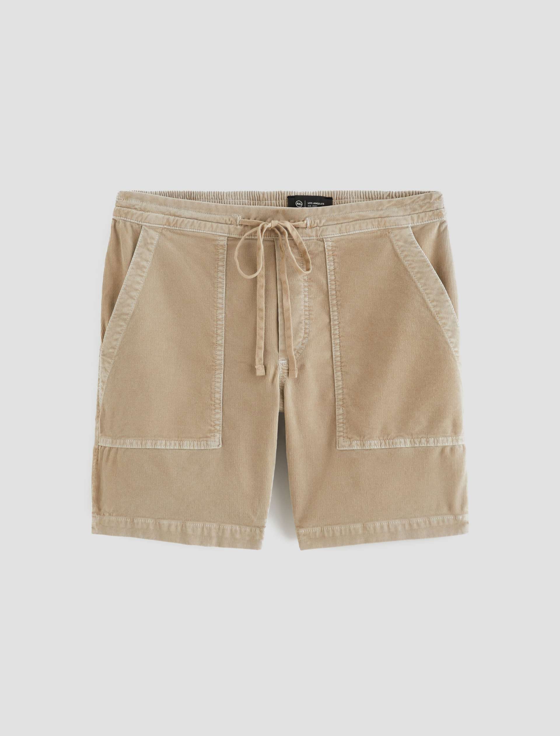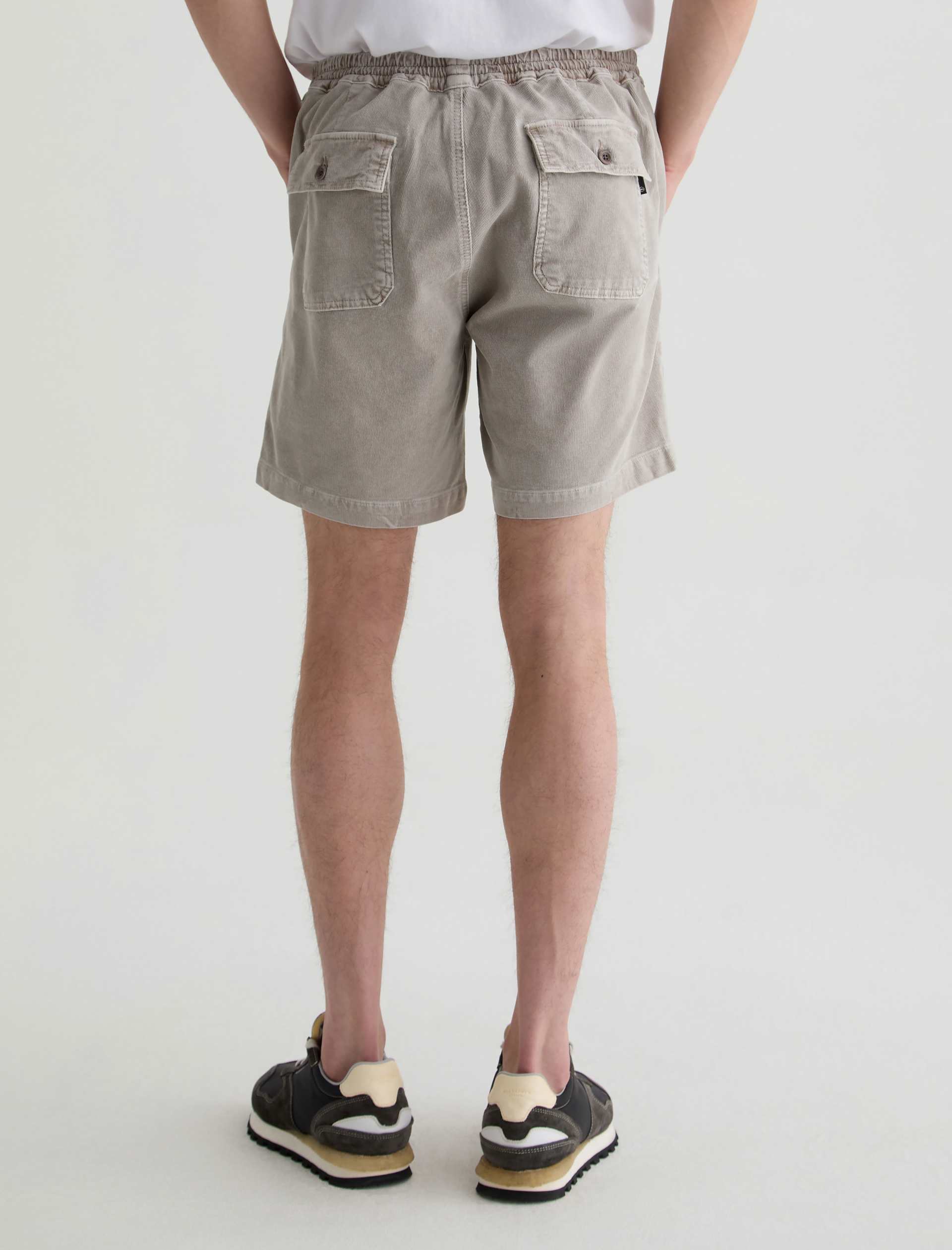 The Wells Drawstring Short features a lounge-ready relaxed fit in sulfur-dyed corduroy. Designed with fatigue pockets, these pull-on shorts for men are extra comfortable thanks to the partially elasticized waistband. Buttoned flap pockets at the back complete the look.