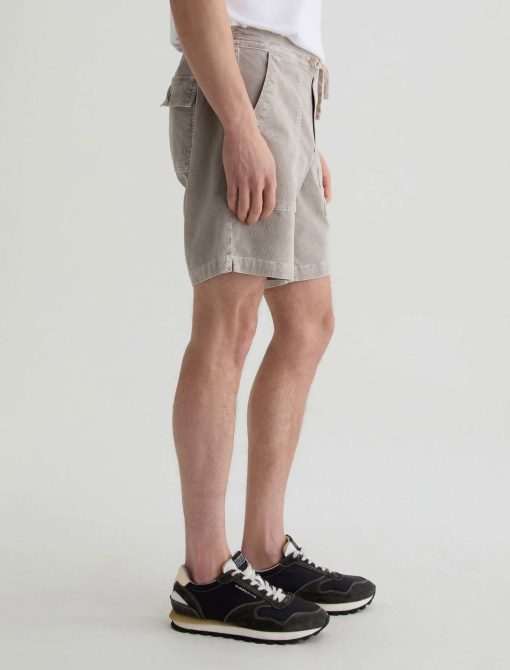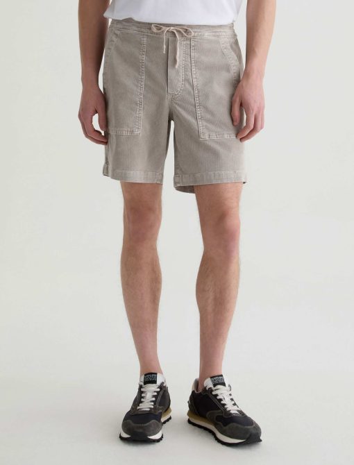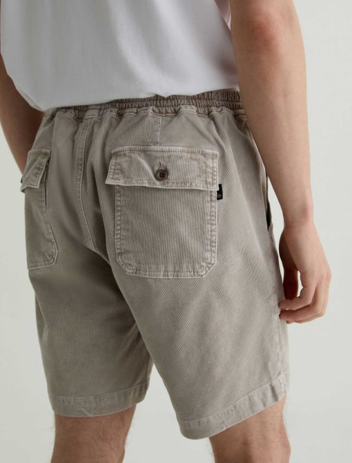 The Wells Drawstring Short features a lounge-ready relaxed fit in sulfur-dyed corduroy. Designed with fatigue pockets, these pull-on shorts for men are extra comfortable thanks to the partially elasticized waistband. Buttoned flap pockets at the back complete the look.