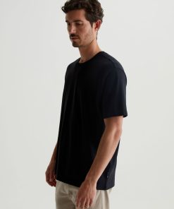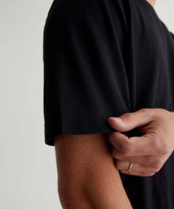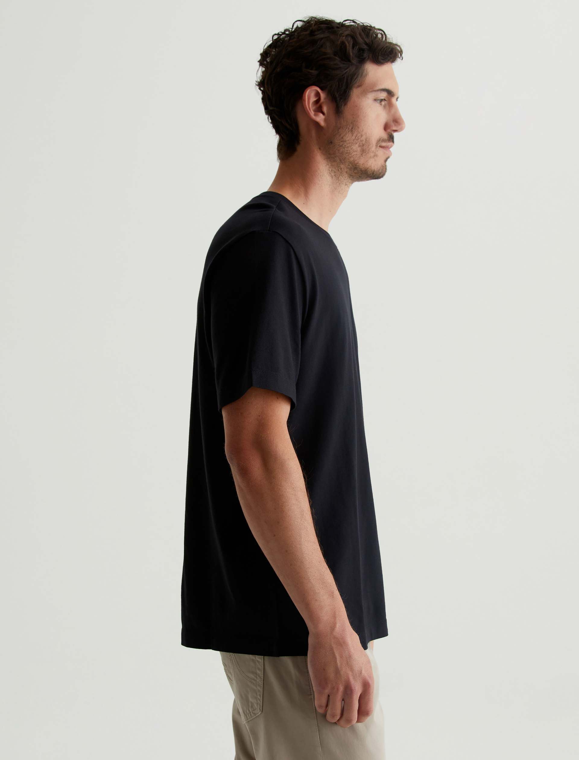 The Wesley Crew in black is a relaxed short-sleeve tee for men. The tee offers drop shoulder detailing and wider hem for a more fashion forward fit. Our Jersey Knit offers a luxurious comfort that is unrivaled—knitted with both S-twist and Z-twist yarn to sustain longevity and stability, preventing unnecessary twisting