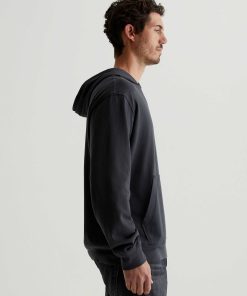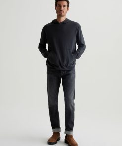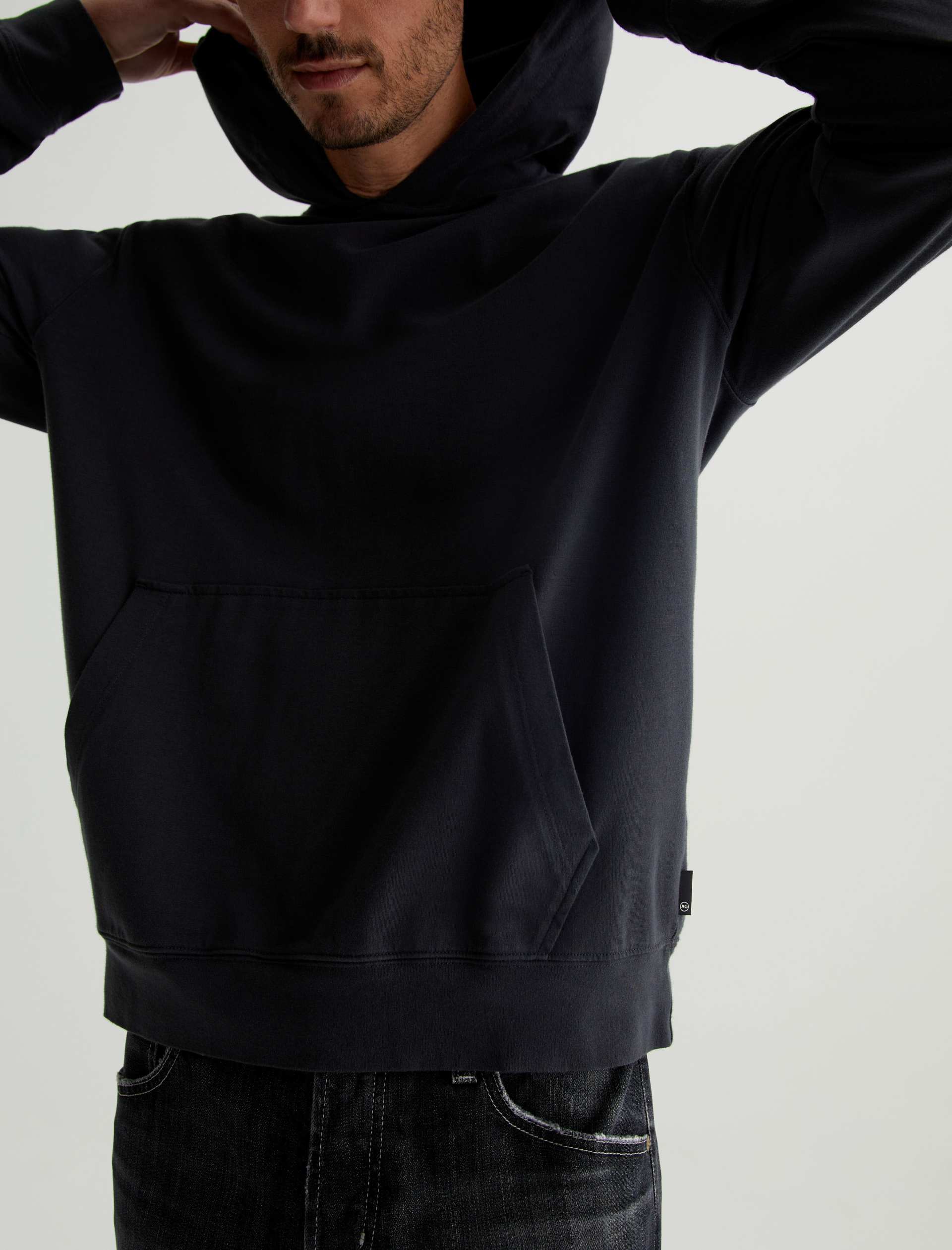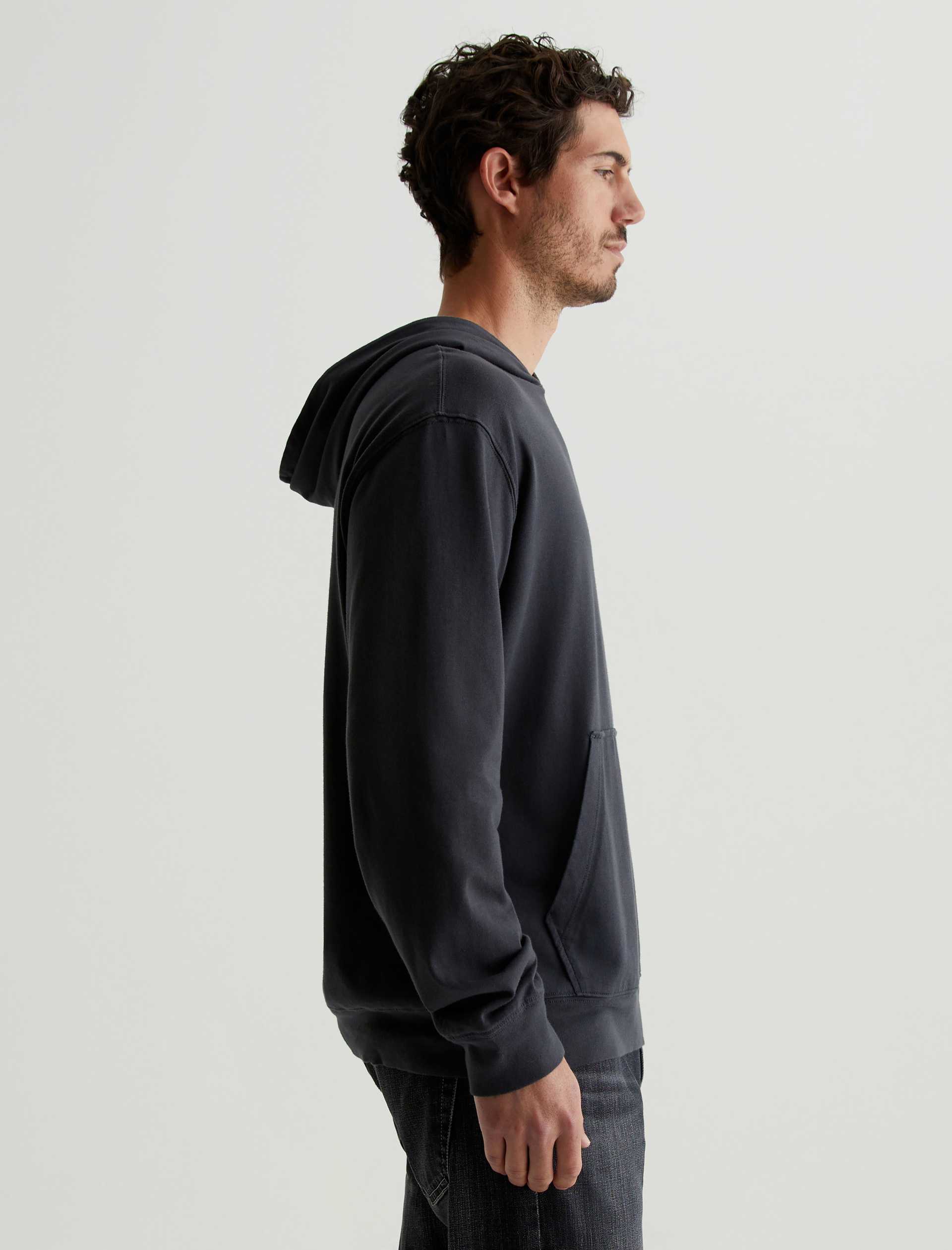 The Wesley Hoodie in dark grey is a lightweight jersey sweatshirt complete with a front kangaroo pocket and a hoodie that is double layered for shape and structure. Our Jersey Knit offers a luxurious comfort that is unrivaled—knitted with both S-twist and Z-twist yarn to sustain longevity and stability, preventing unne