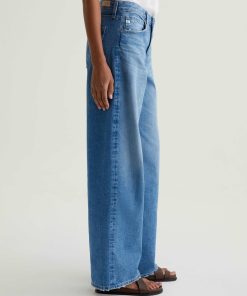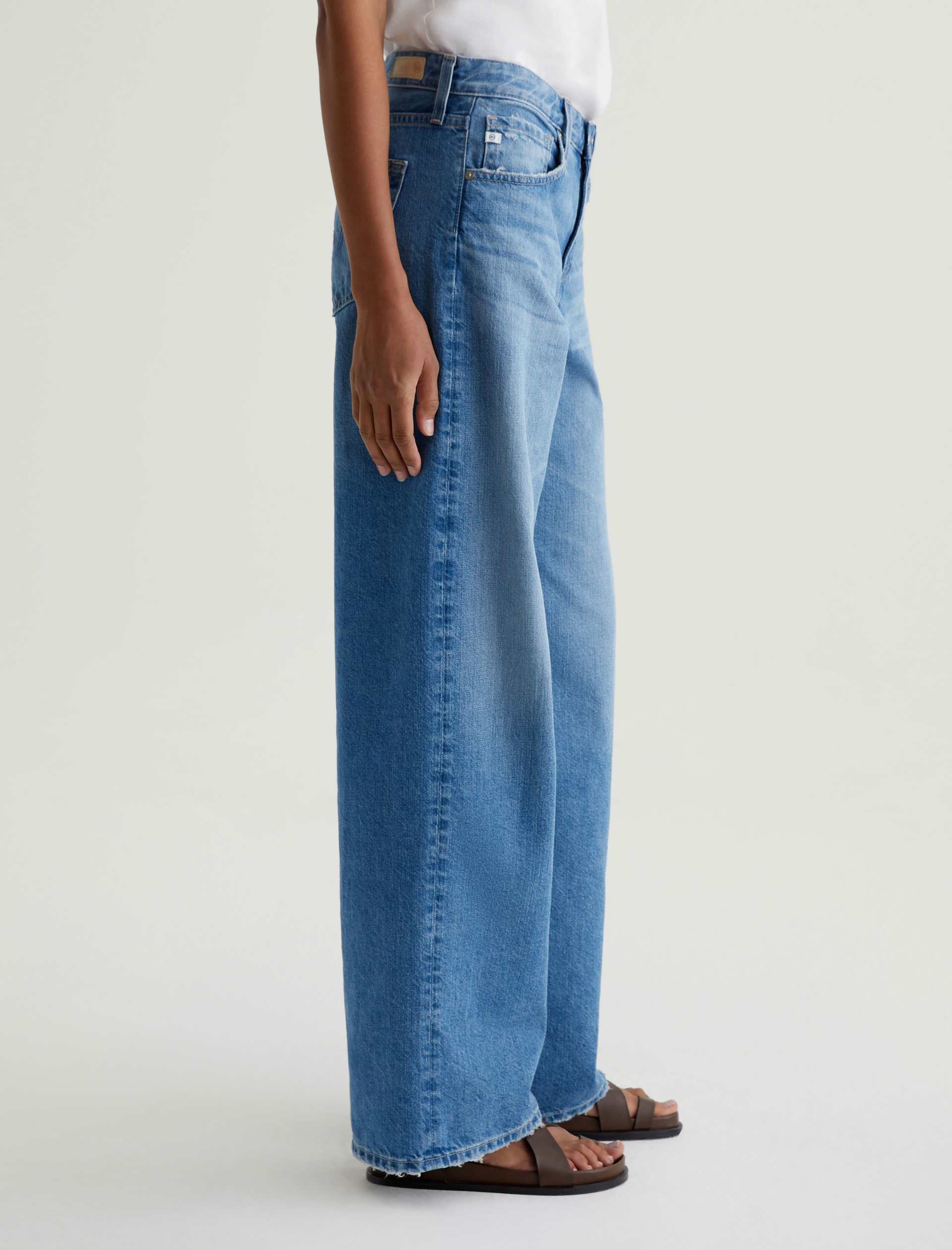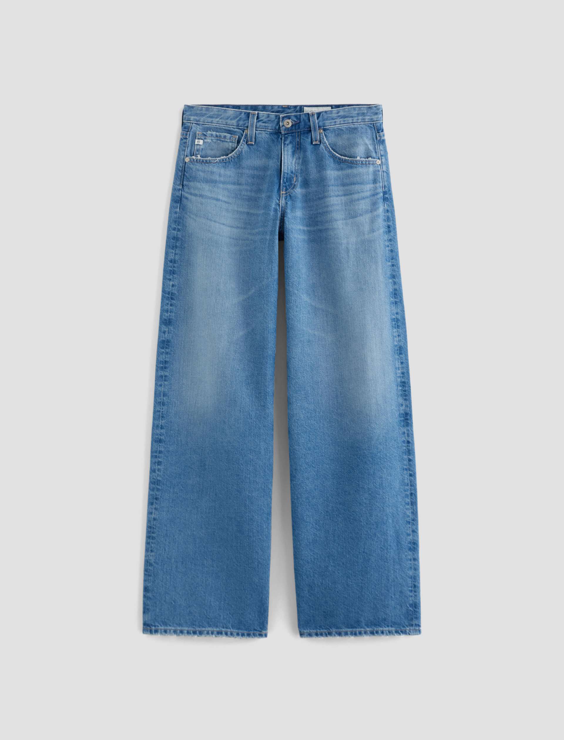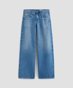 The Adria wide-leg jeans have a low-rise waist that hangs on the hips for a relaxed, slouchy look. This five-pocket style fits loose through the legs, designed to puddle at the hems. Updated in 12 oz. Drapey Rigid Denim, it’s blended with lyocell for a soft feel and features a brilliant blue wash. Fading, pocket edges,
