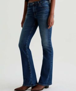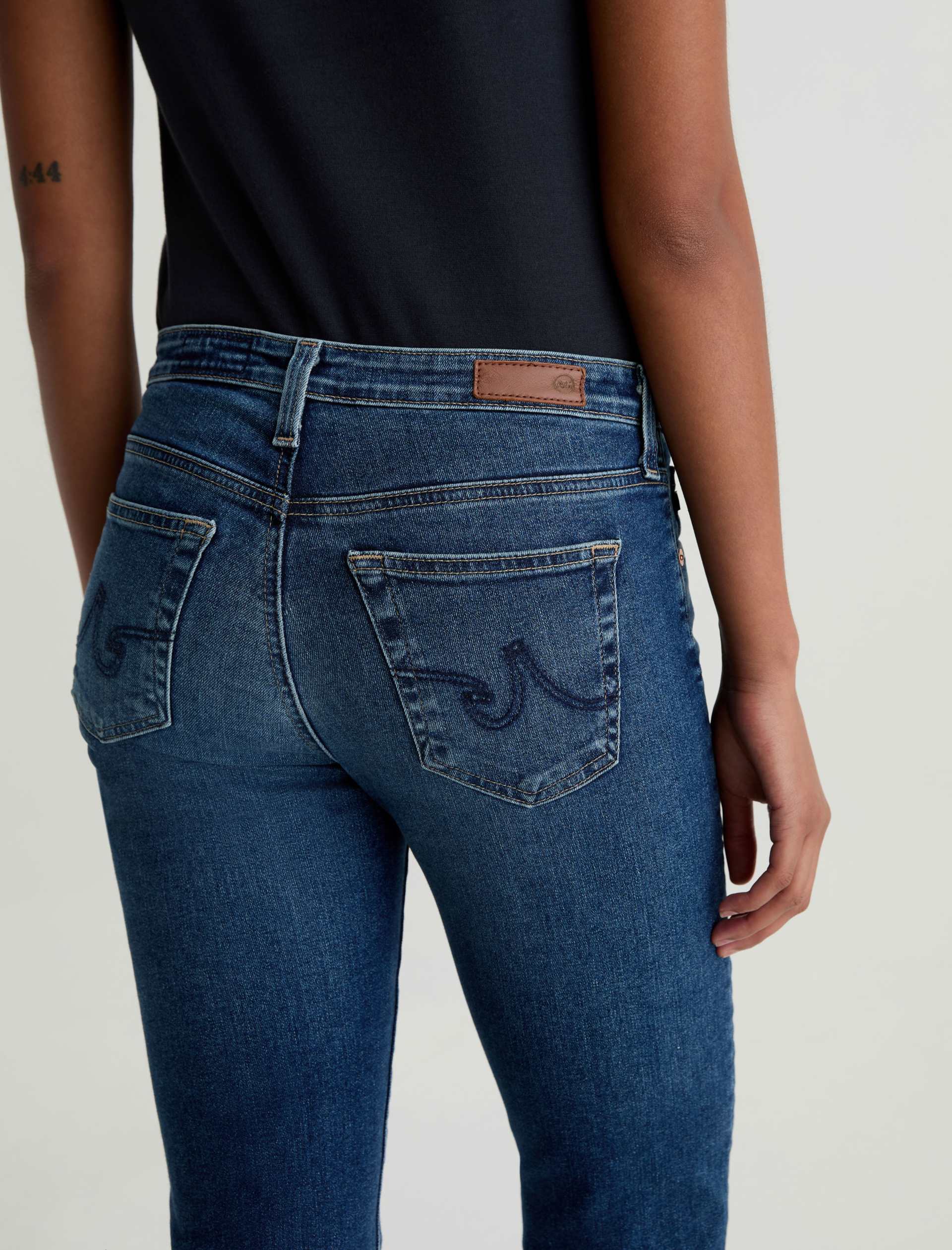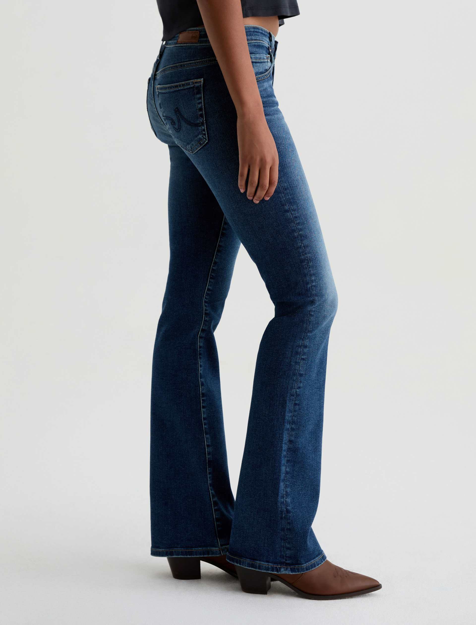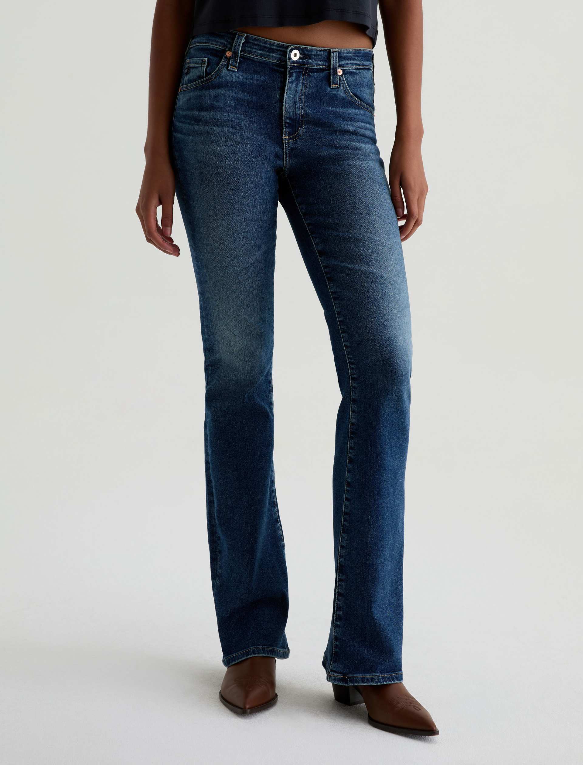 Our Angel Extended low-rise bootcut jean features a longer inseam. Crafted from 10 oz. Empower Denim with comfort stretch, these women’s bootcut jeans come in a medium dark blue wash featuring subtle faded details.