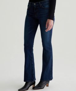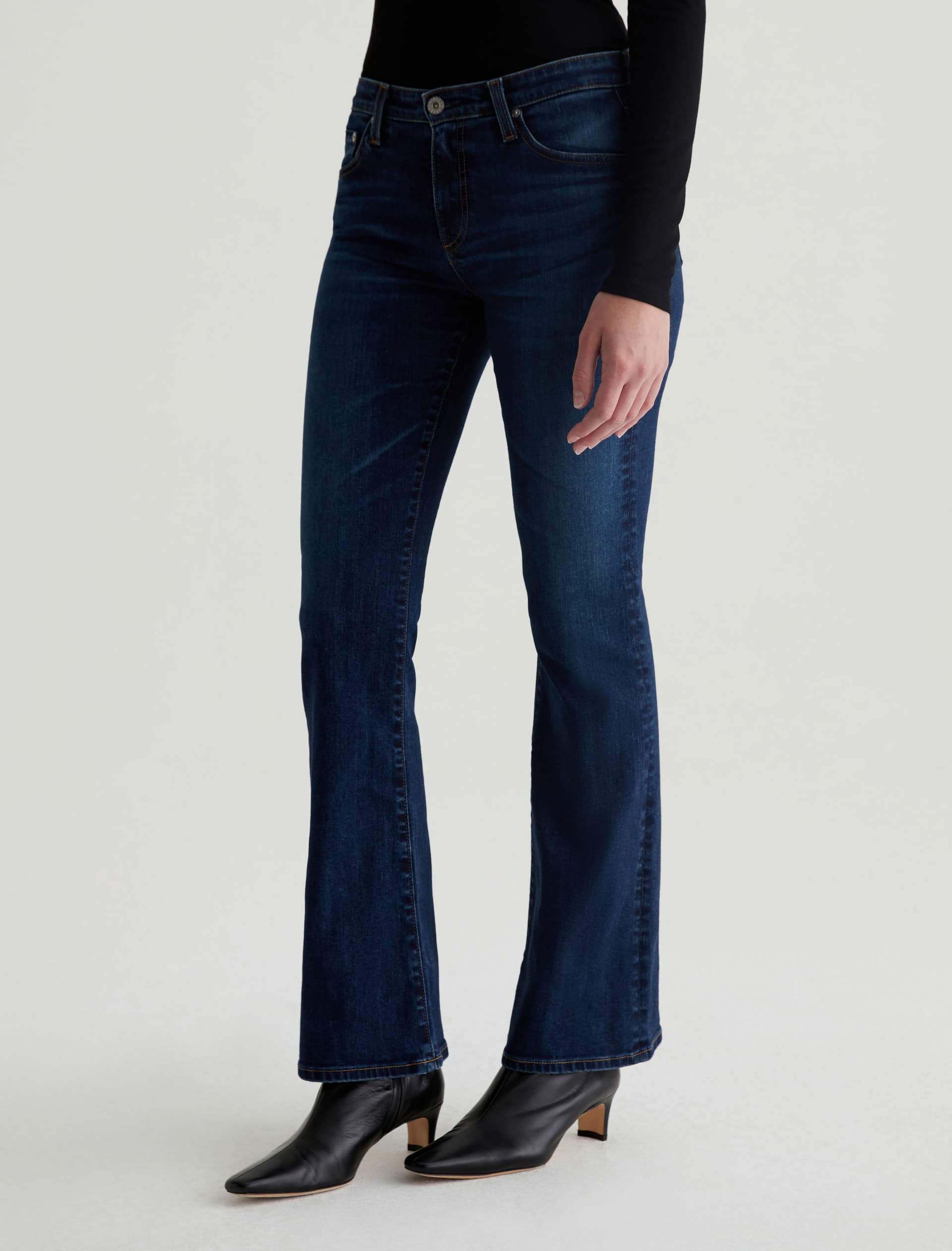 The Angel Vapor Wash low-rise bootcut jeans sit below the natural waist and fit close before opening to a subtle flare. Designed in 10 oz. Rouge Advanced Stretch Denim, this pair features a dark indigo wash that’s been achieved using our eco-friendly AG Vapor Wash™ technology. Our AG Vapor Wash™ process significantly r